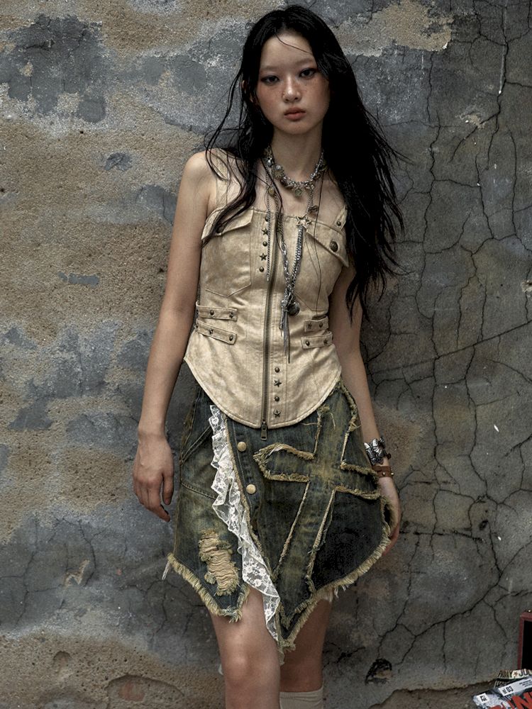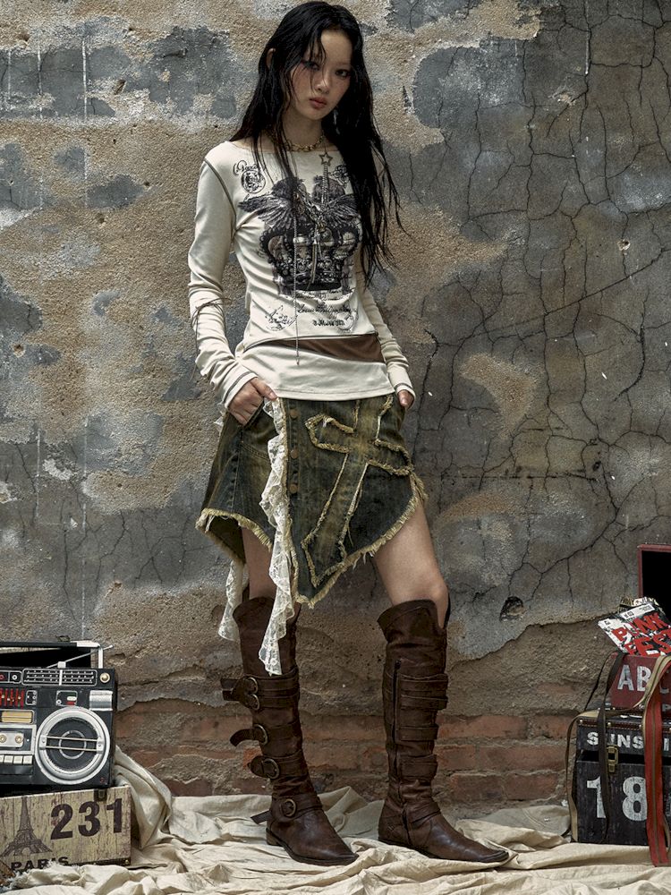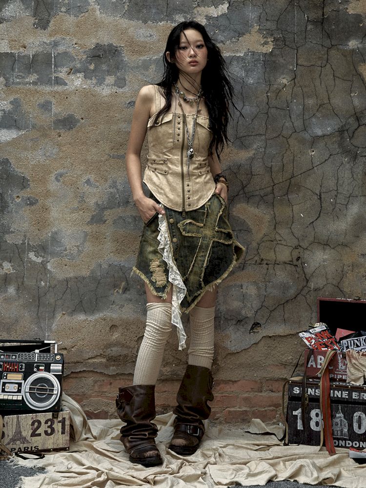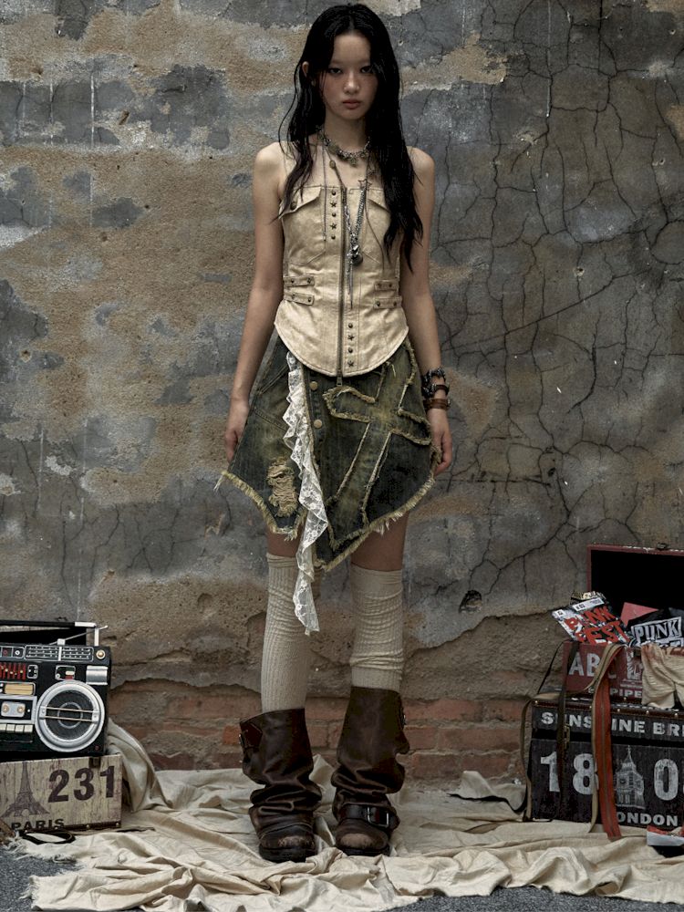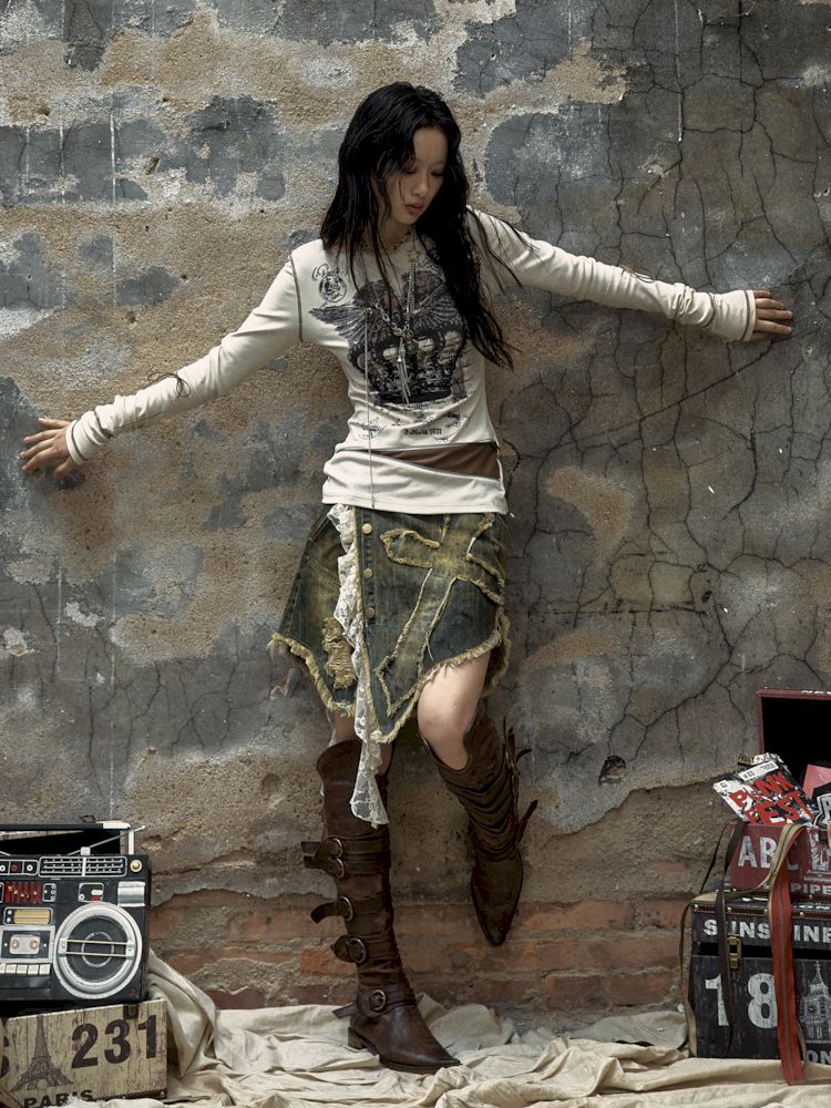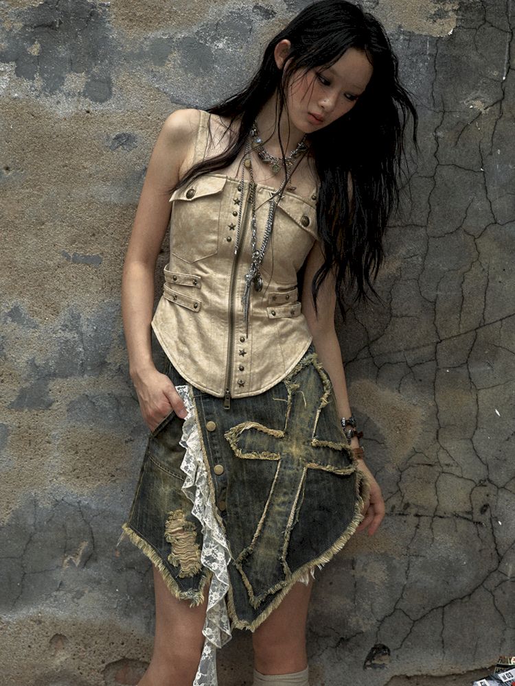 Washed Denim One Piece Low Waist Half Skirt【s0000009757】