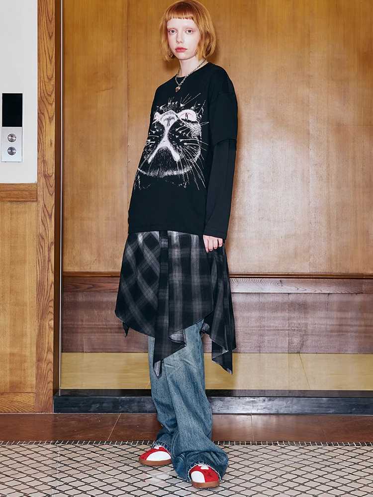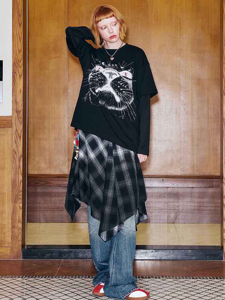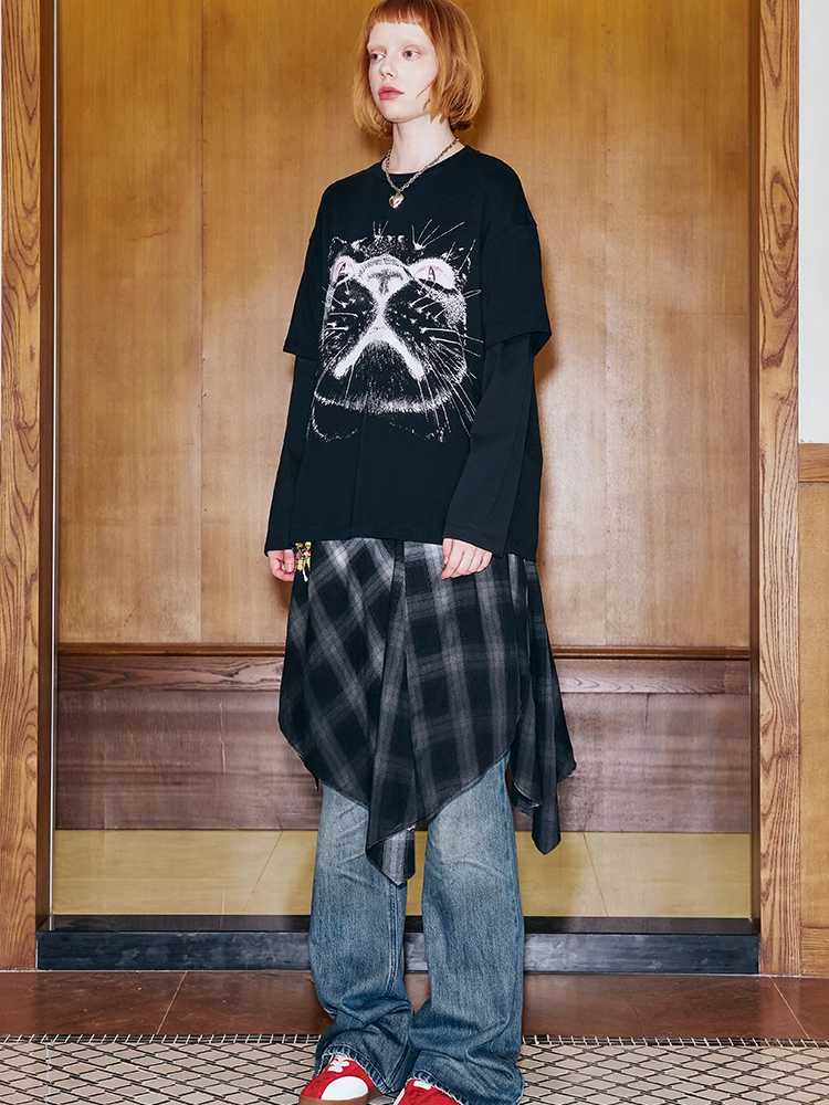 Fake two-piece long sleeve loose T-shirt【s0000009837】
