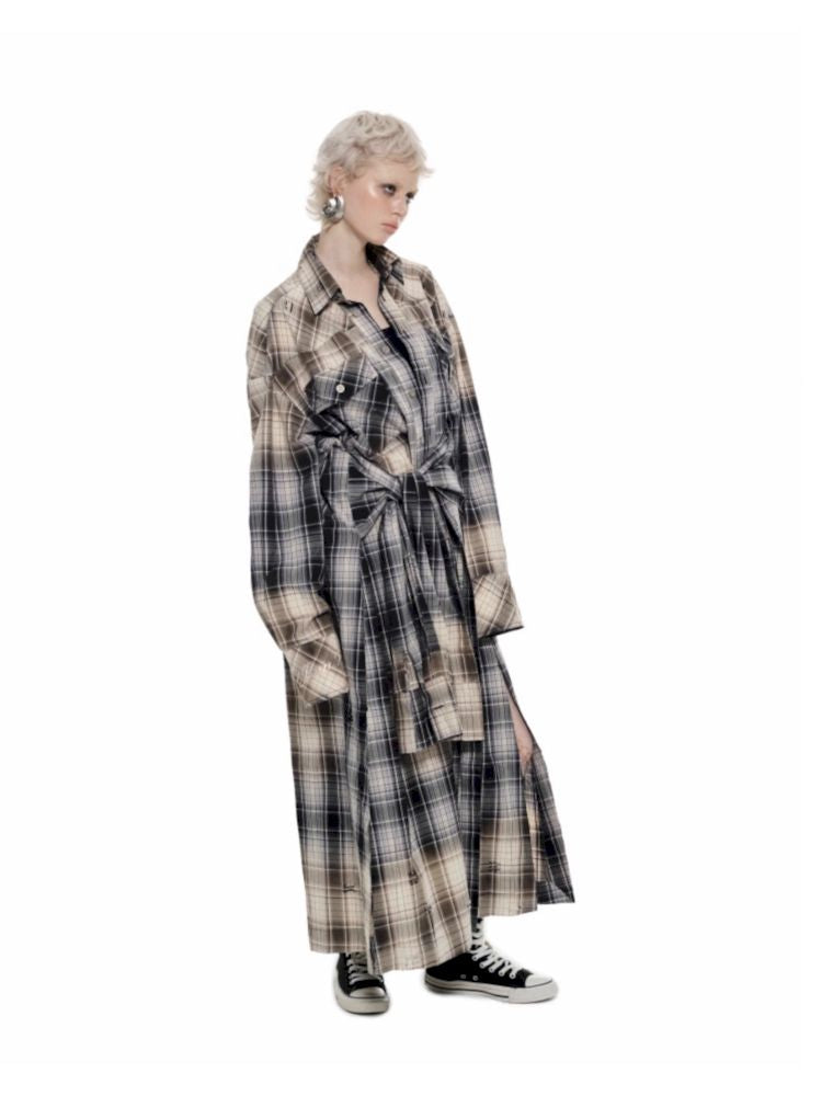 Long Plaid Shirt Style Dress【s0000009846】