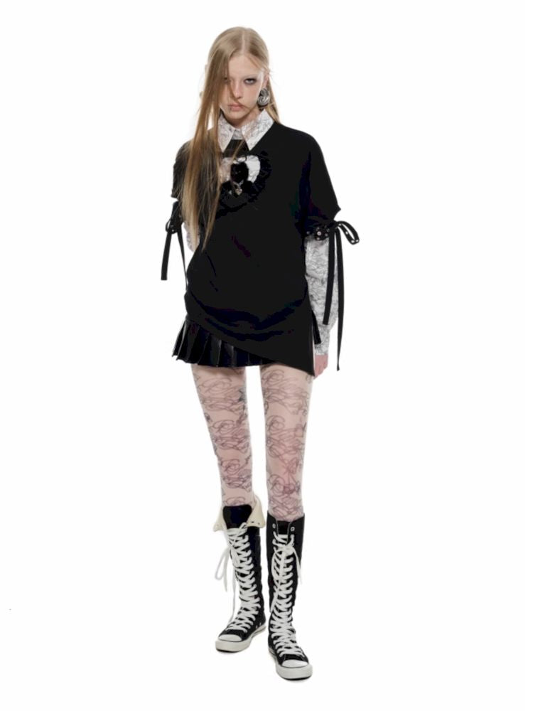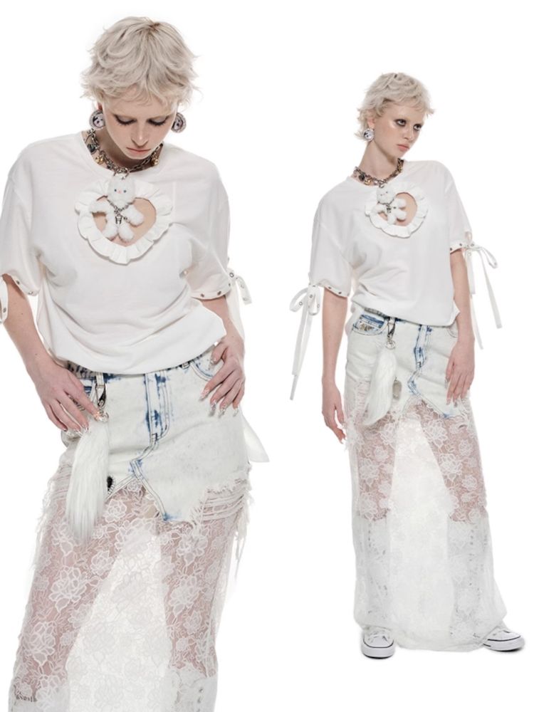 Chest hollow love short sleeve T-shirt【s0000009855】