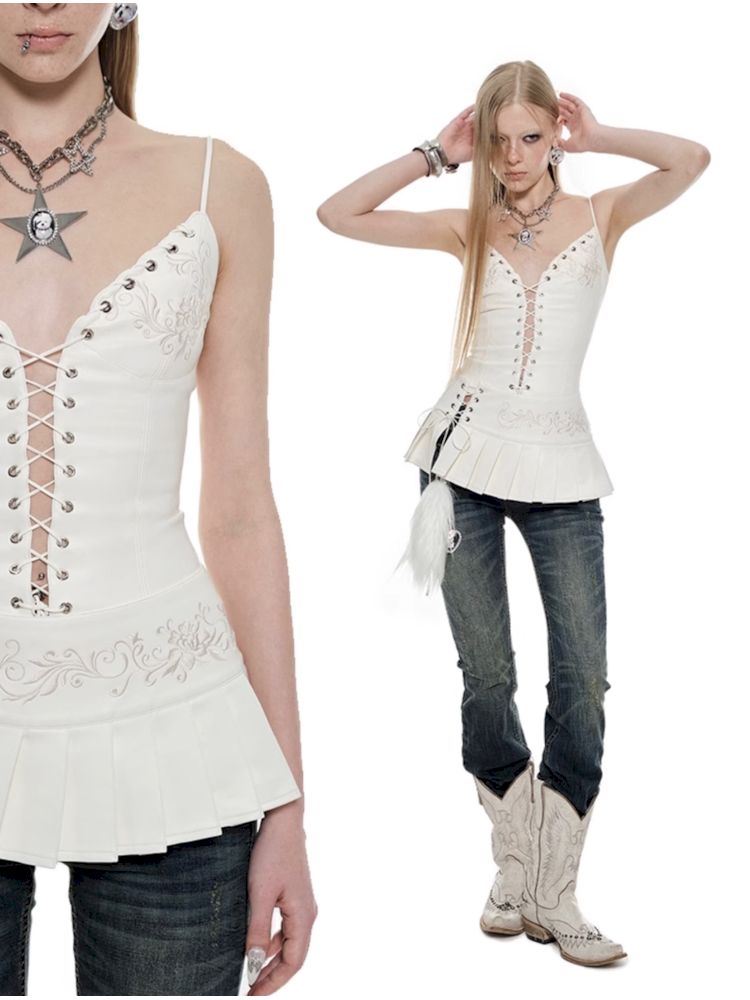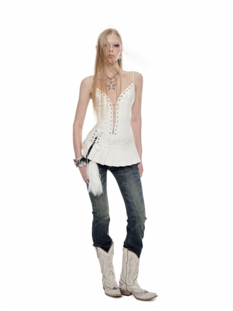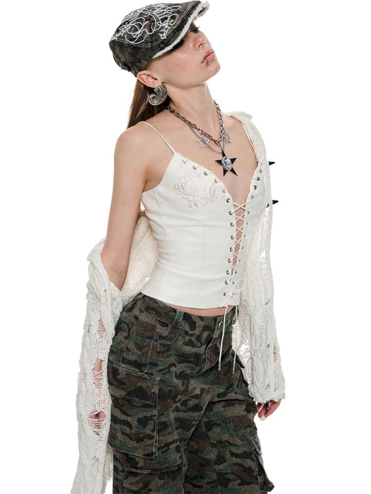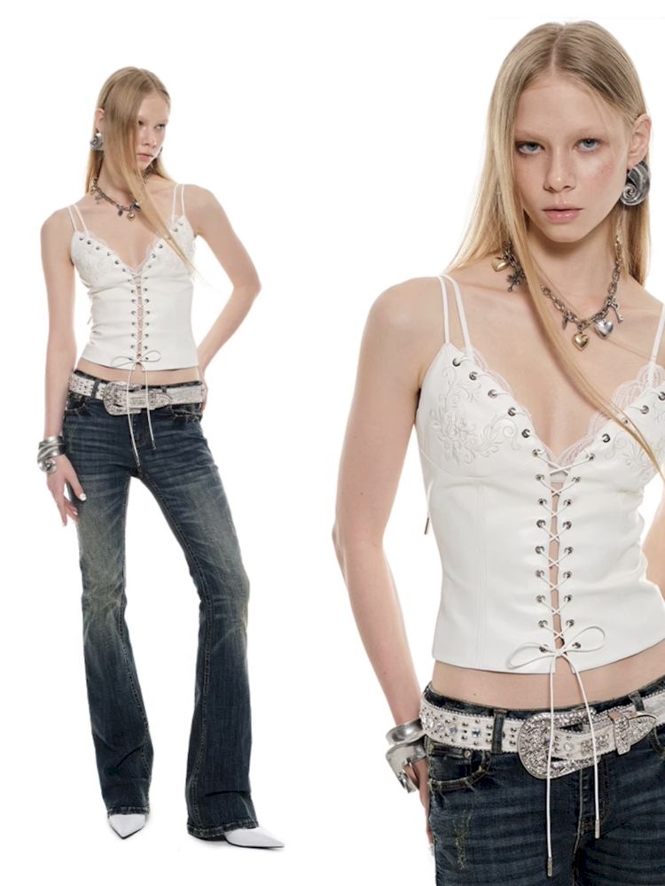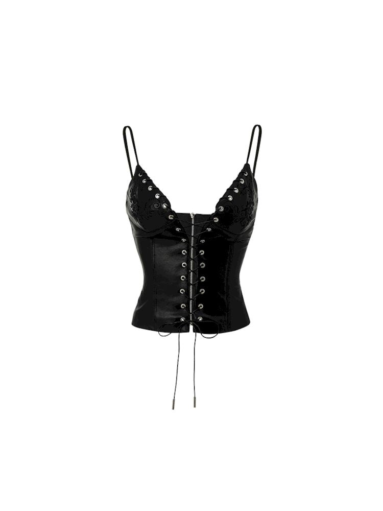 Lace up leather thin Shoulder Camisole Vest【s0000009863】