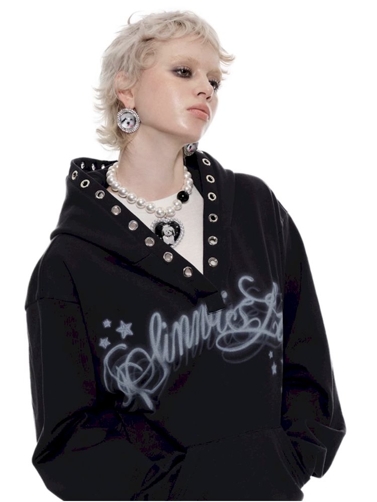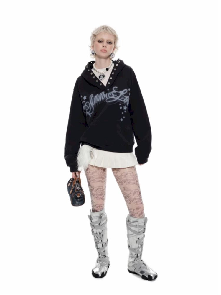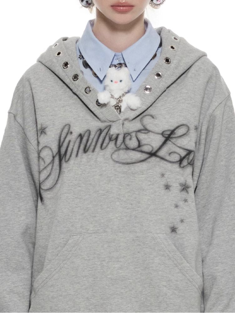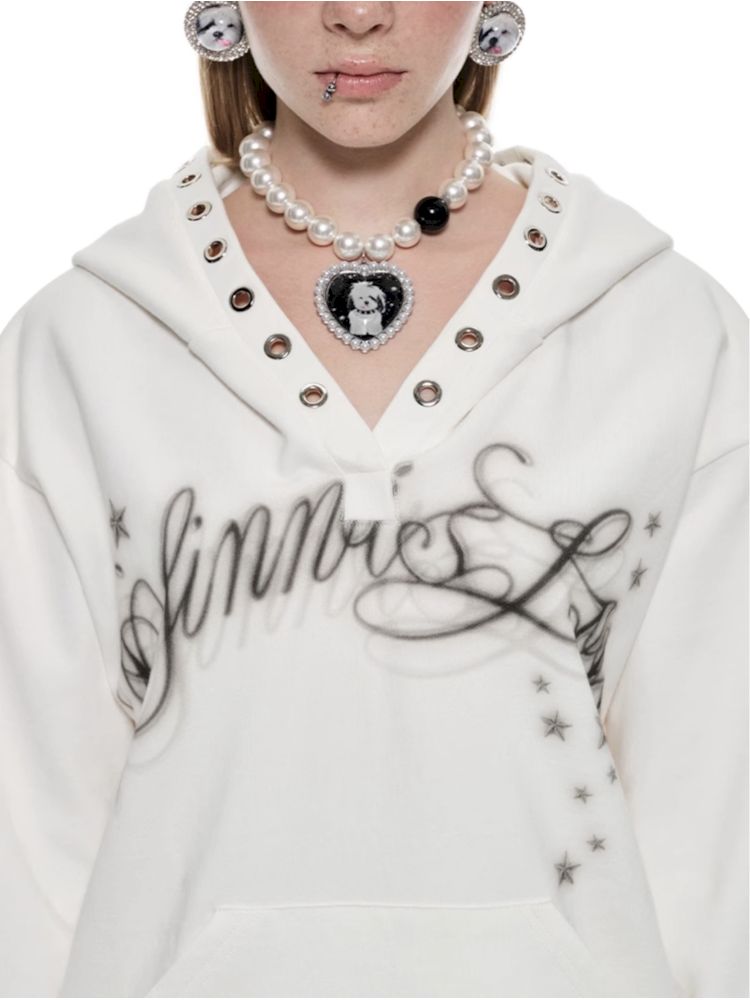 Loose Hooded Air Eye Print Sweatshirt【s0000009868】