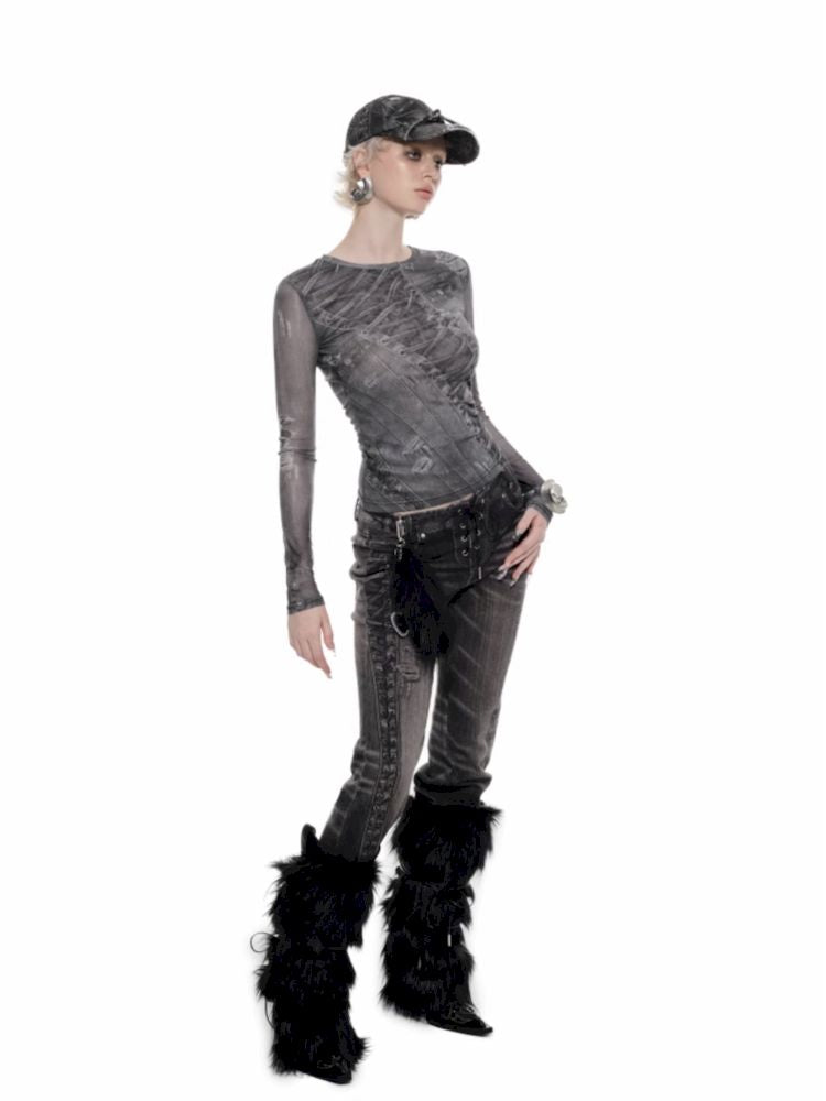 Cowboy printed long-sleeved T-shirt【s0000009871】