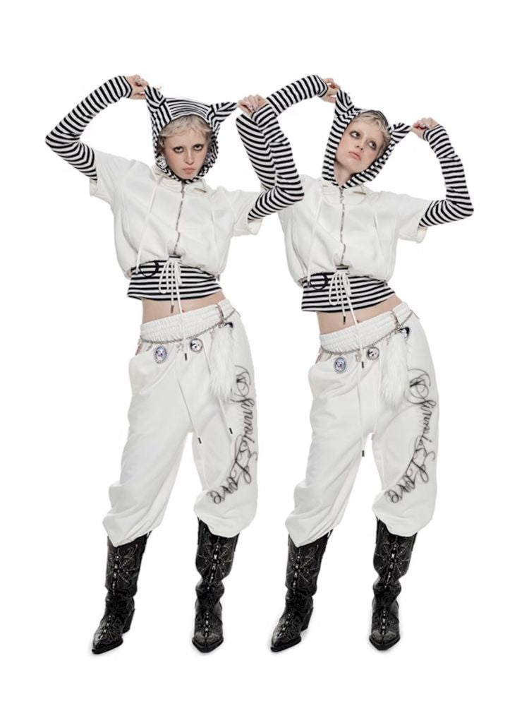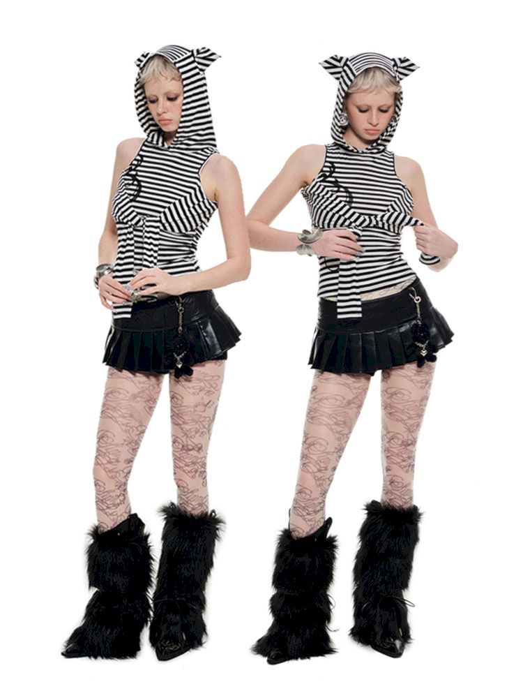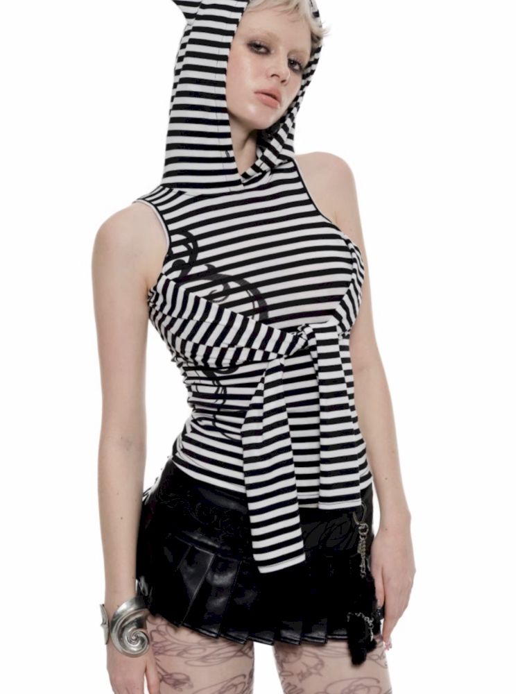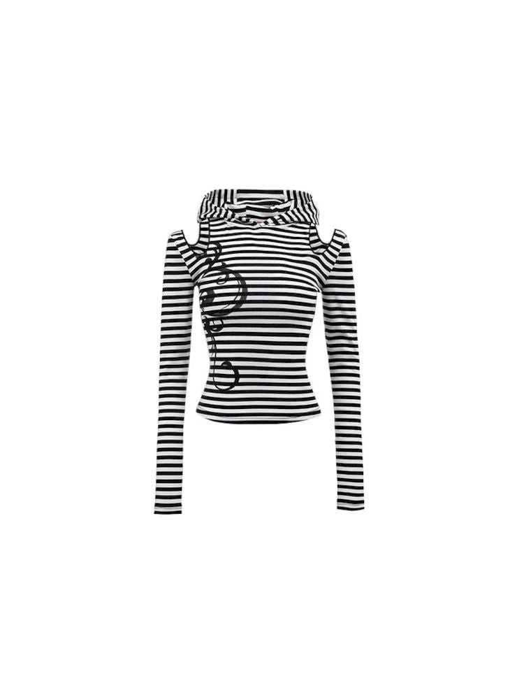 Striped Cat Ears Hooded Bottom Shirt【s0000009873】