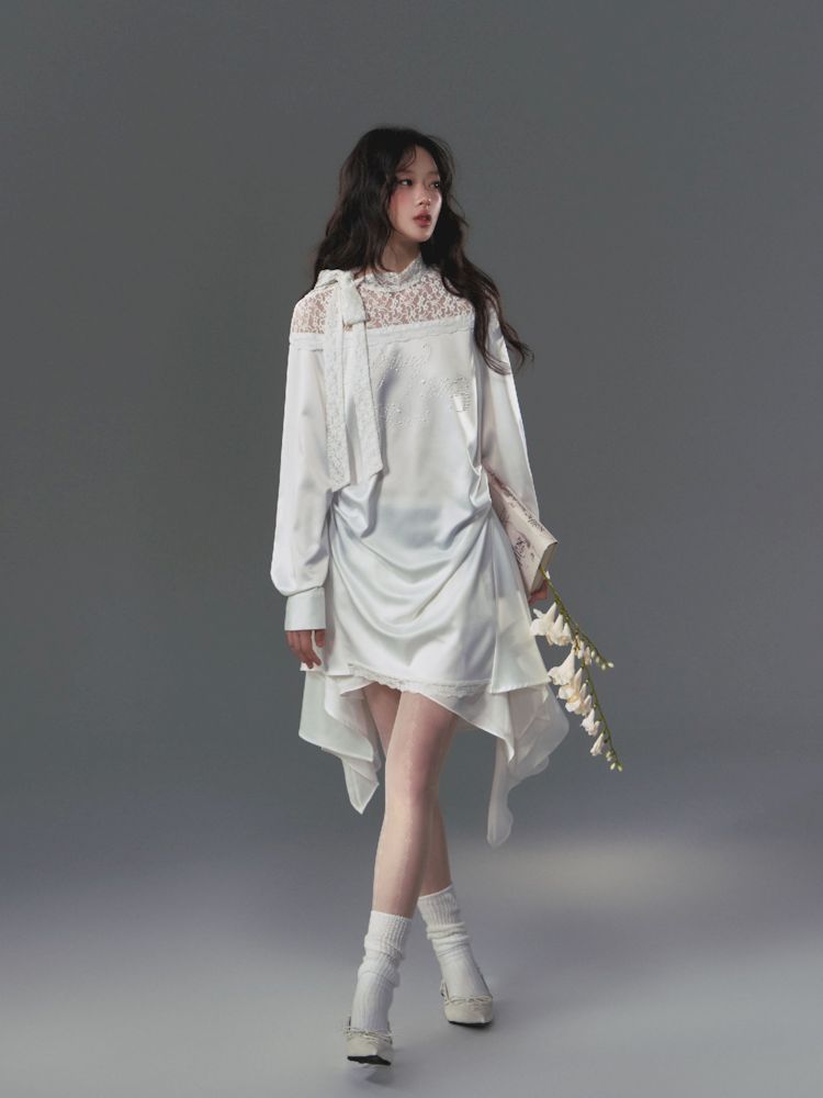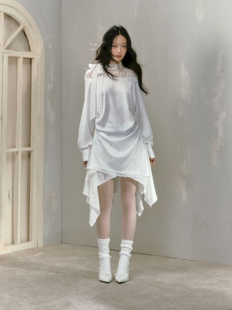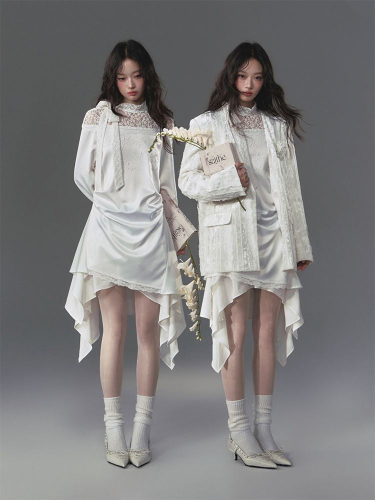 Flutter Neck Irregular Hem Dress【s0000009886】