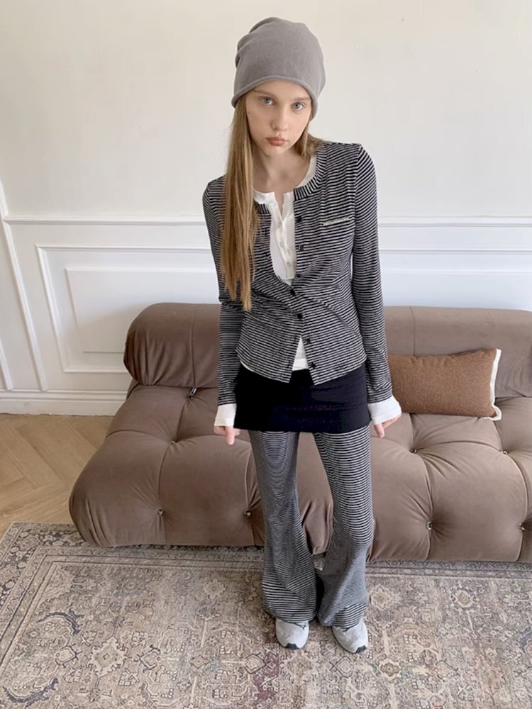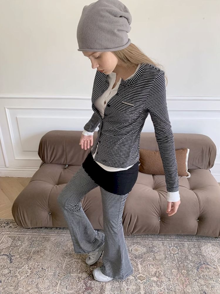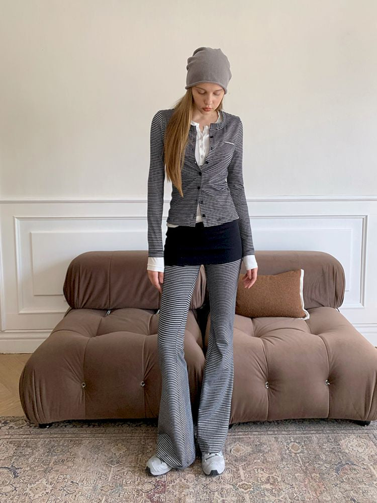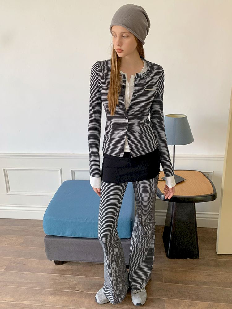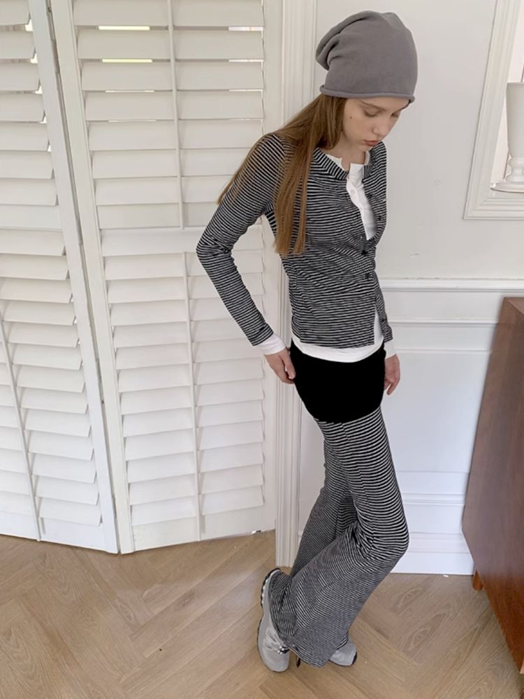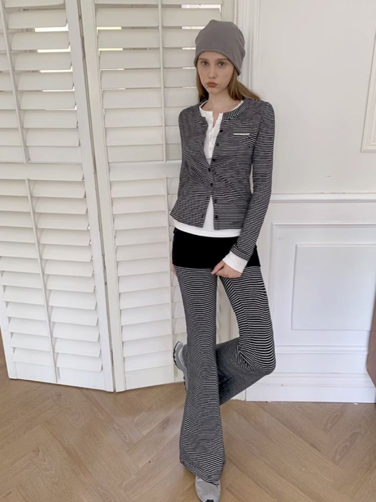 Striped Self-Flare Yoga Pants Set【s0000009894】