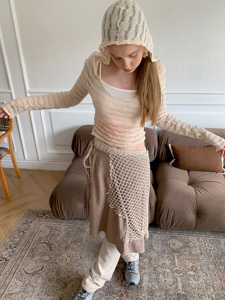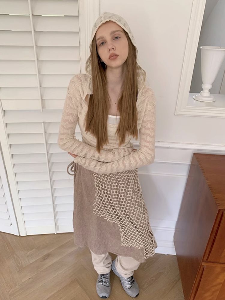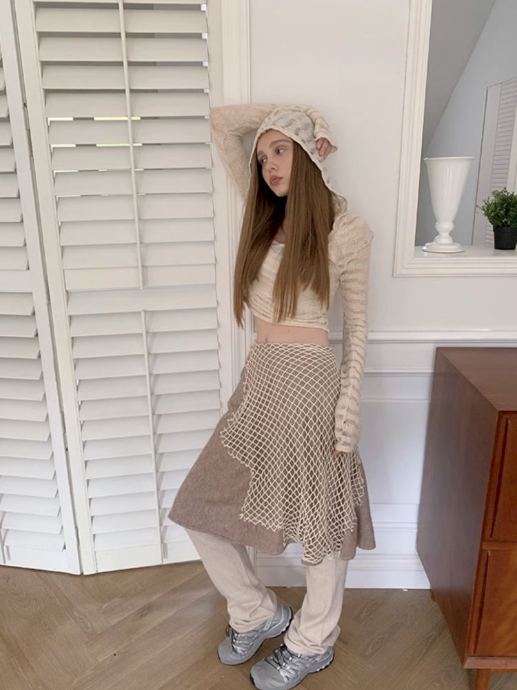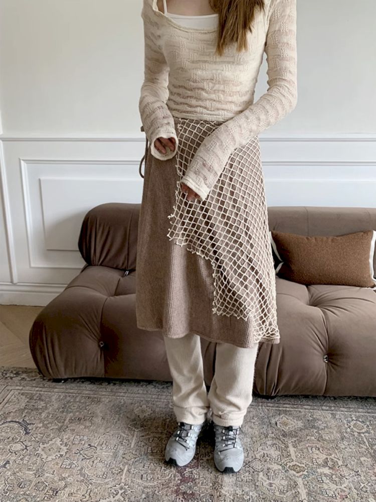 Wandering wind mesh splicing knitted skirt【s0000009898】