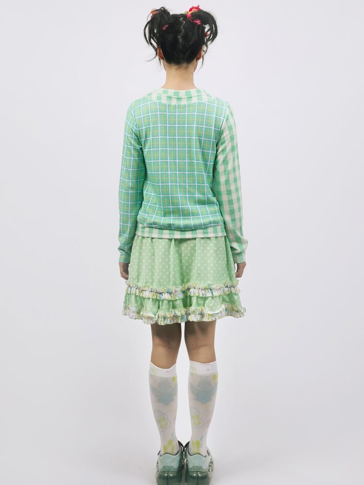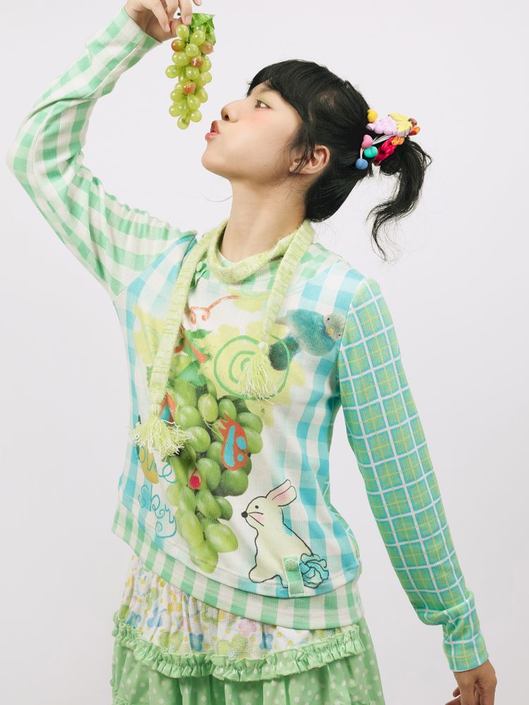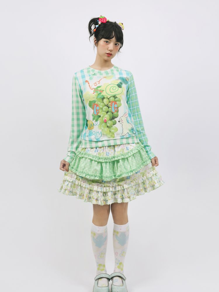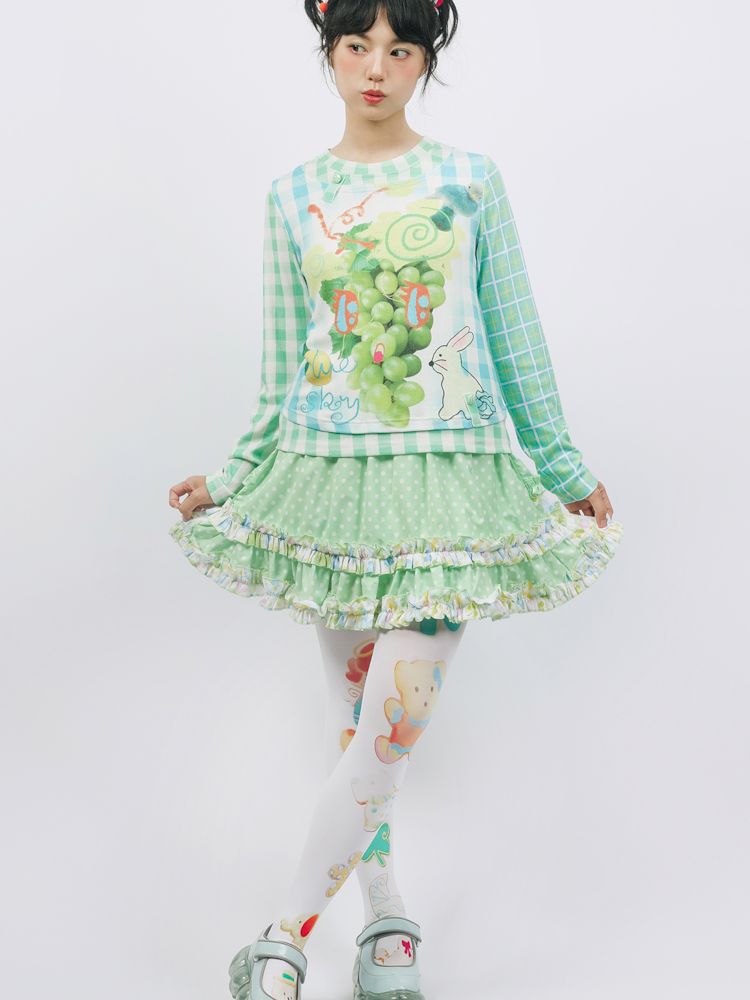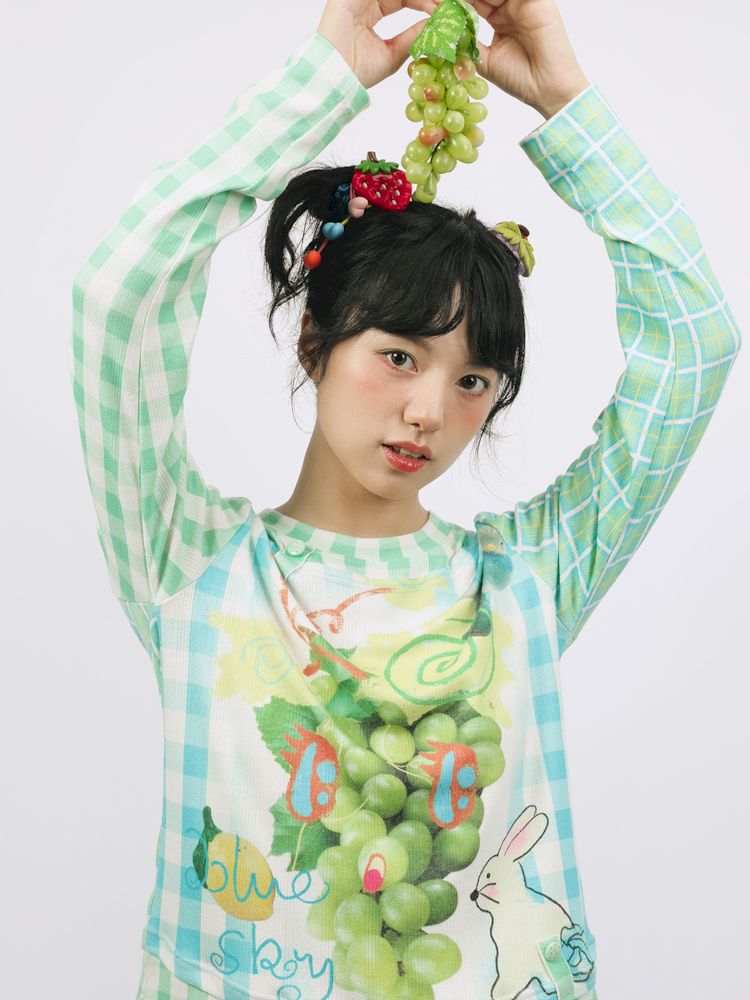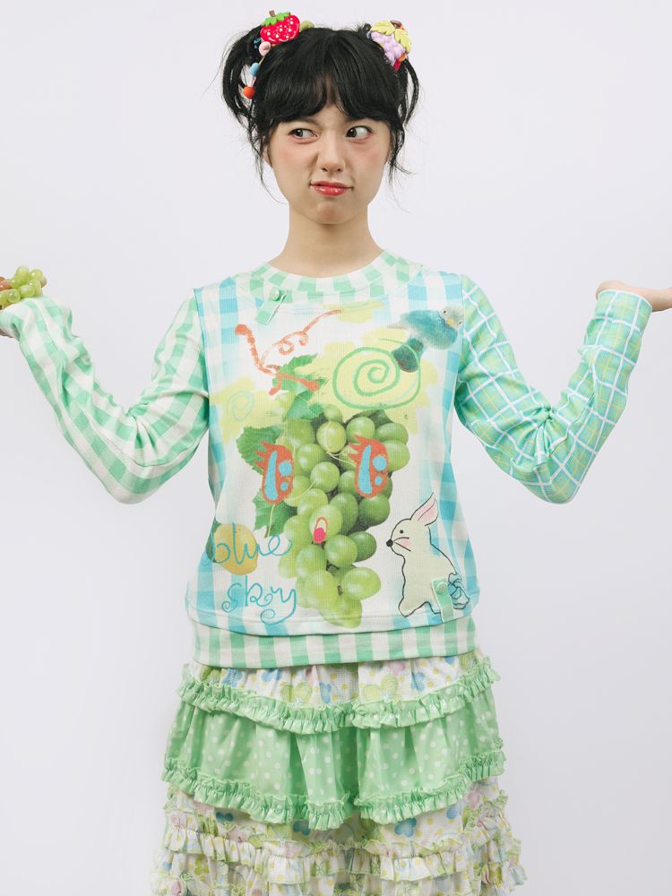 Plaid Grape Print Cute Long Sleeve T-Shirt【s0000009908】