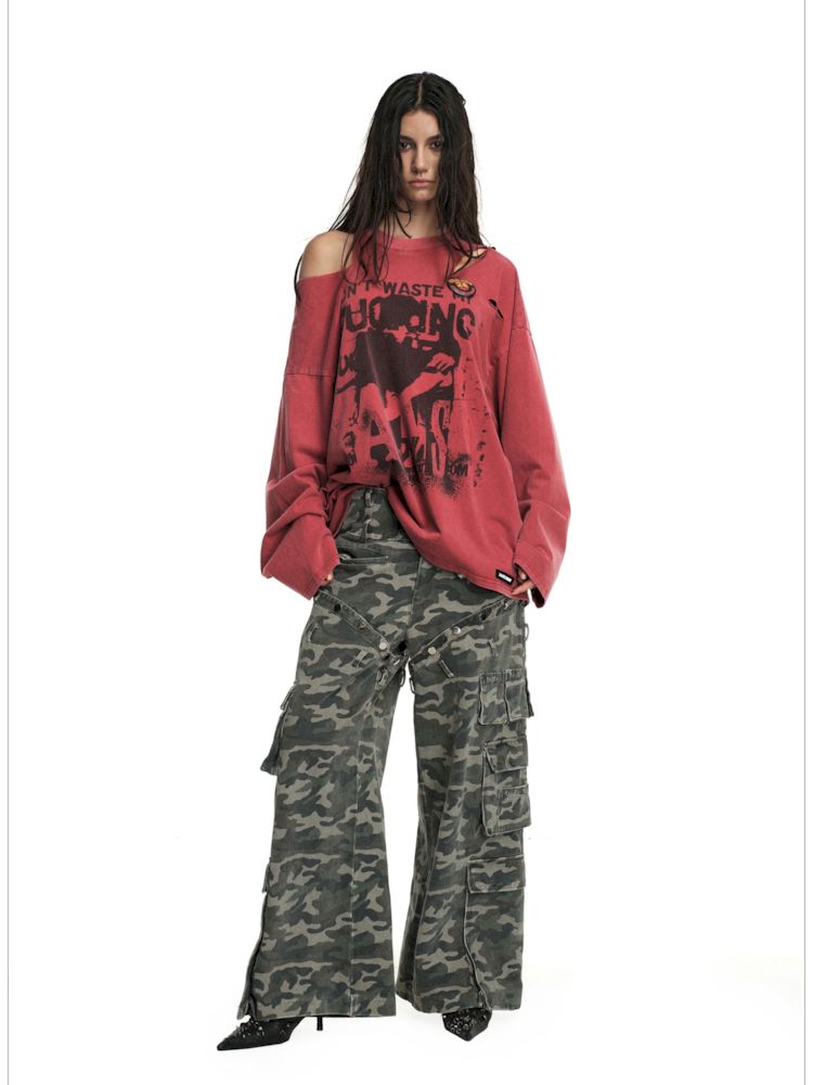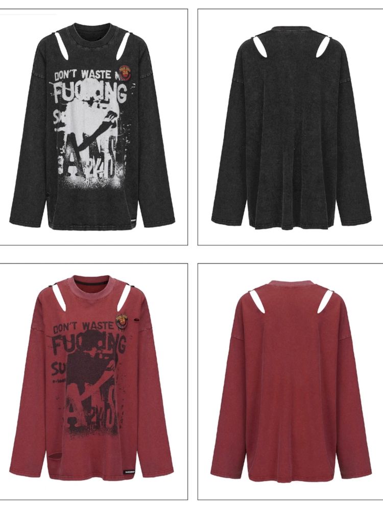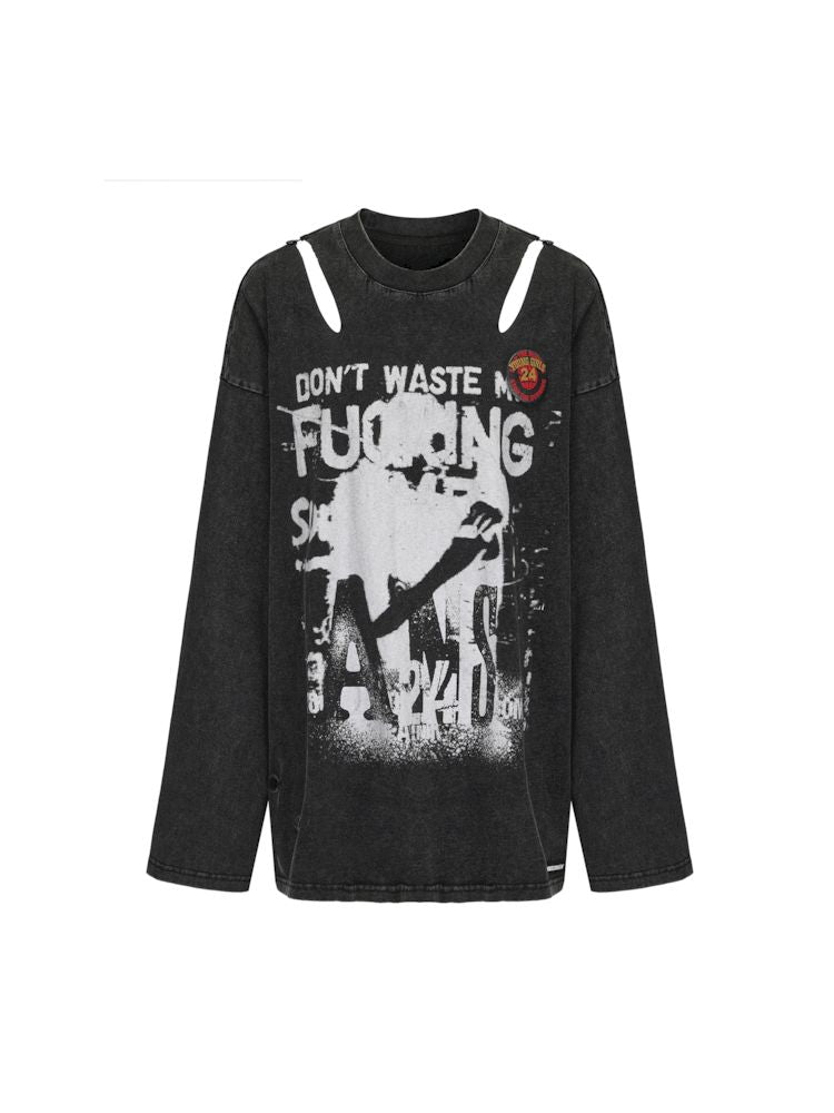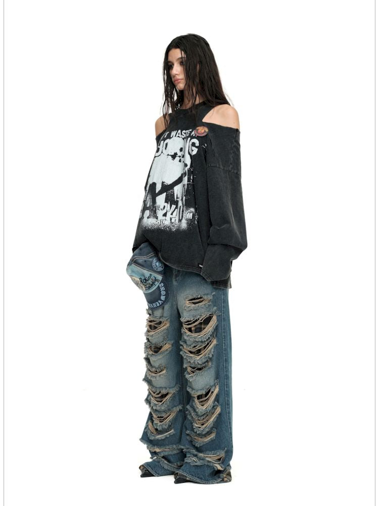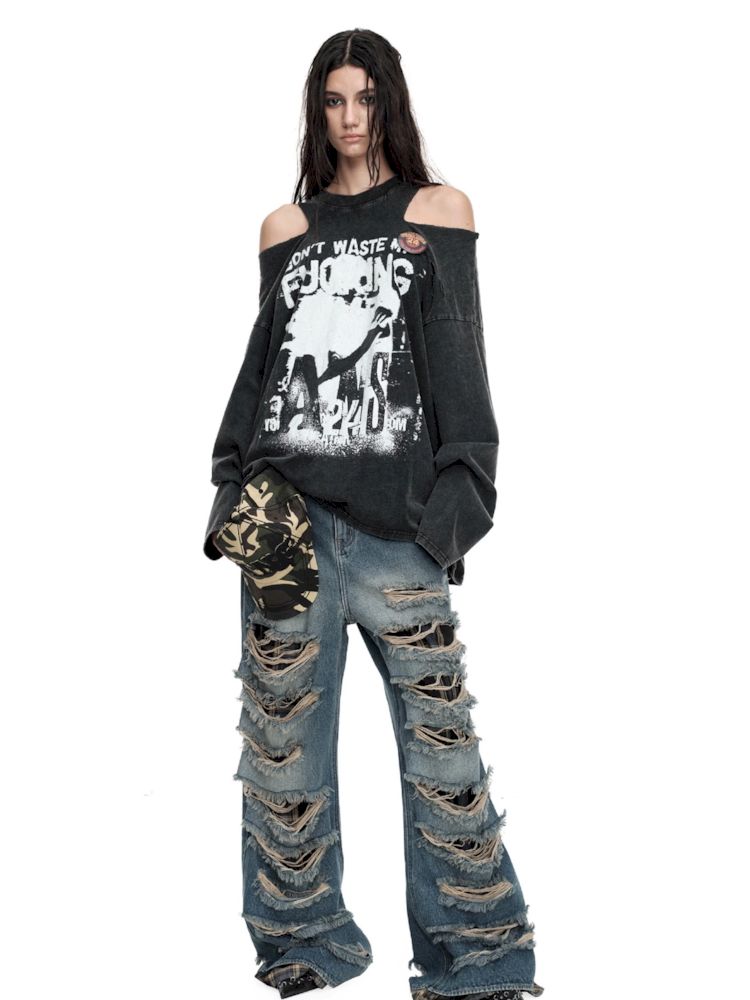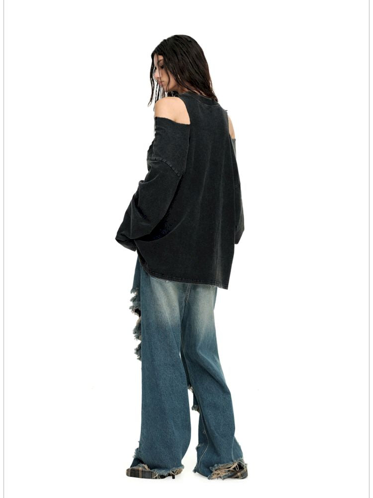 Torn and worn can be strapless long sleeve t-shirt【s0000009950】