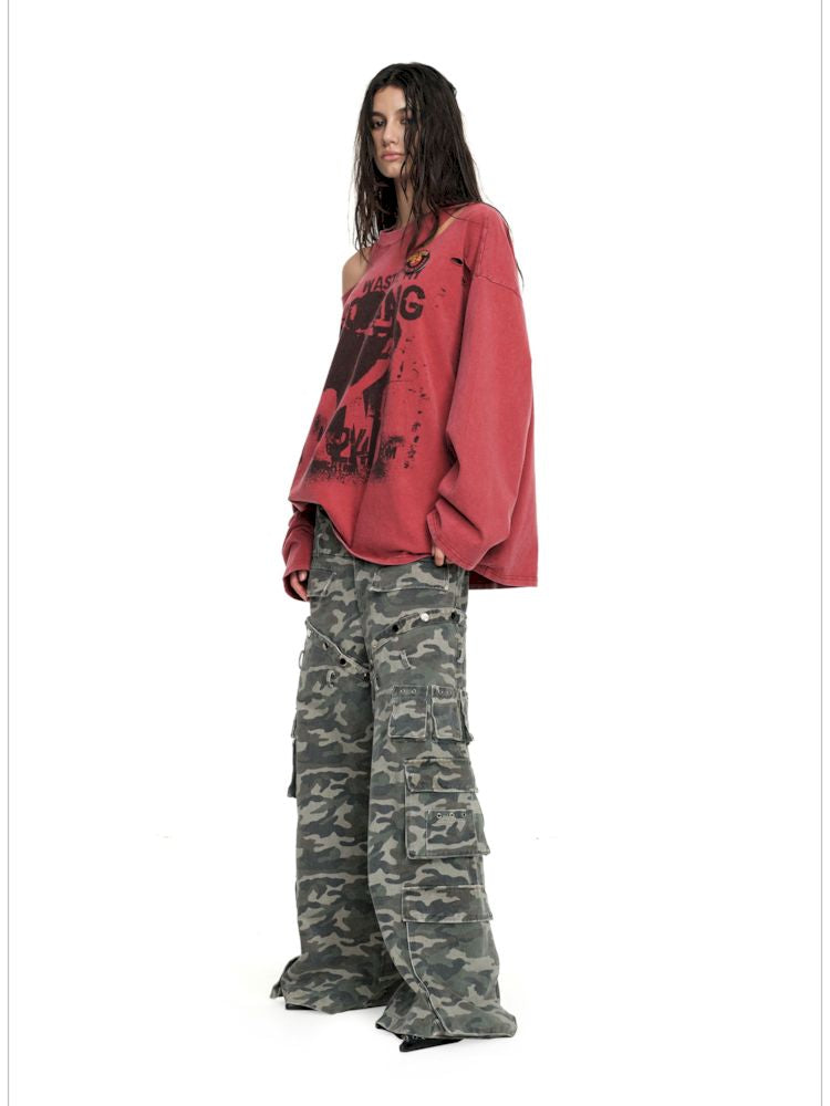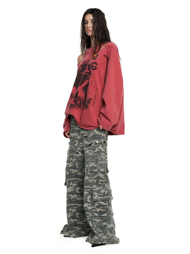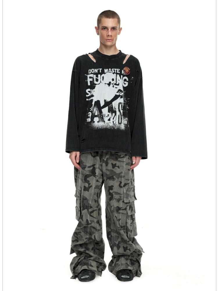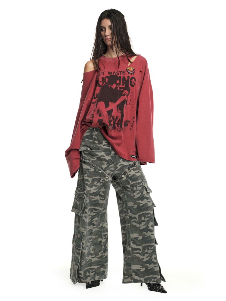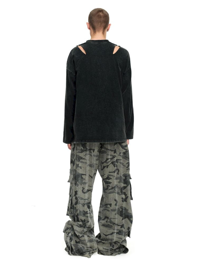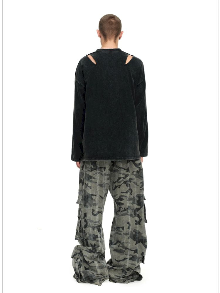 Torn and worn can be strapless long sleeve t-shirt【s0000009950】