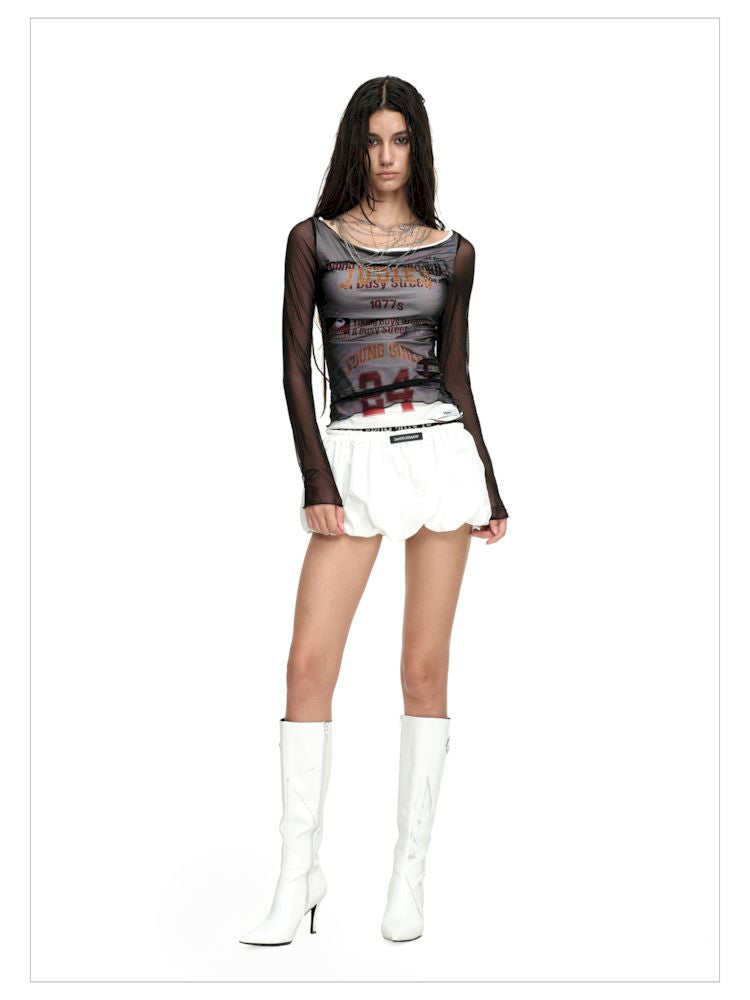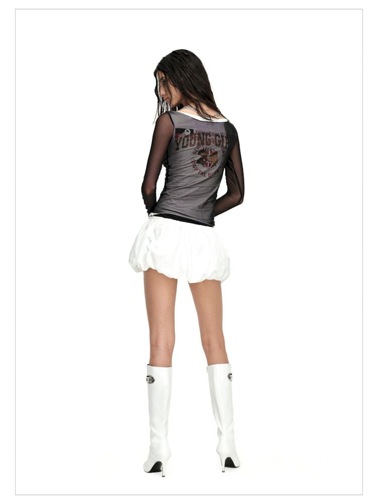 Skinny Two Layers Mesh Long Sleeve Bottom【s0000009958】