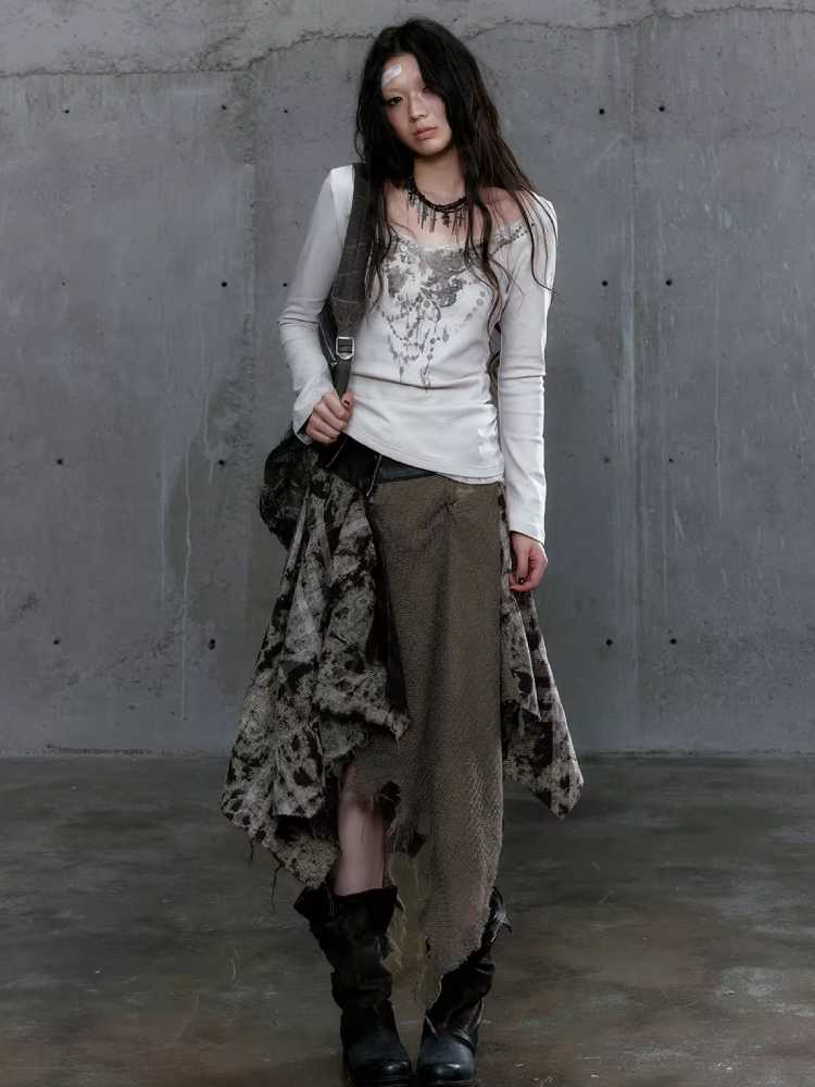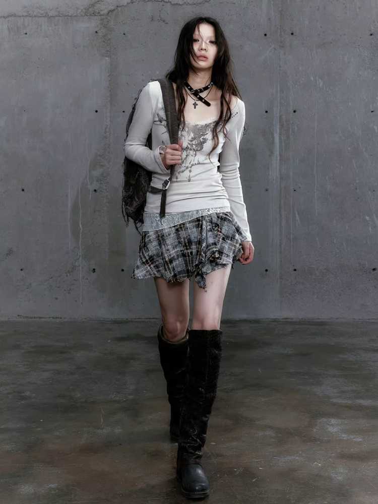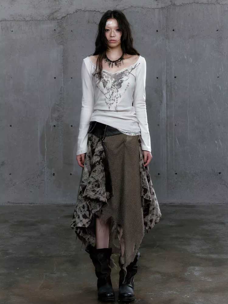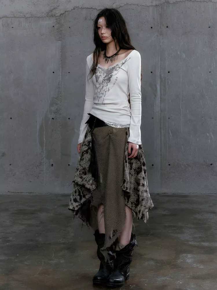Detachable long sleeve T-shirt and skirt set【s0000009981】