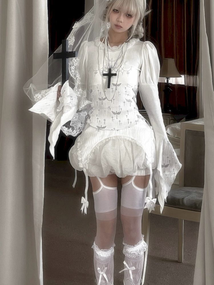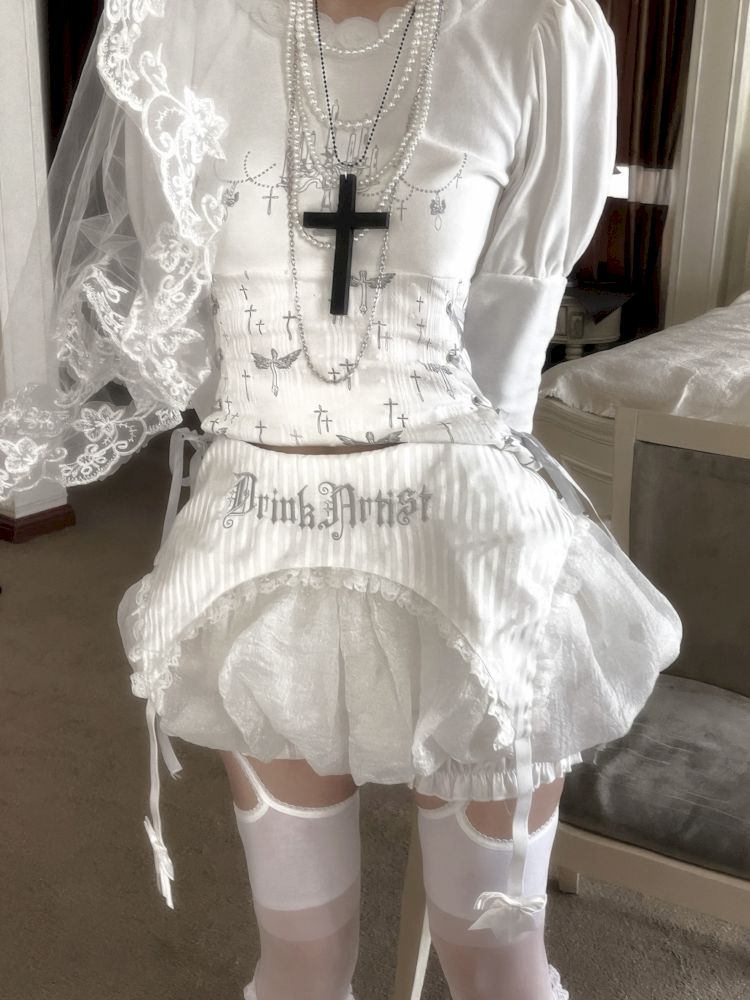 Embroidered Striped Lace Mesh Skirt Pants【s0000009990】
