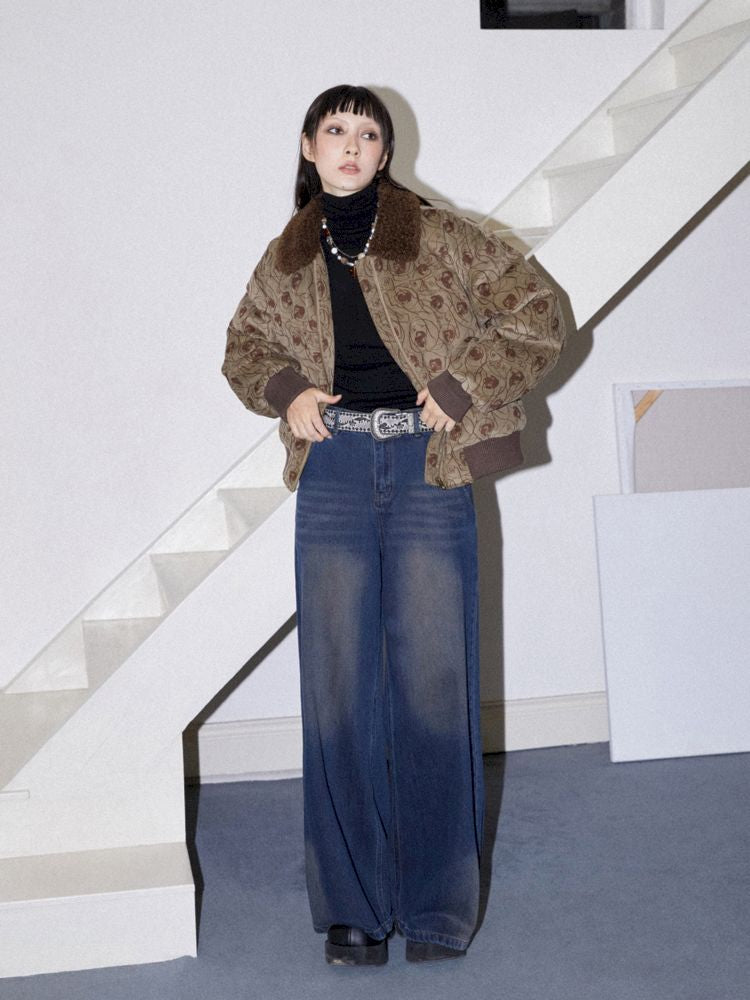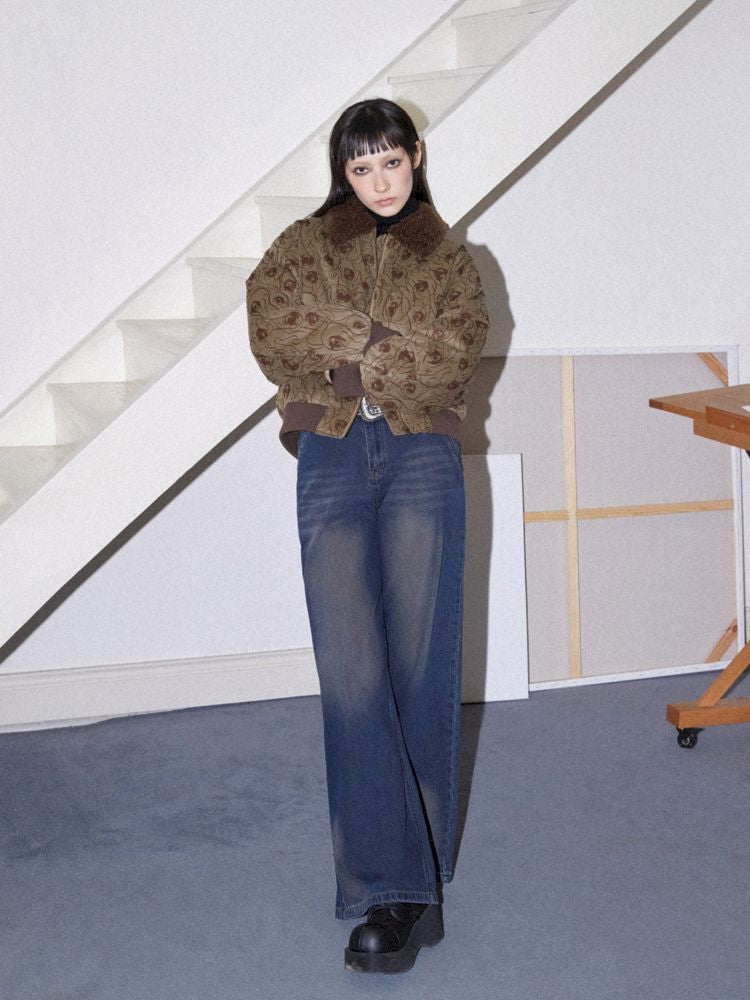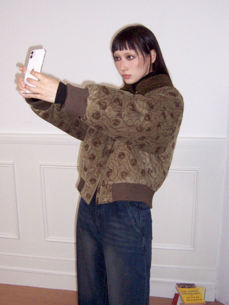 Colorblocked Printed Corduroy Cotton Jacket【s0000010091】