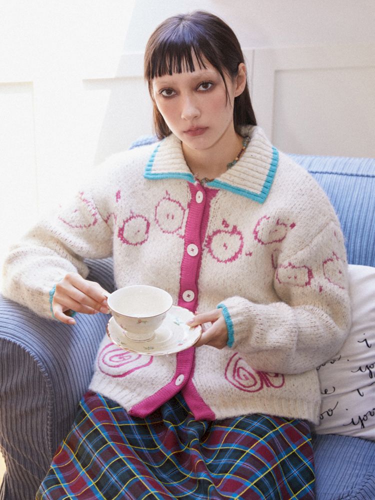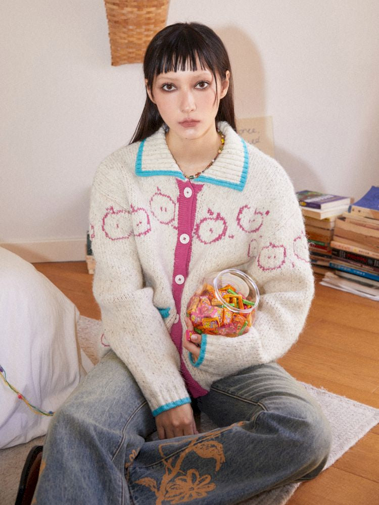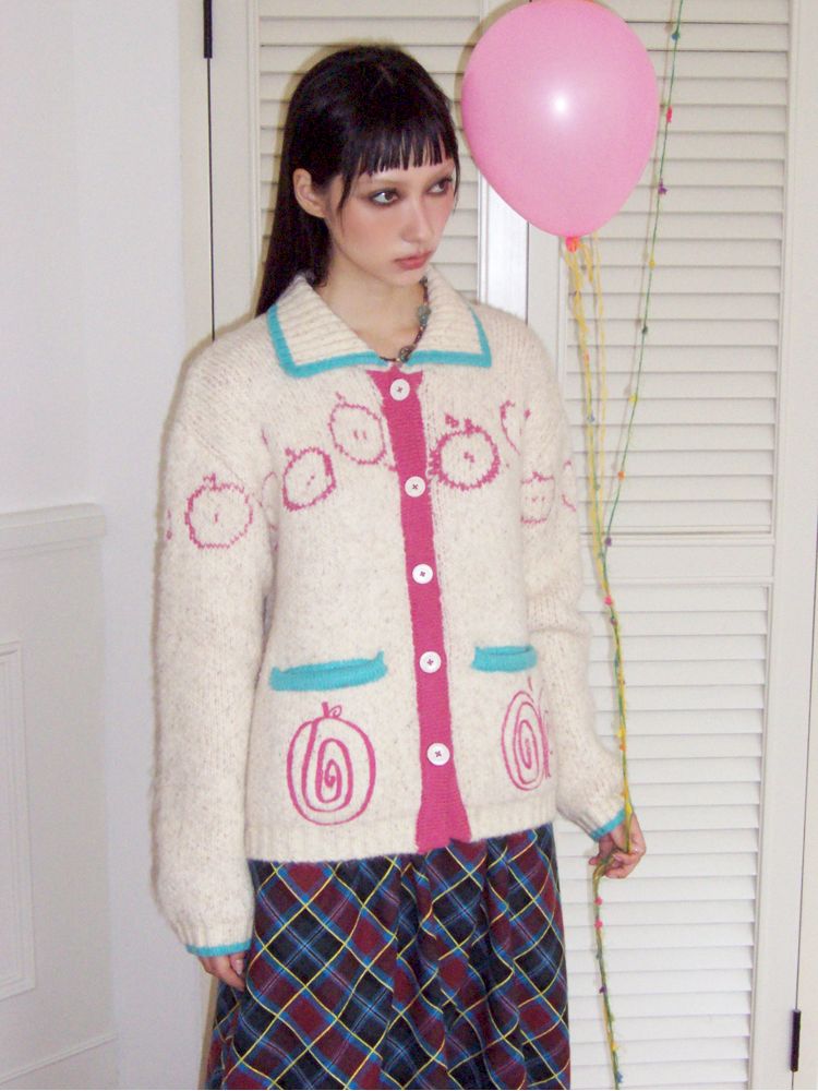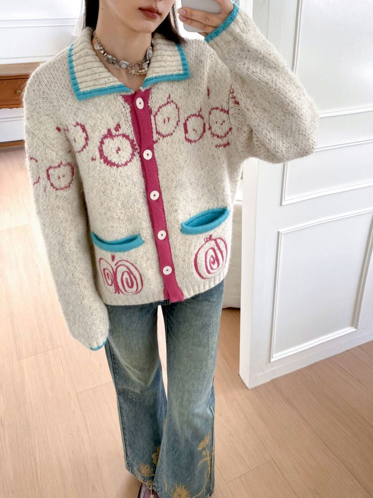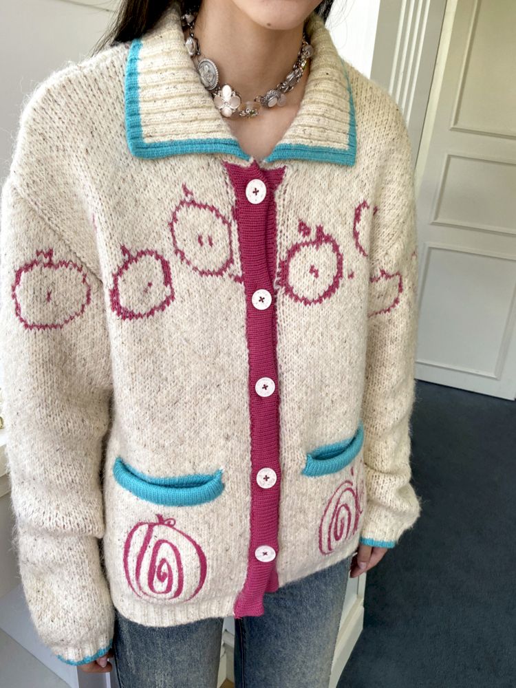 Embroidered Apple Sweater Cardigan【s0000010101】