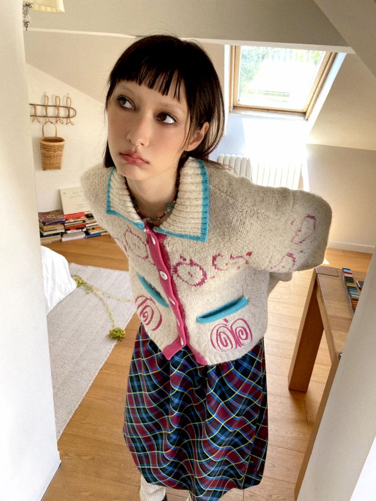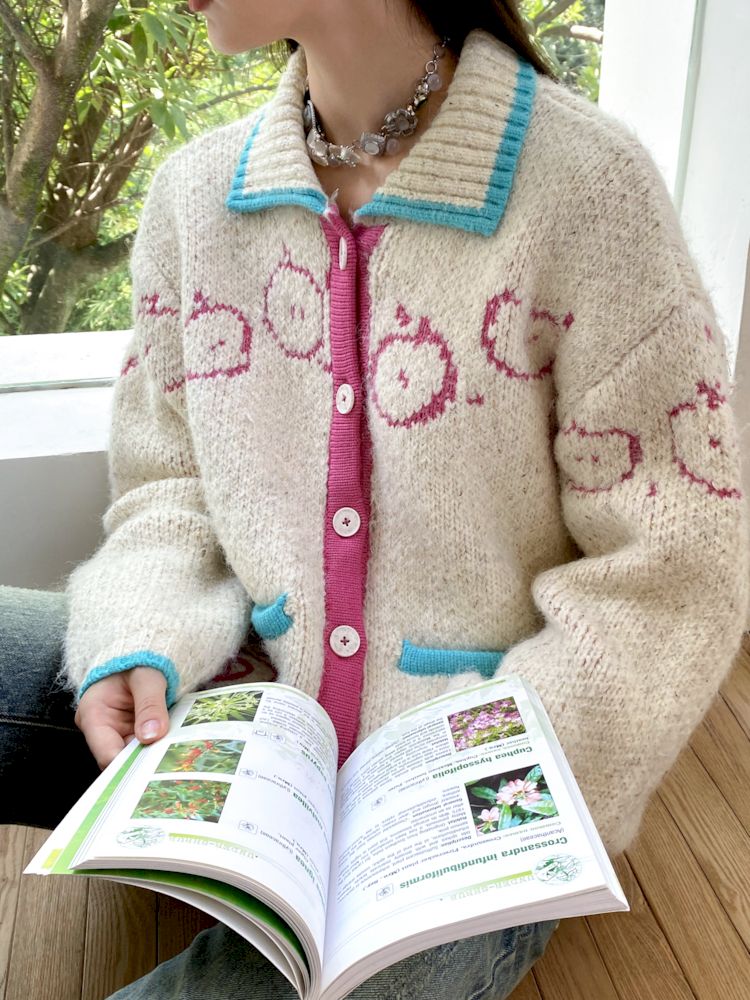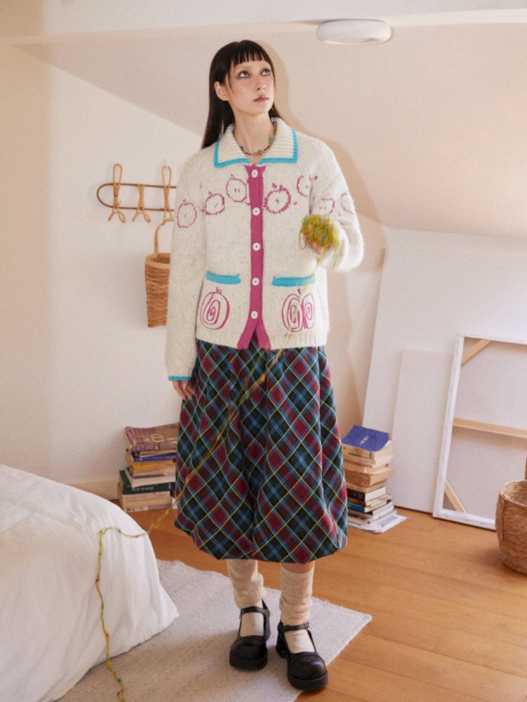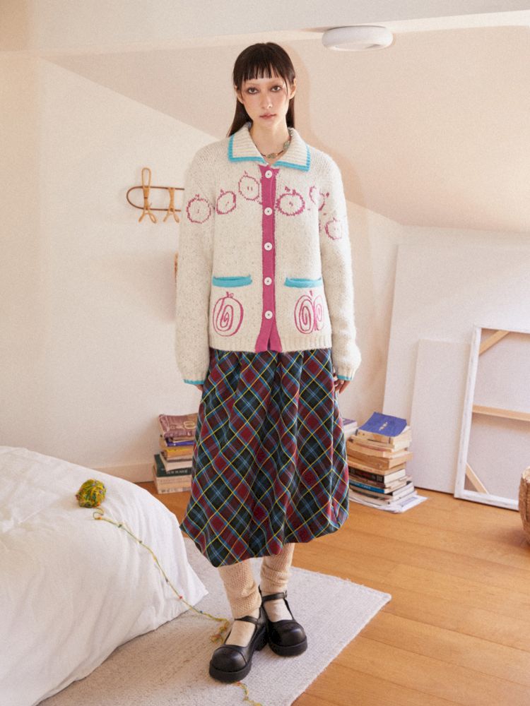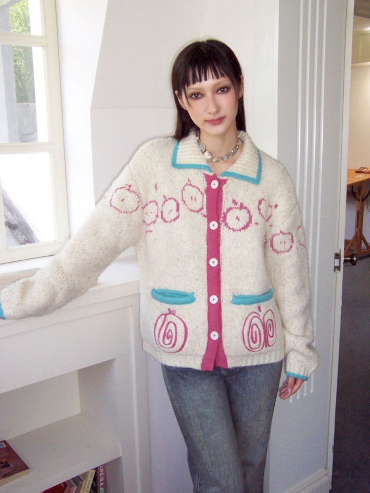 Embroidered Apple Sweater Cardigan【s0000010101】
