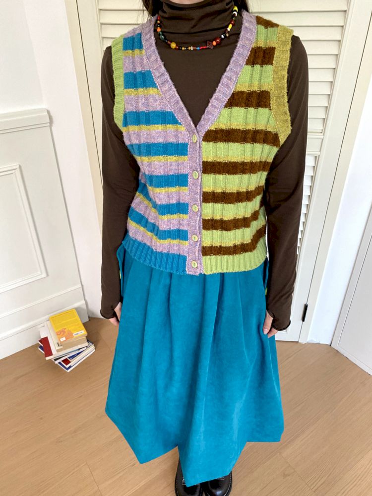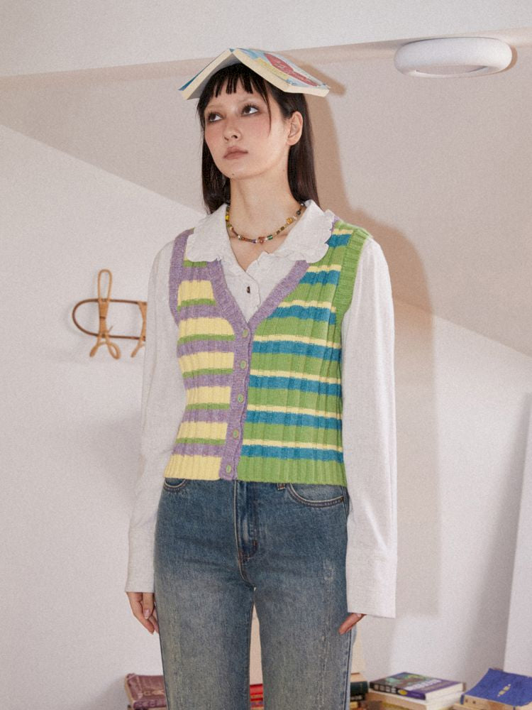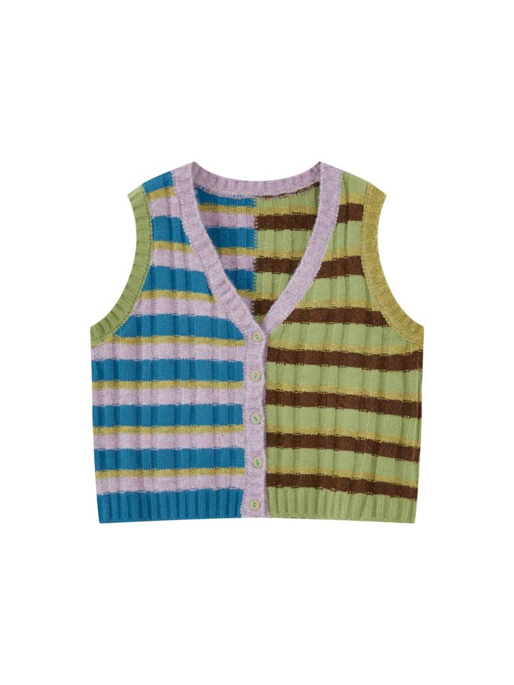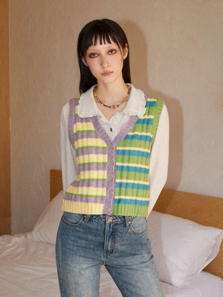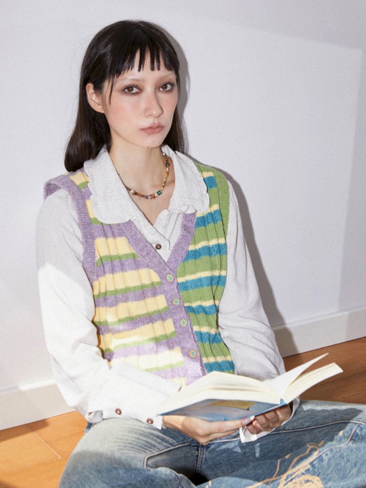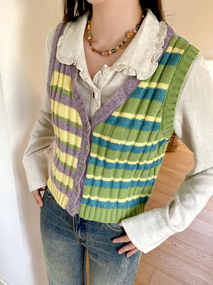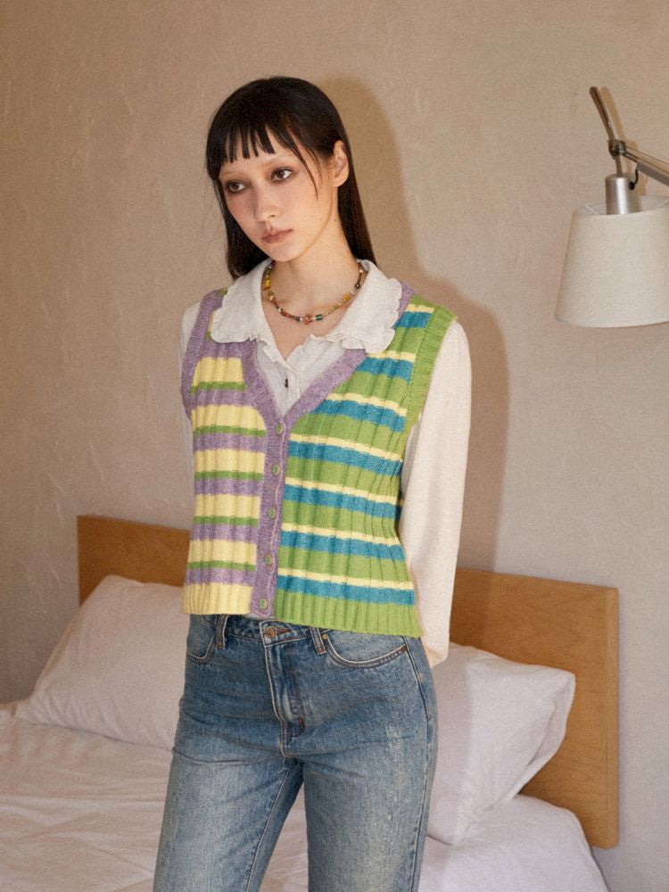 Striped Layered Knit Cardigan Vest【s0000010103】