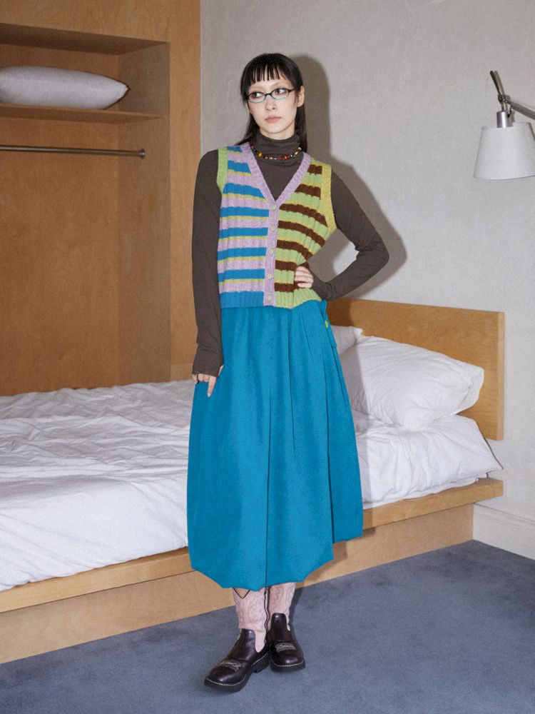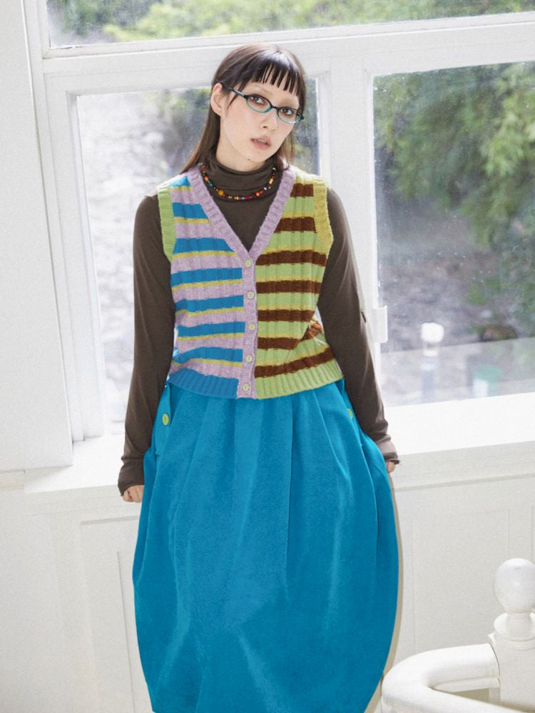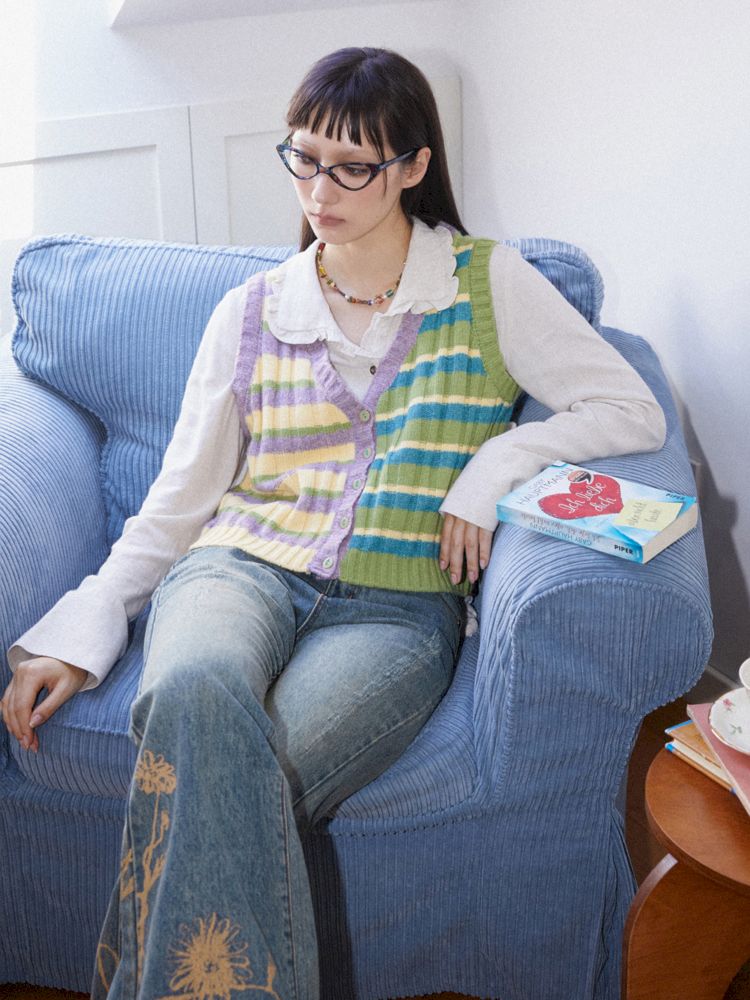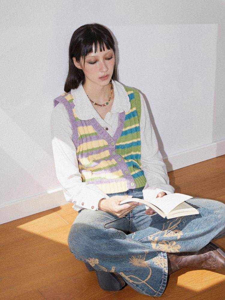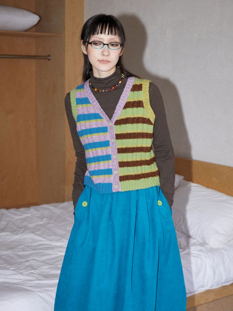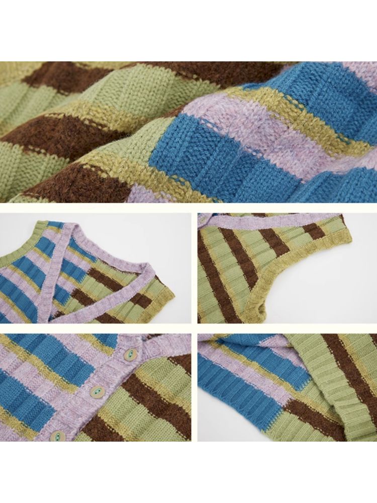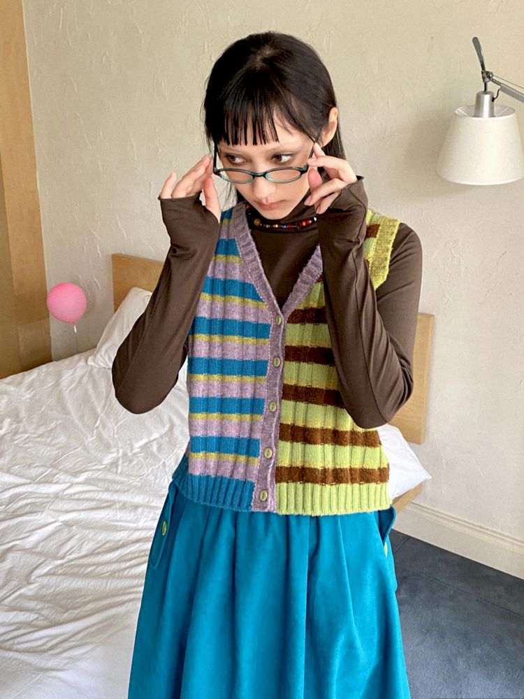 Striped Layered Knit Cardigan Vest【s0000010103】