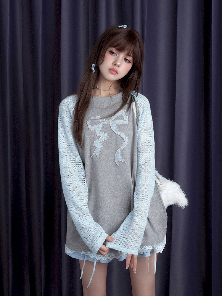 Bow Long Sleeve Top T-Shirt【s0000010104】
