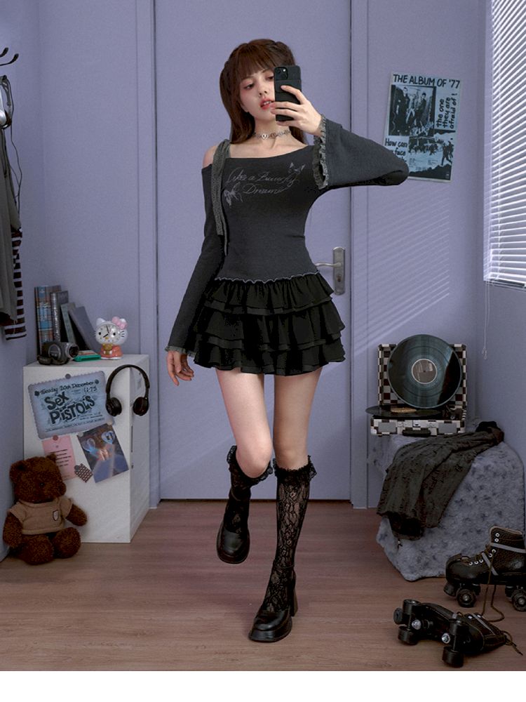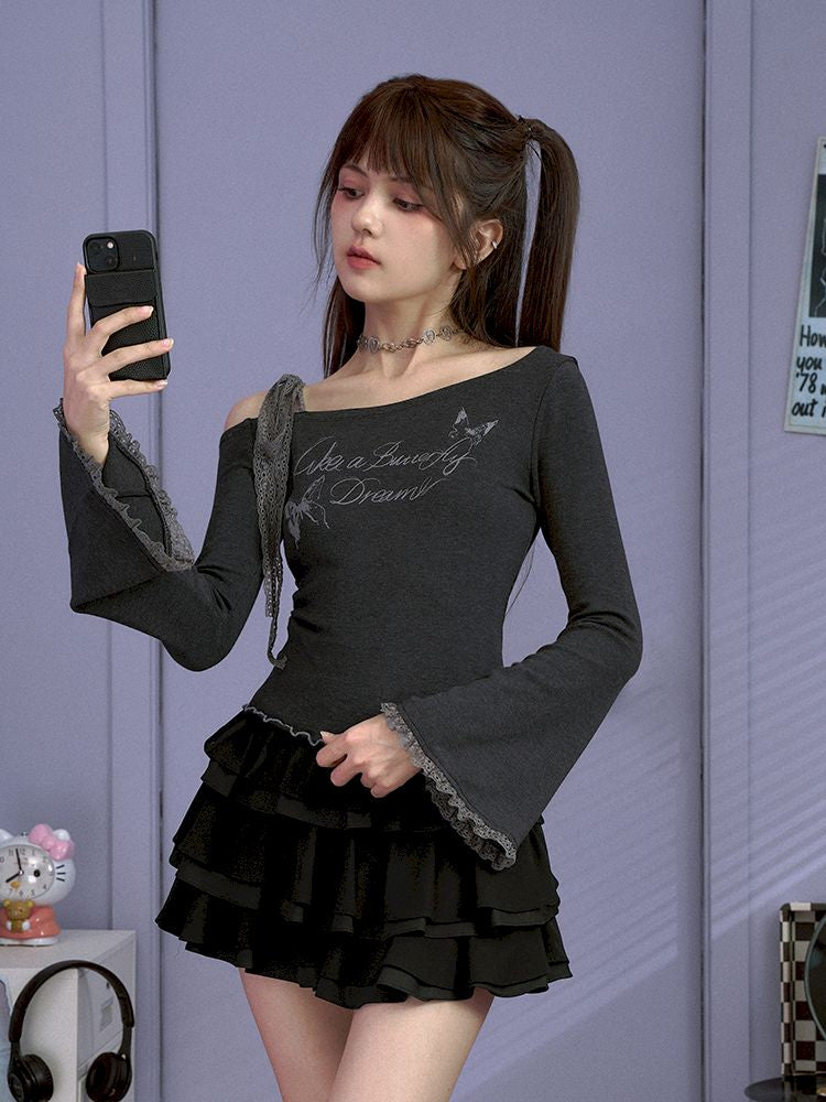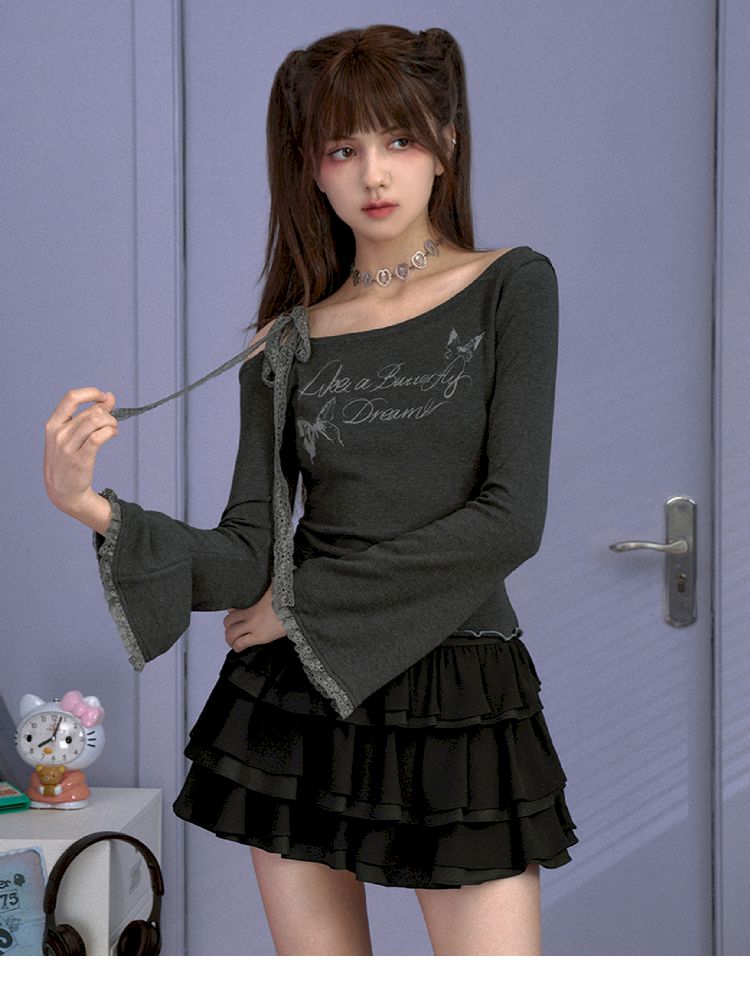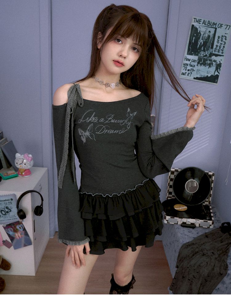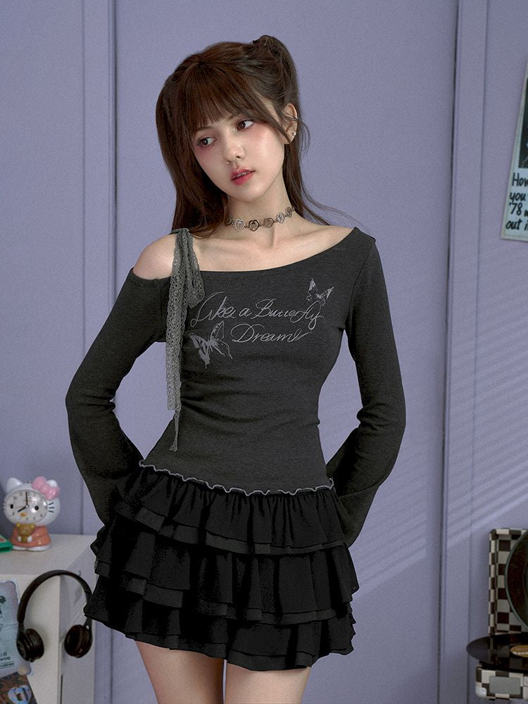Bow strapless long-sleeved T-shirt【s0000010113】