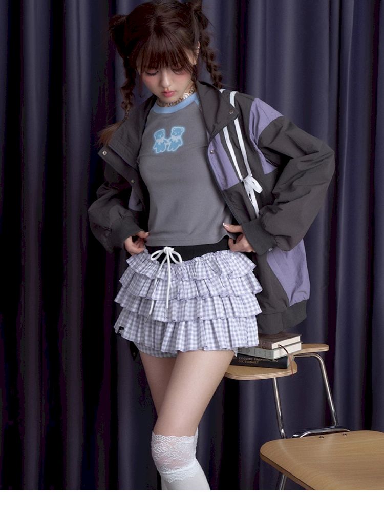Purple Check Cake Skirt【s0000010124】