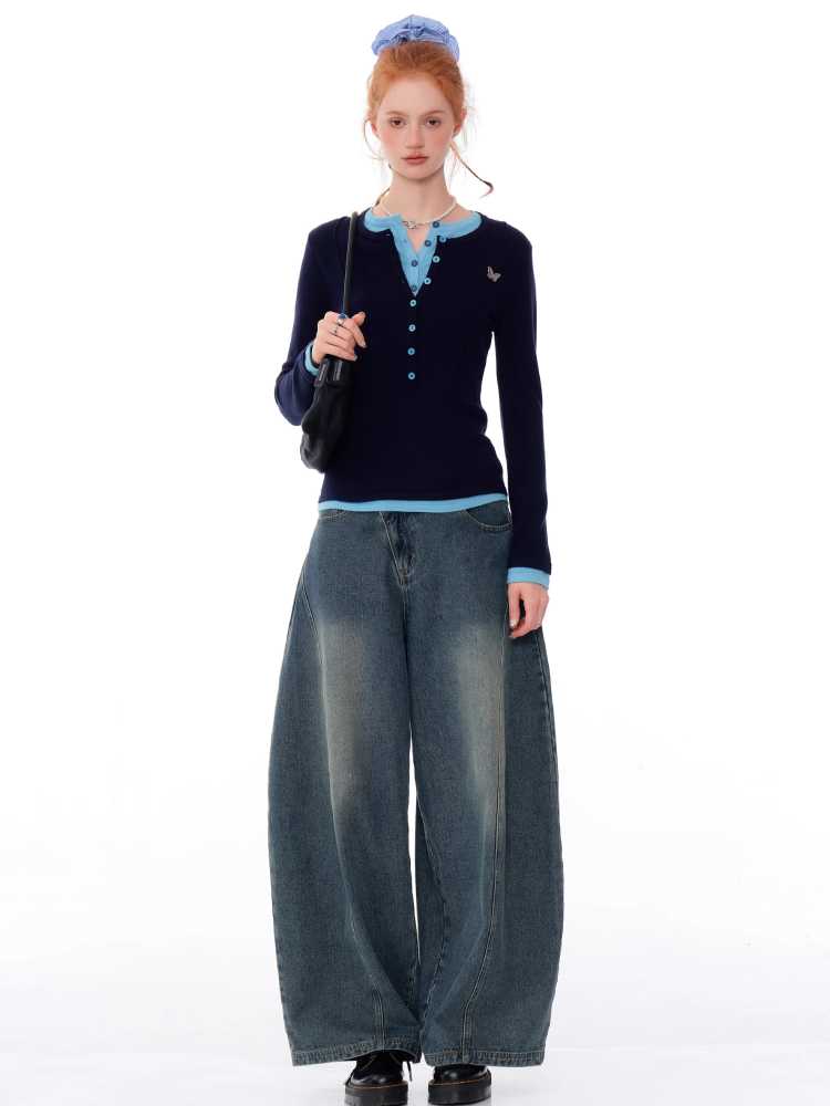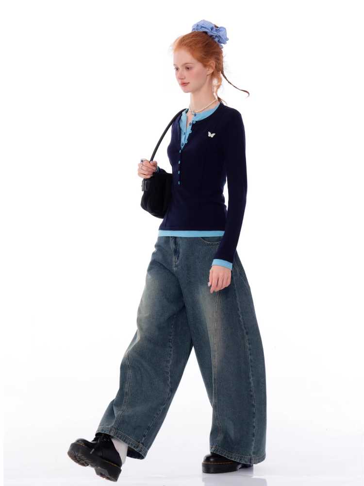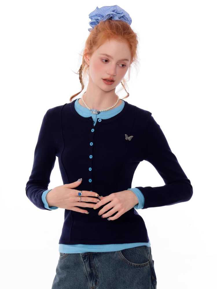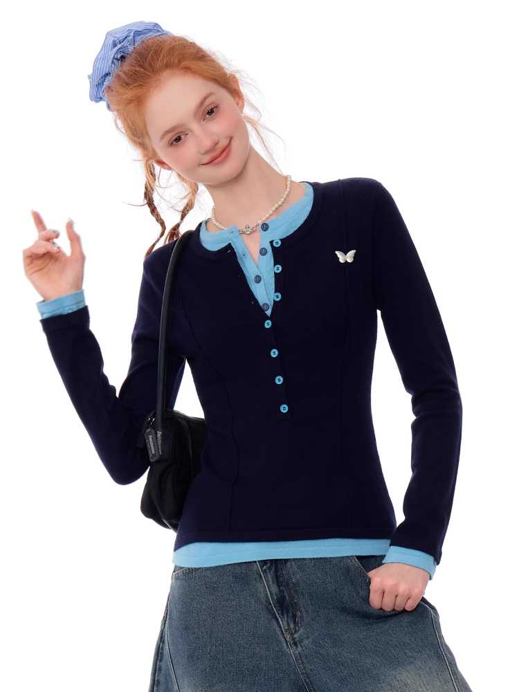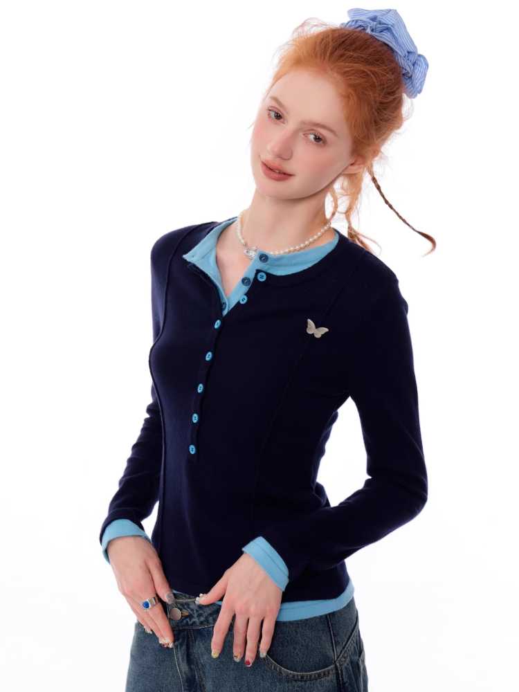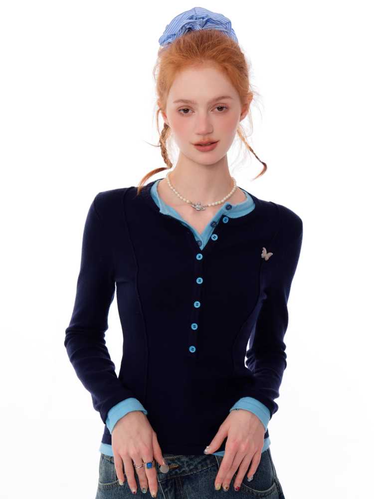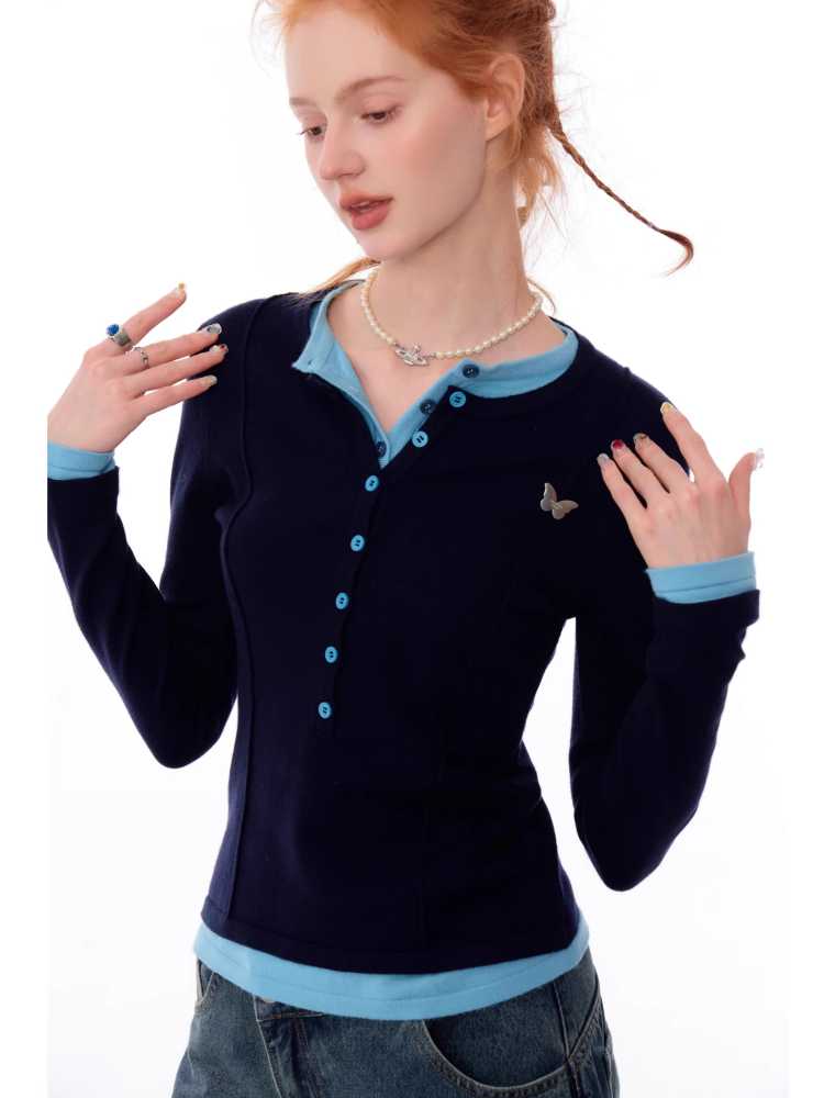 Retro fake two-piece top【s0000010148】