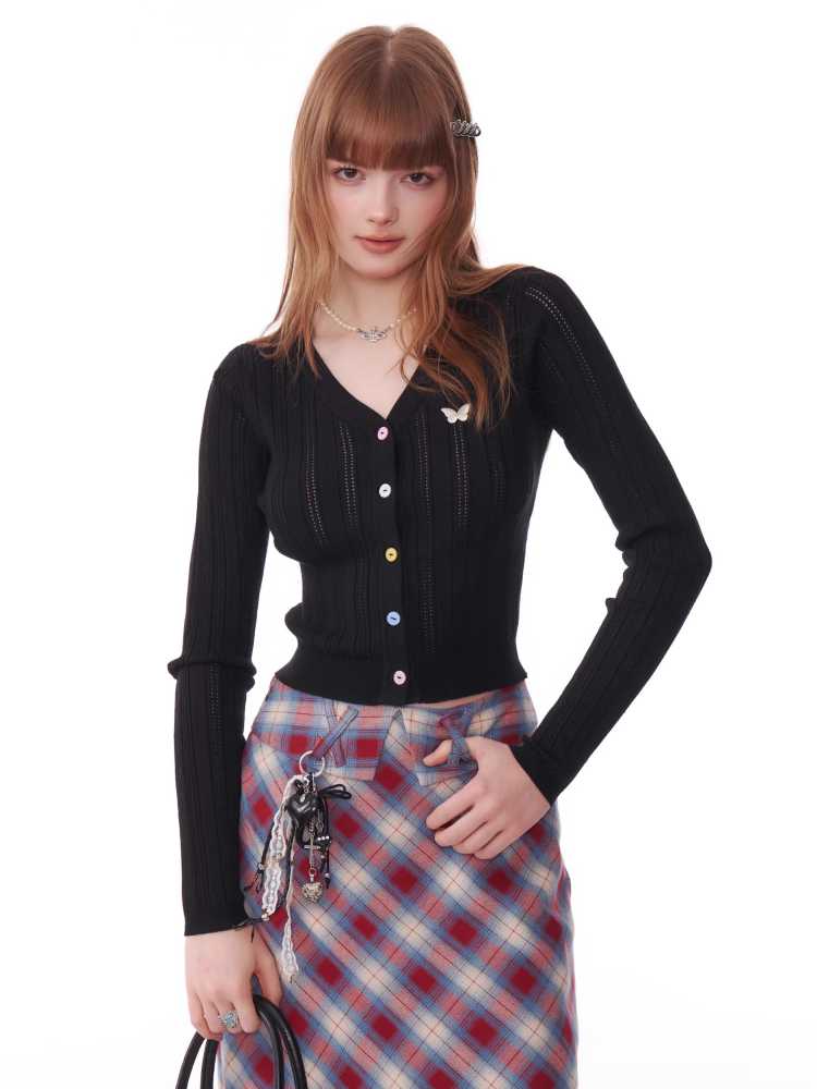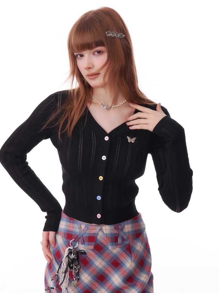 V-neck long sleeve knit cardigan【s0000010154】