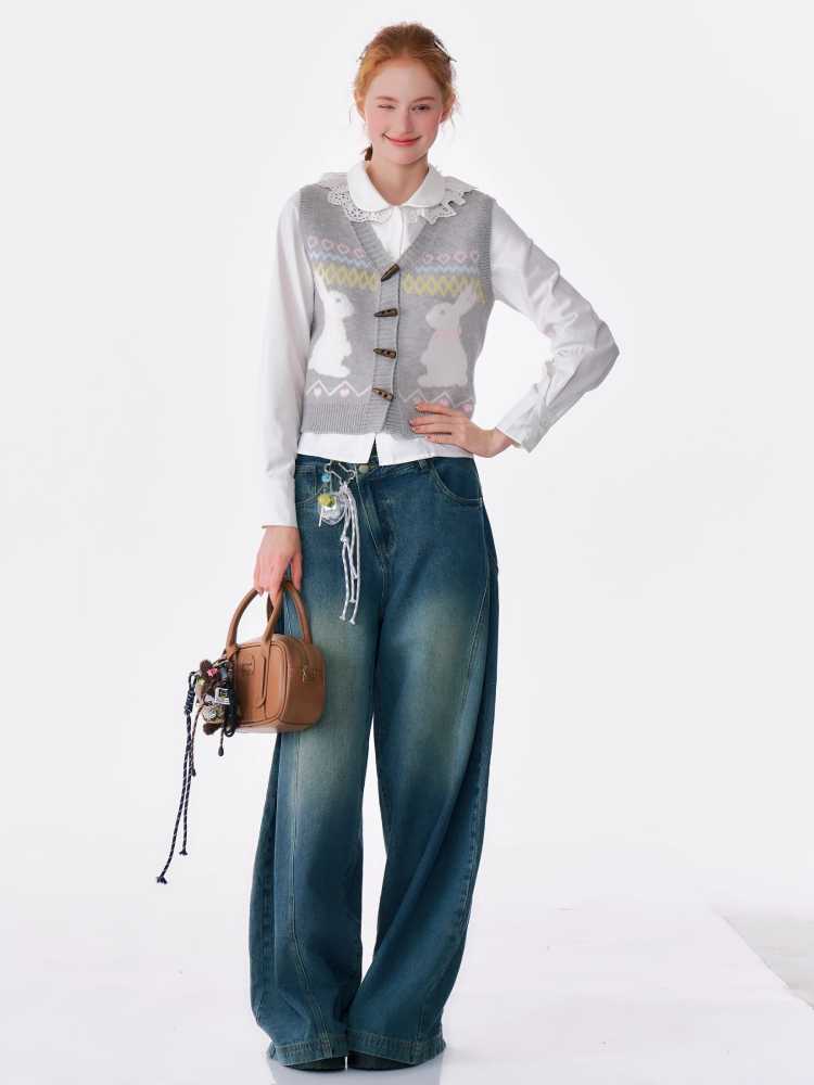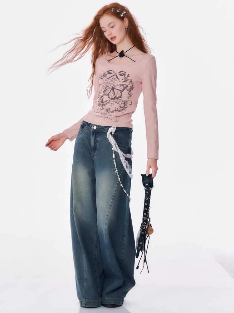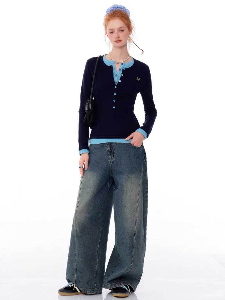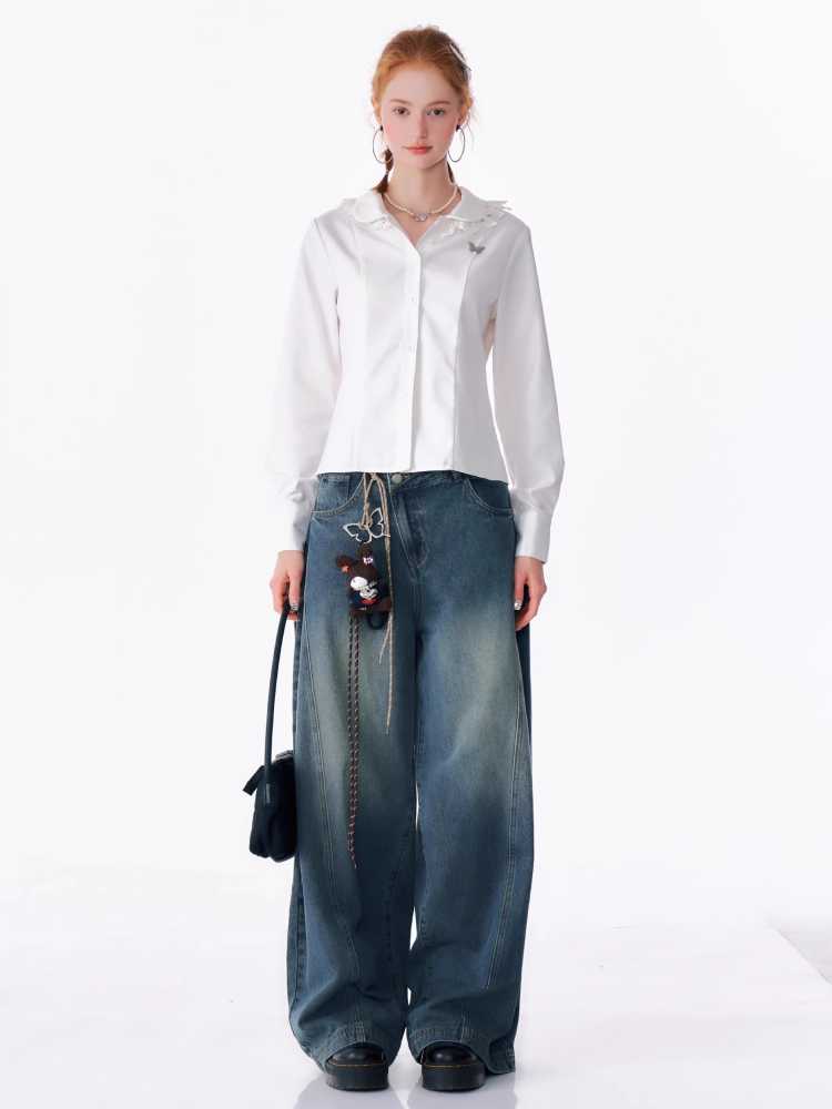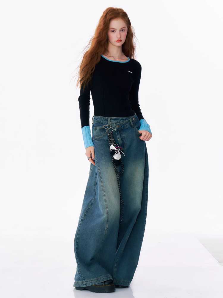 High waist slim wide leg jeans【s0000010175】