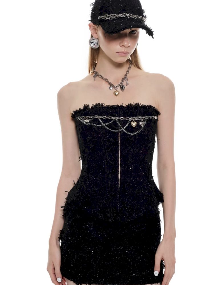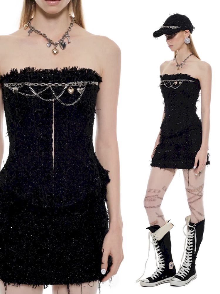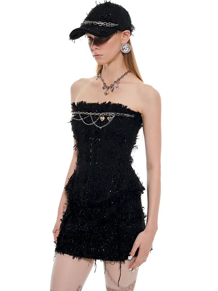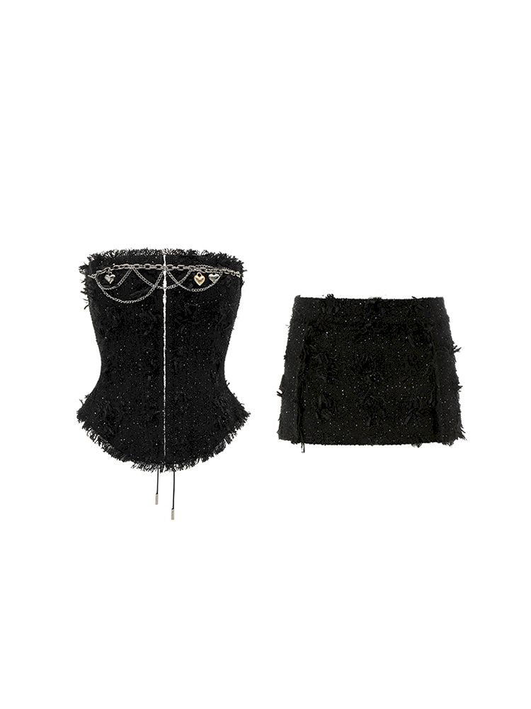 Tweed Fishbone Raw Edge Short Skirt Suit【s0000010198】