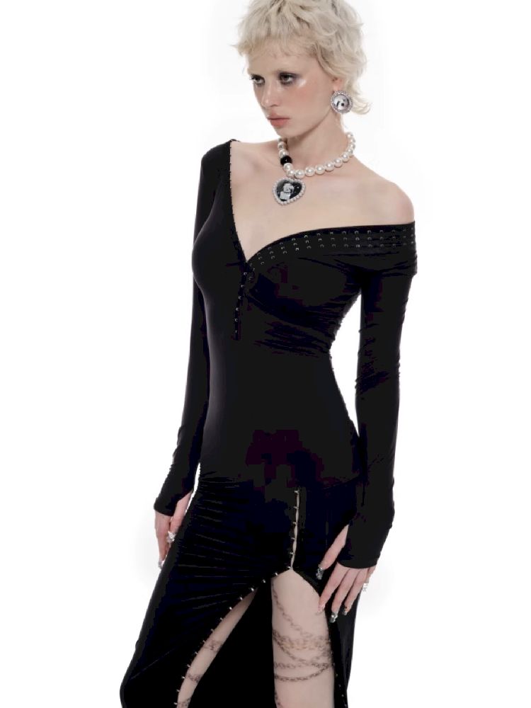 Hook Button Long Sleeve Dress【s0000010215】