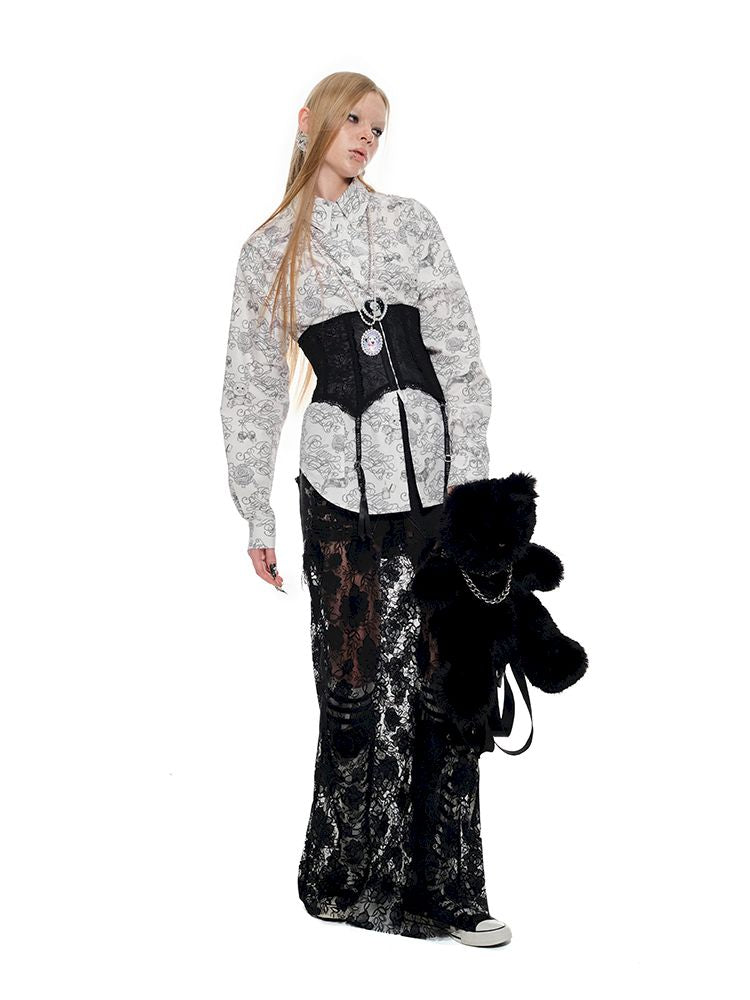 Letter Full Print Long Sleeve Shirt【s0000010220】