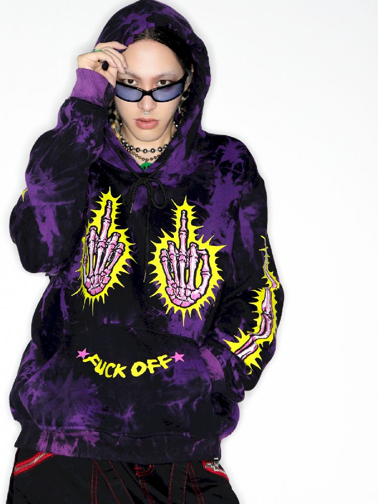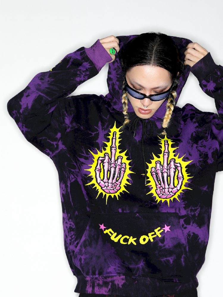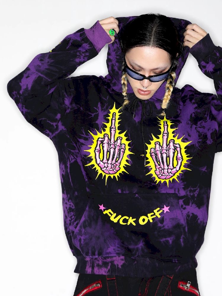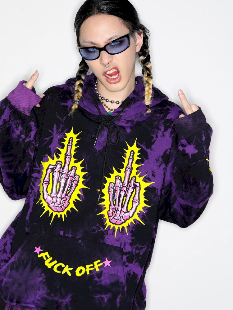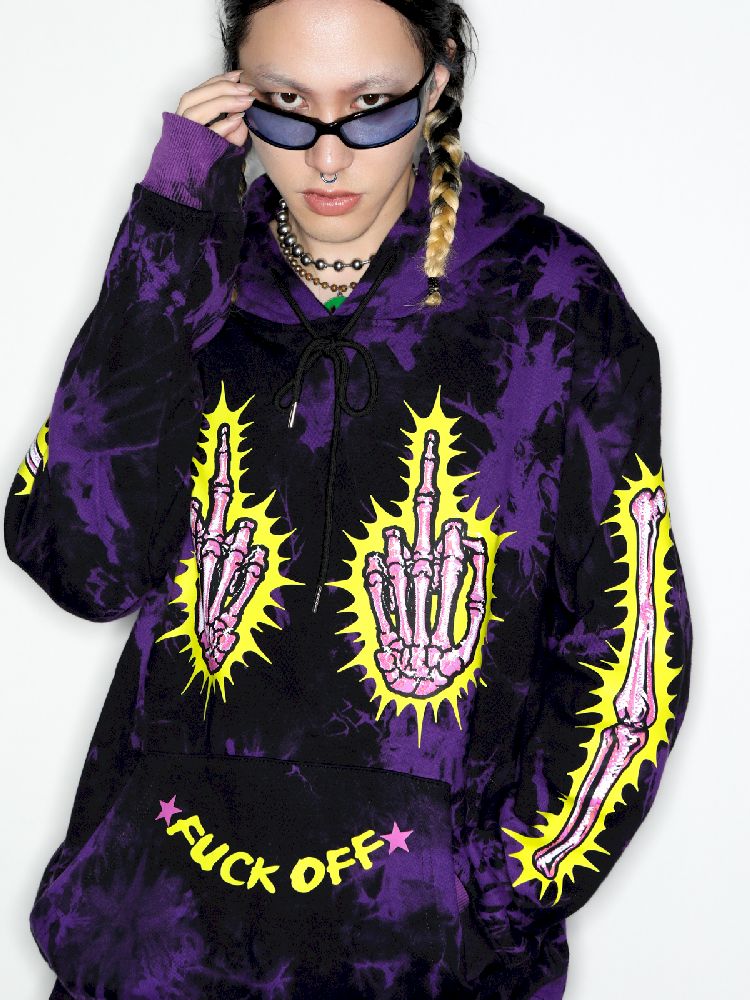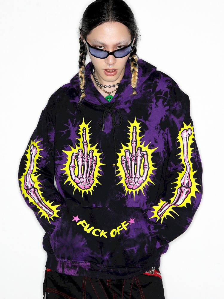 Dark Punk Middle Finger Tie-Dye Hooded Sweatshirt【s0000010267】