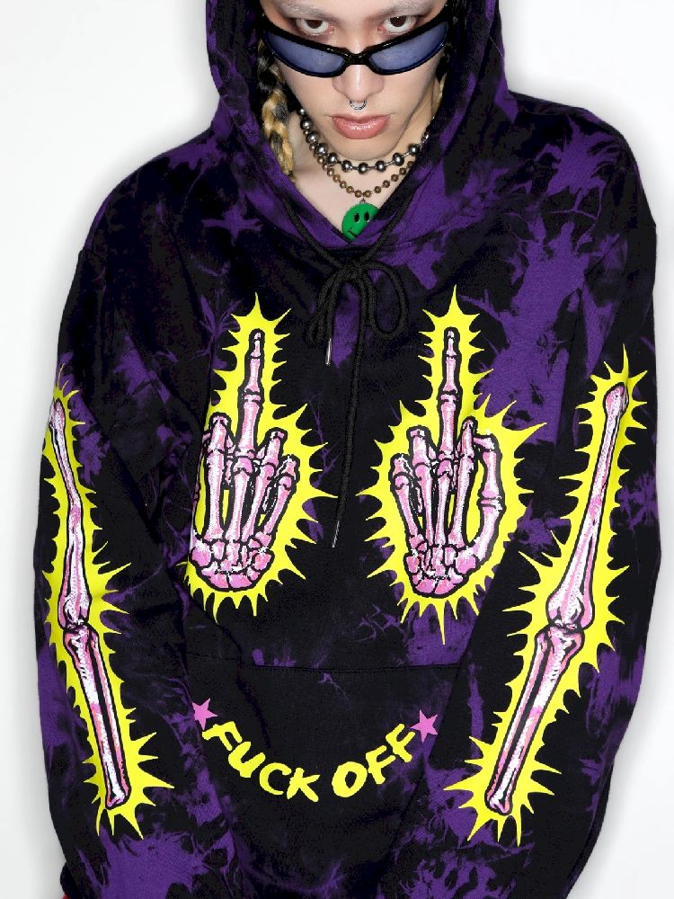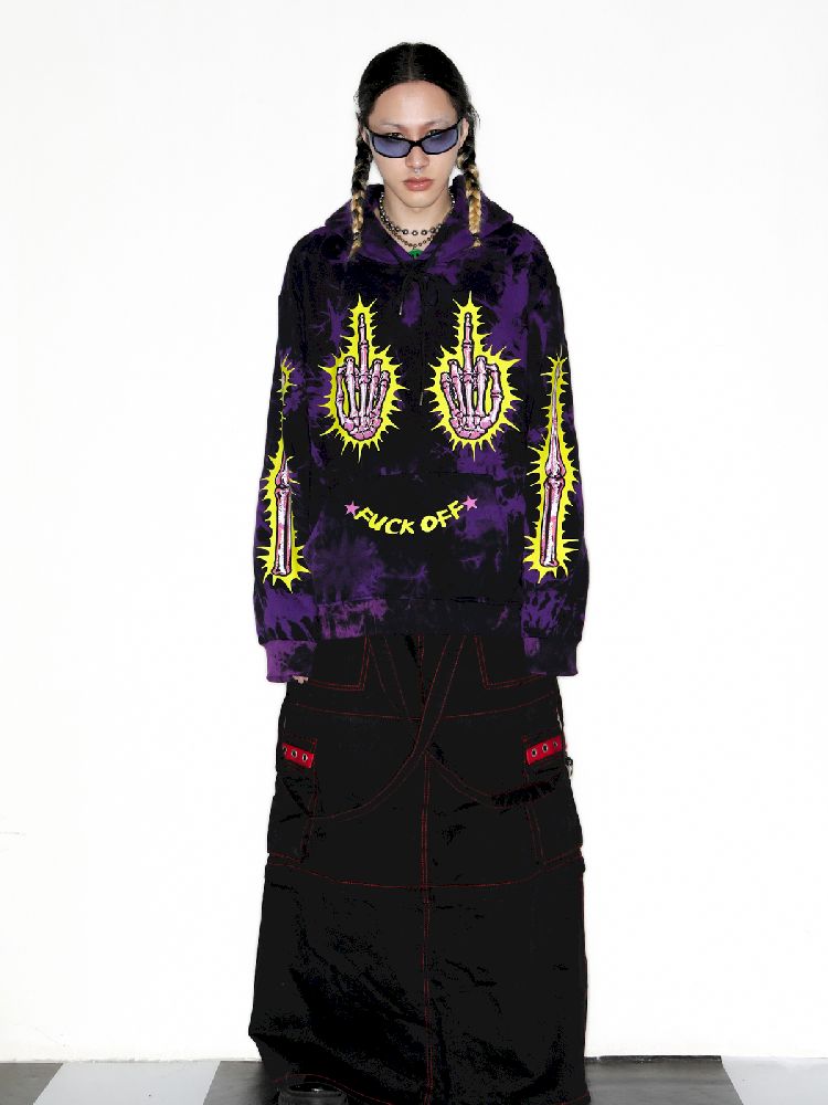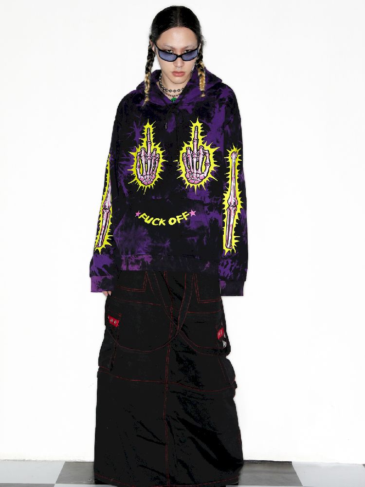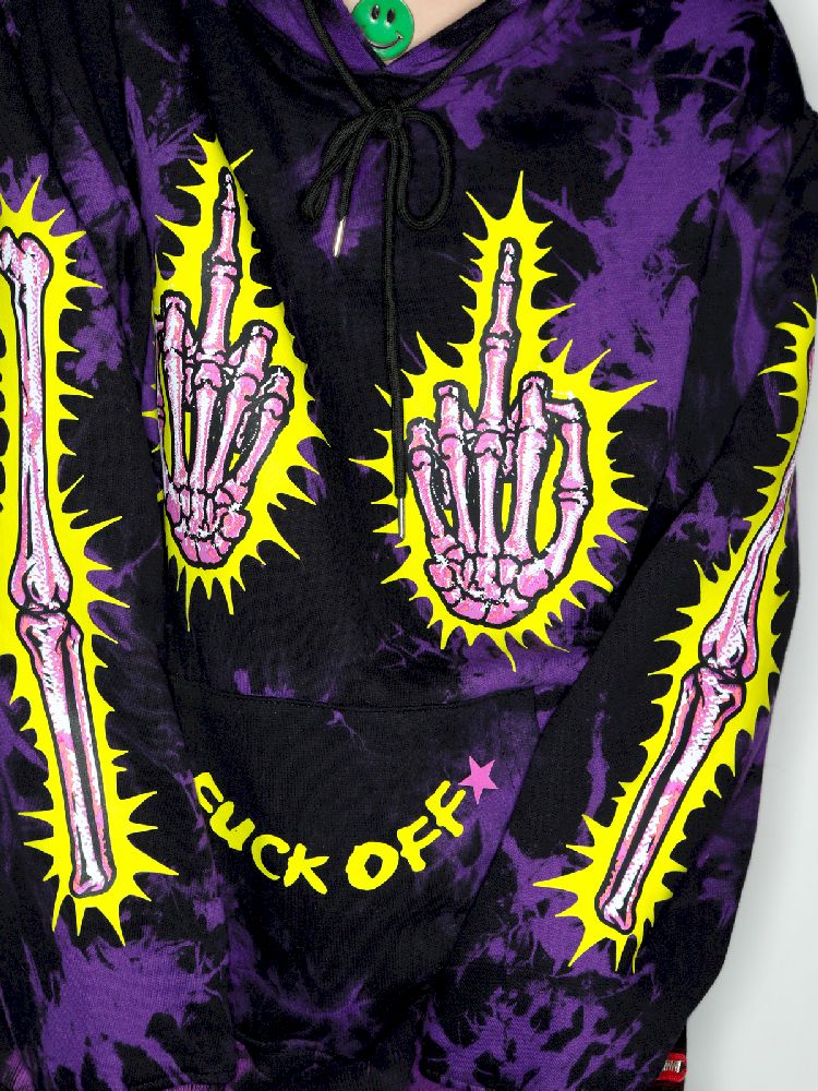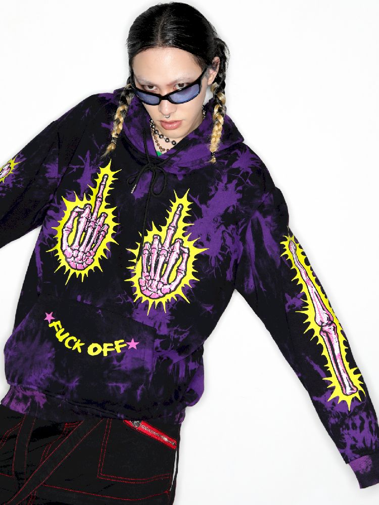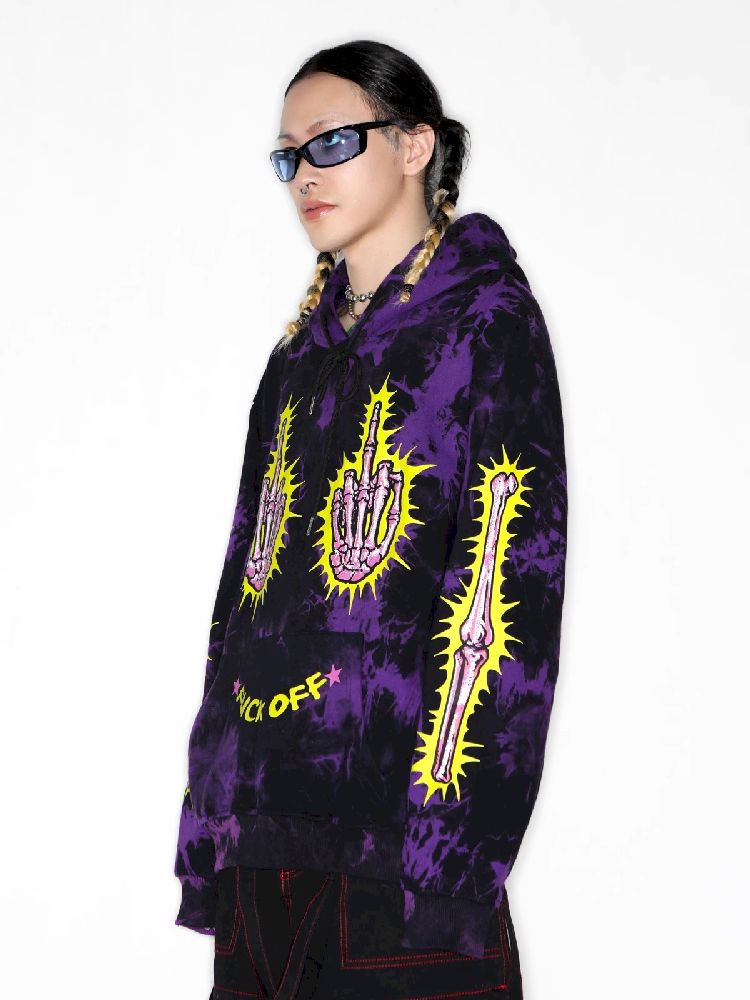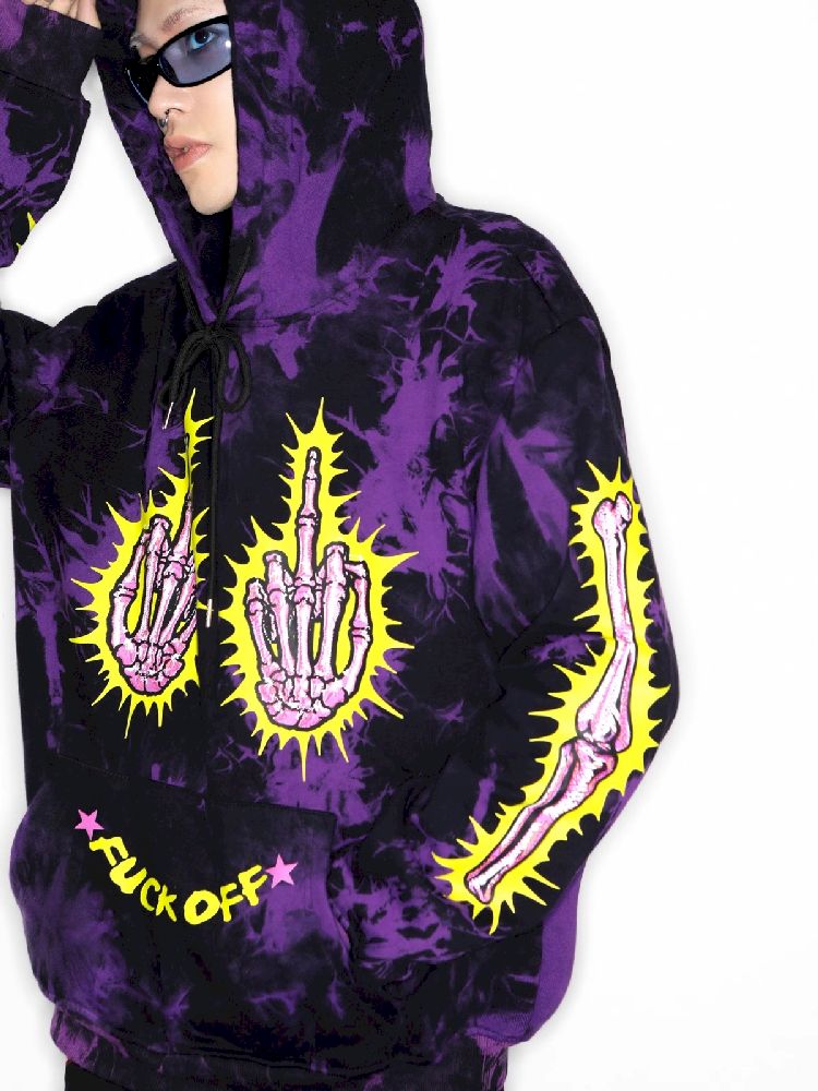 Dark Punk Middle Finger Tie-Dye Hooded Sweatshirt【s0000010267】