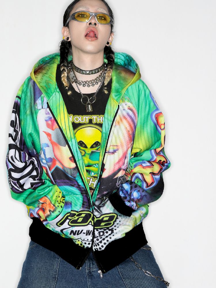 Retro Street Alien Loose Hooded Jacket【s0000010269】