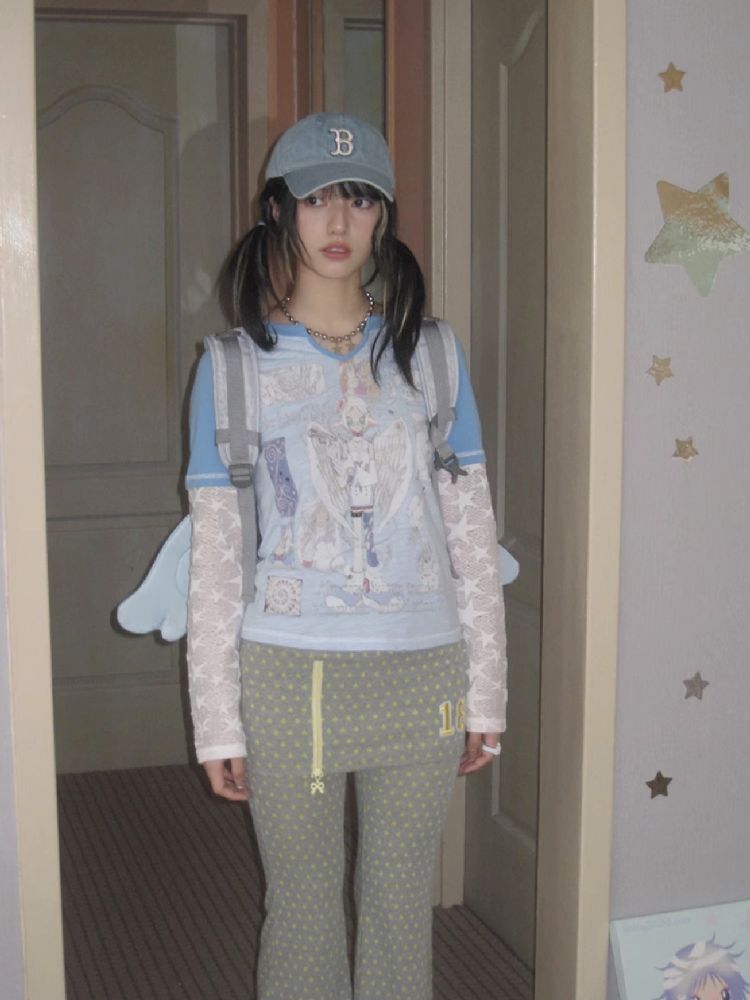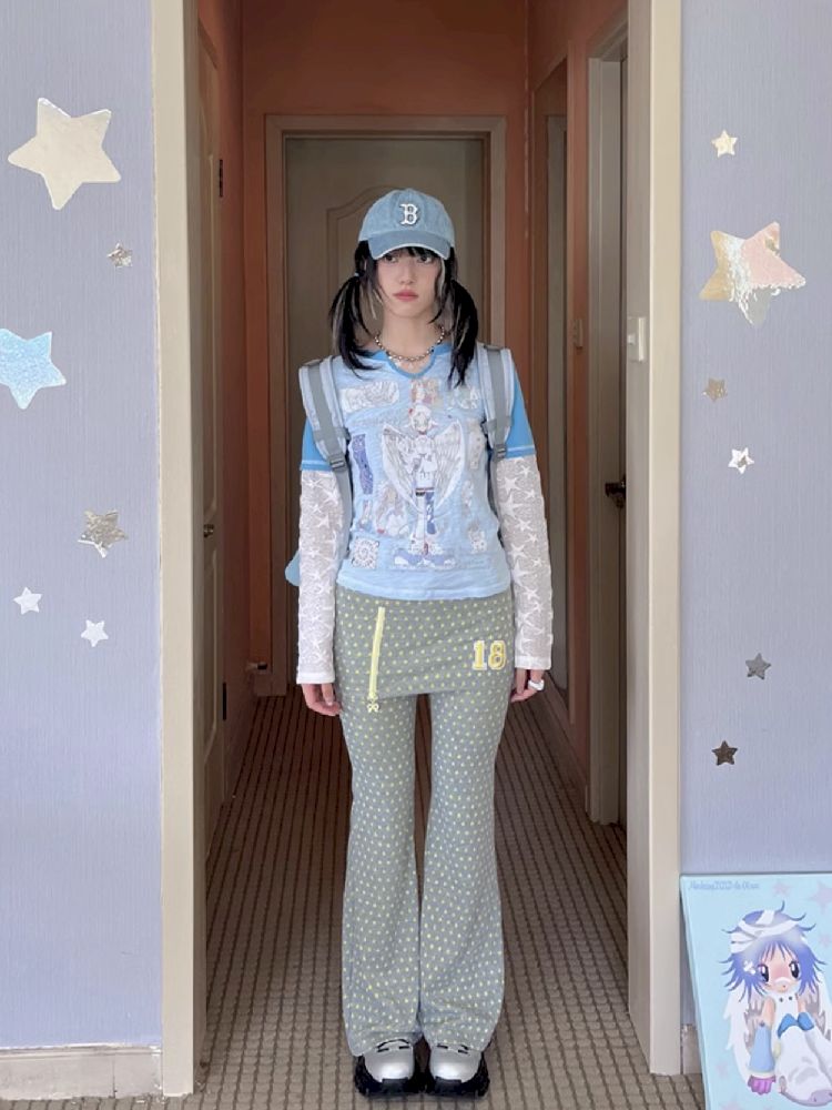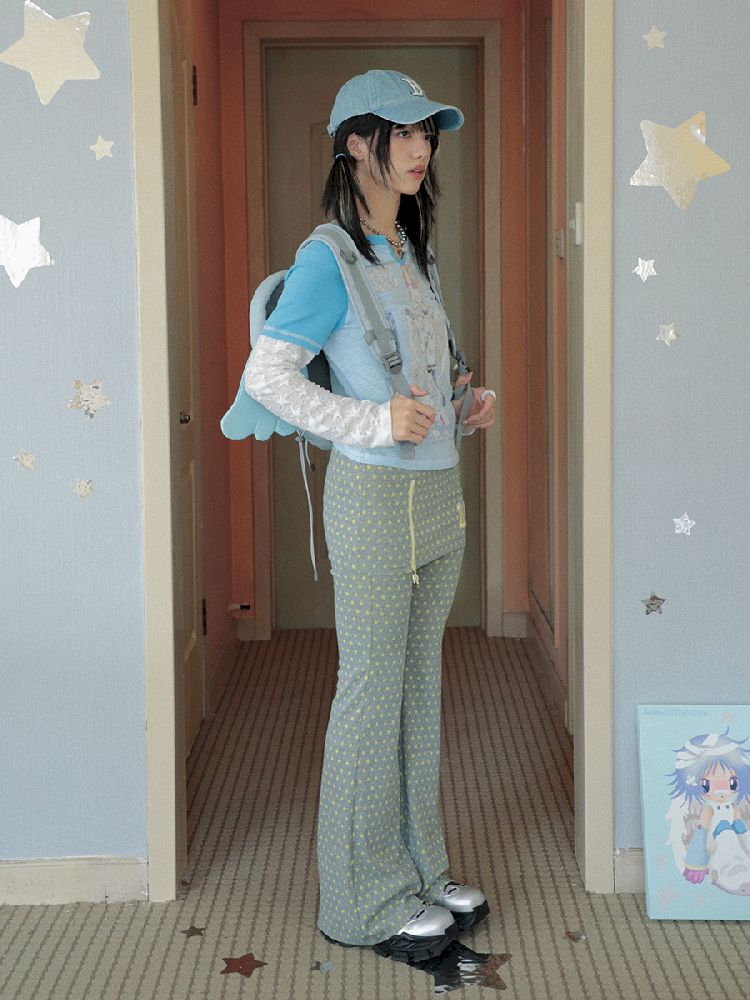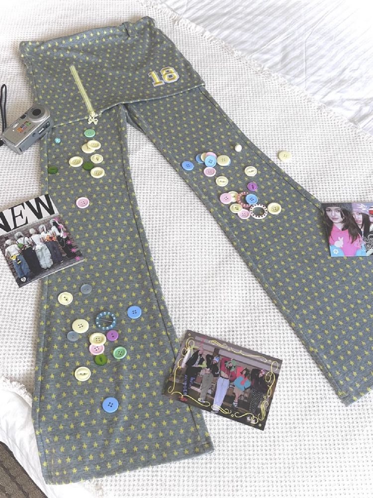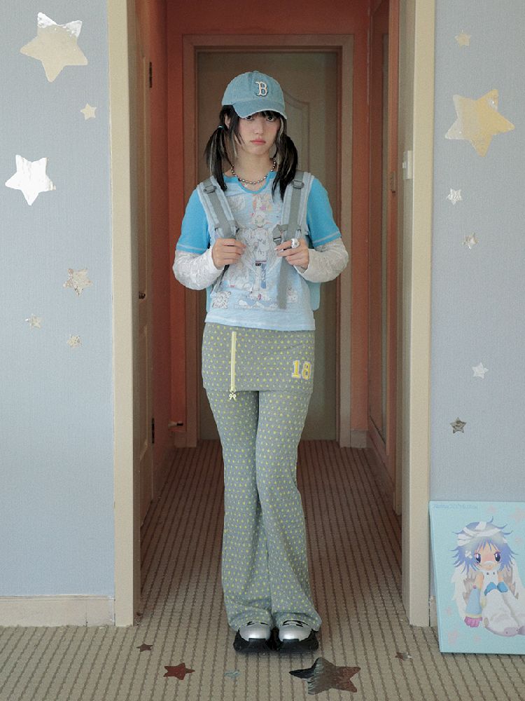 Slim Niche Gray Star Flare Skirt Pants【s0000010273】