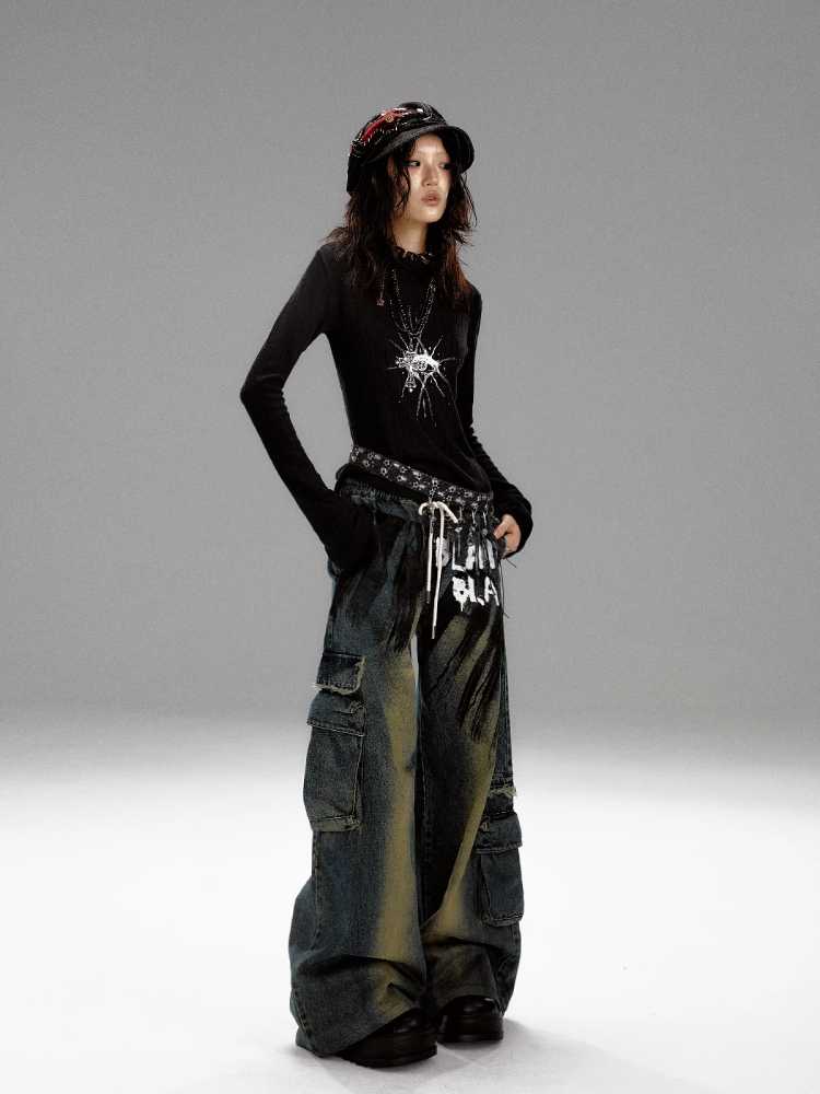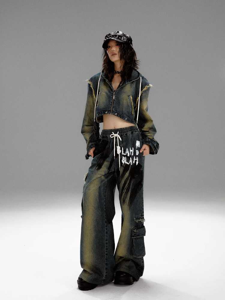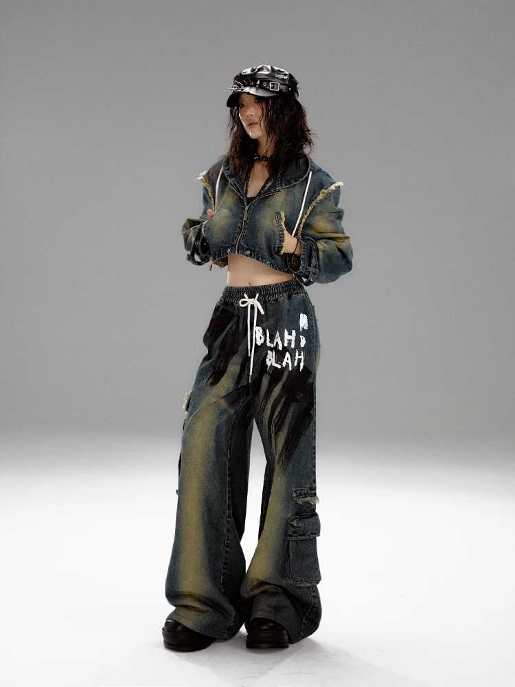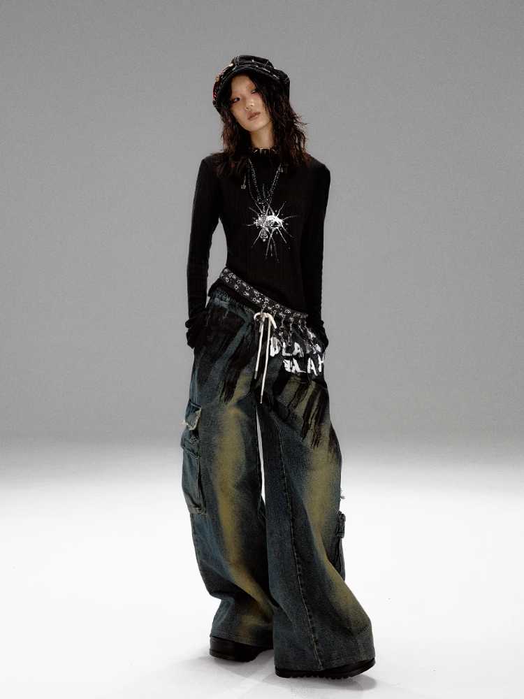 Wide leg distressed jeans【s0000010298】