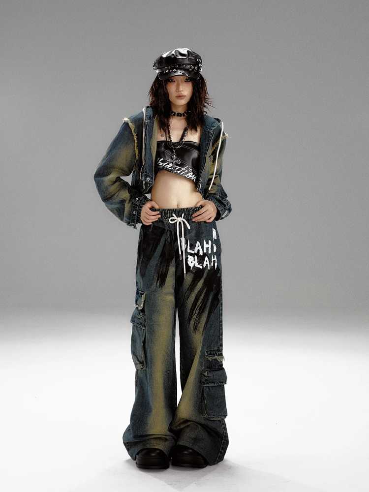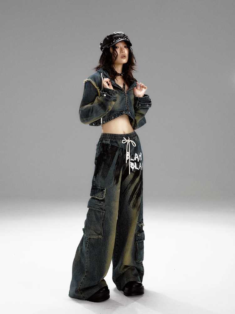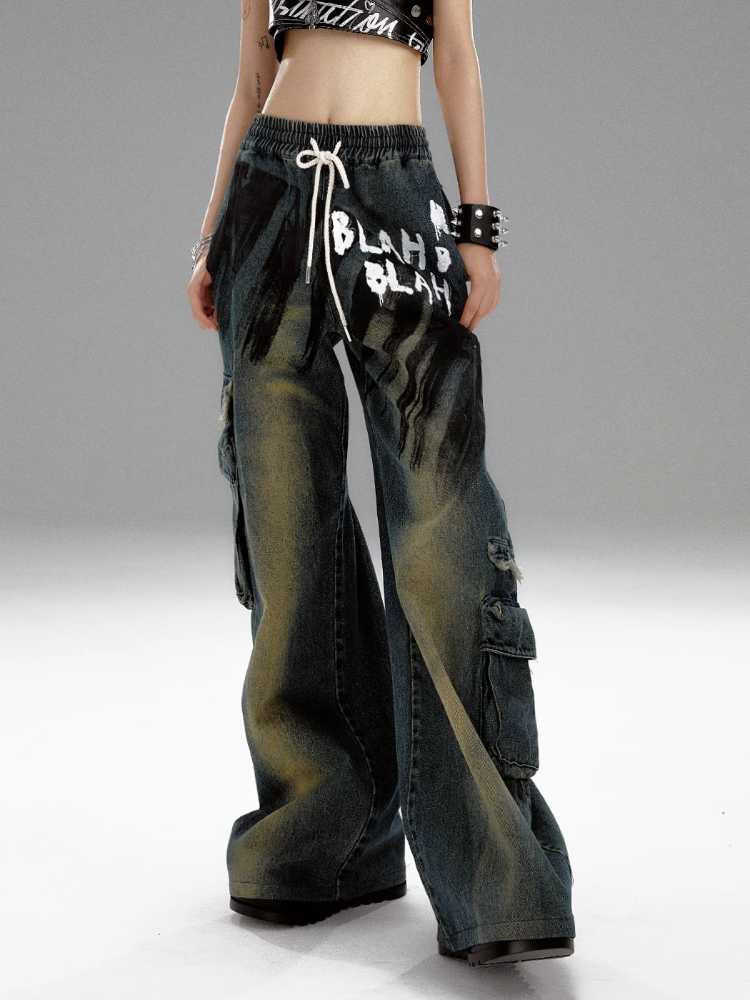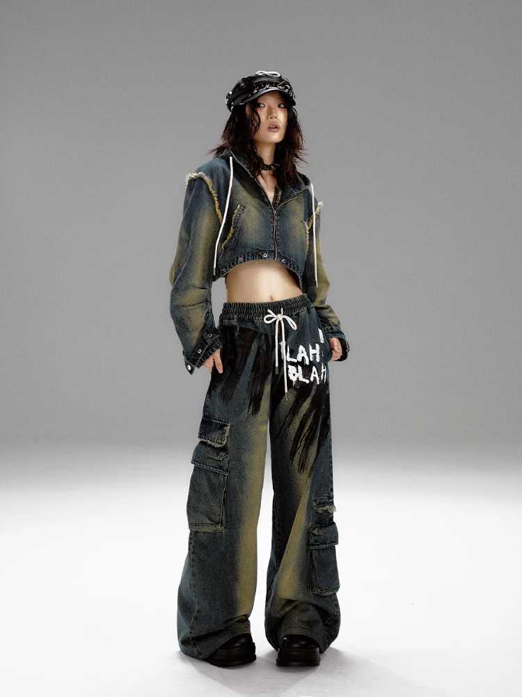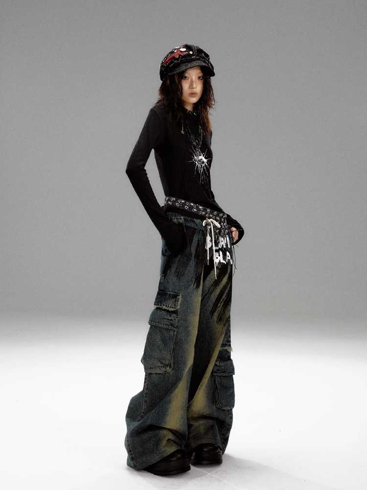Wide leg distressed jeans【s0000010298】