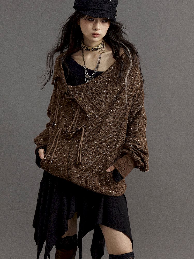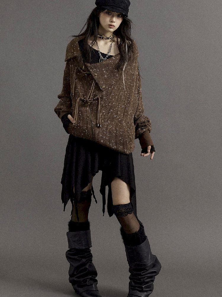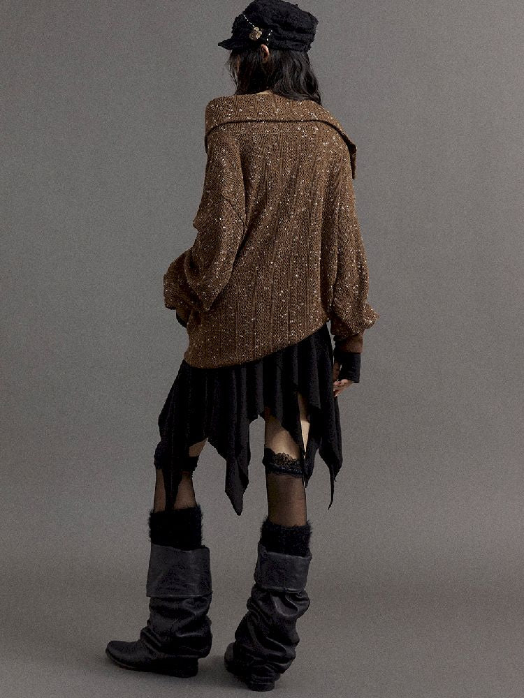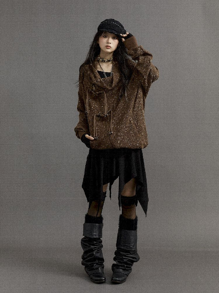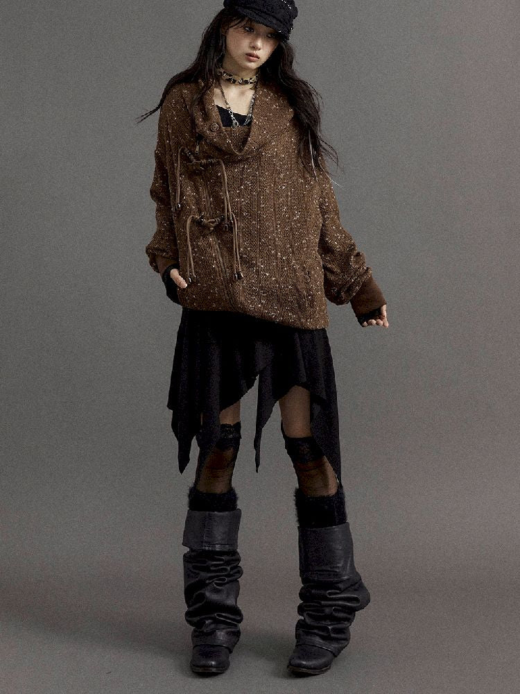 Stacked Neck Loose Knit Sweatshirt【s0000010325】