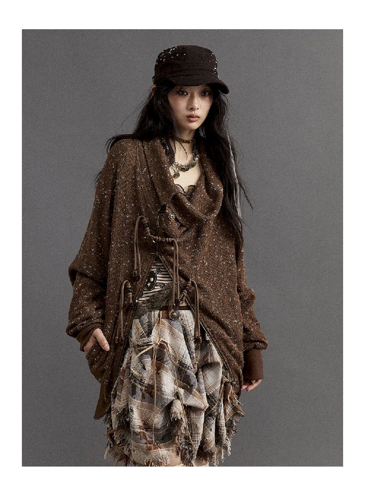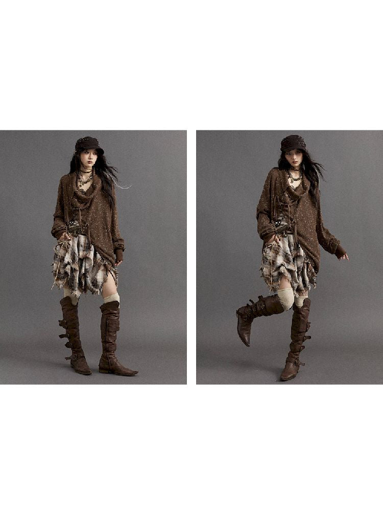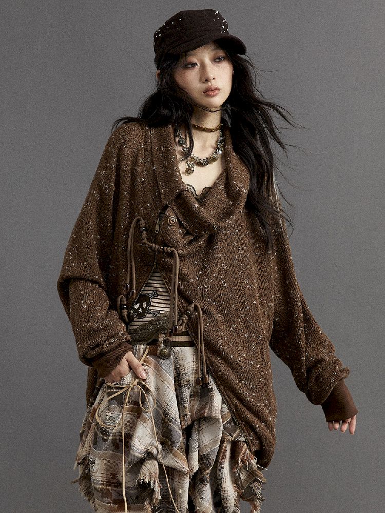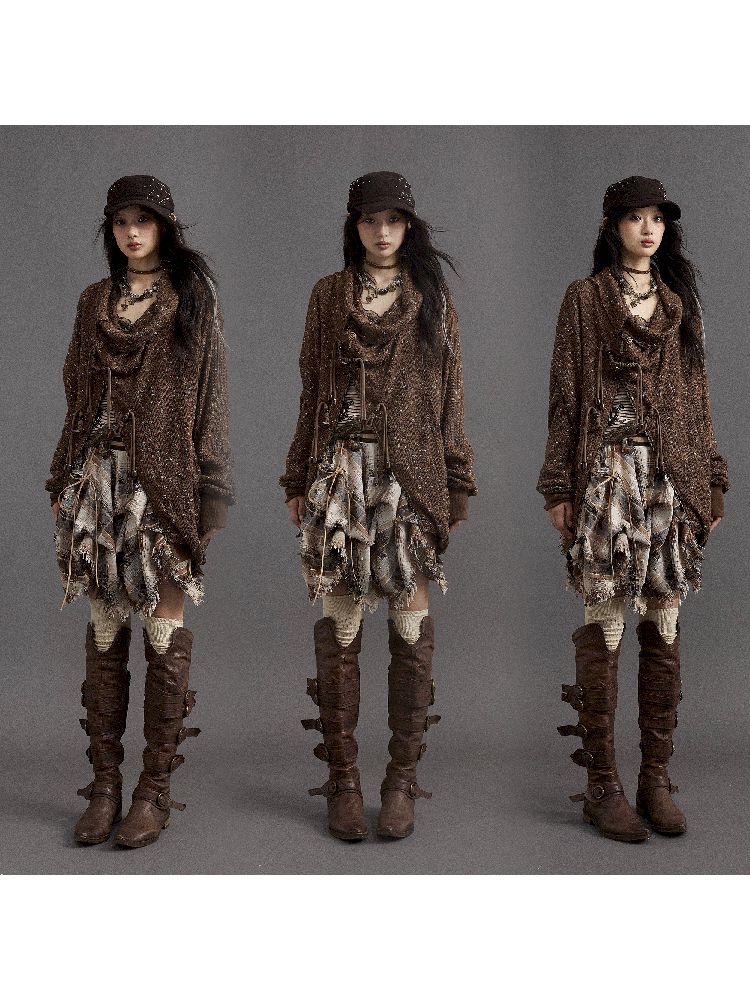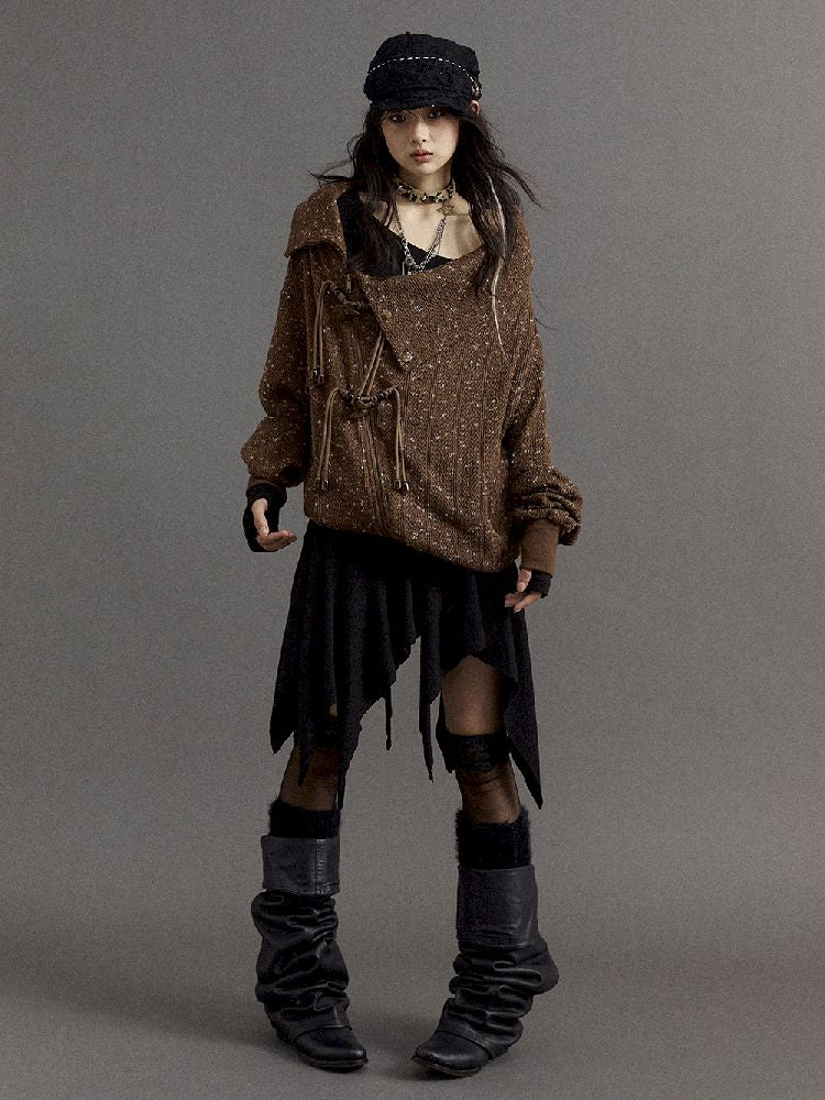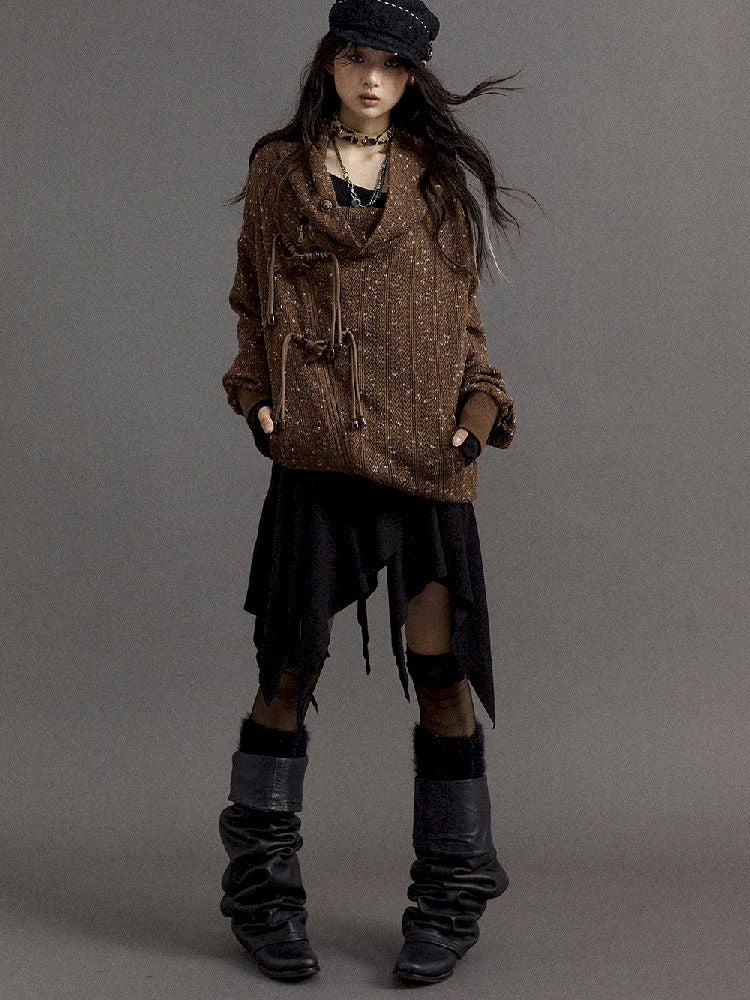 Stacked Neck Loose Knit Sweatshirt【s0000010325】