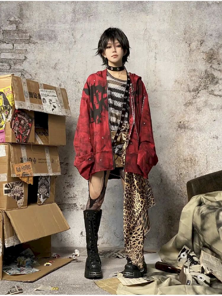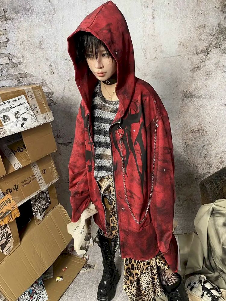 Red Punk Hoodie【s0000010336】