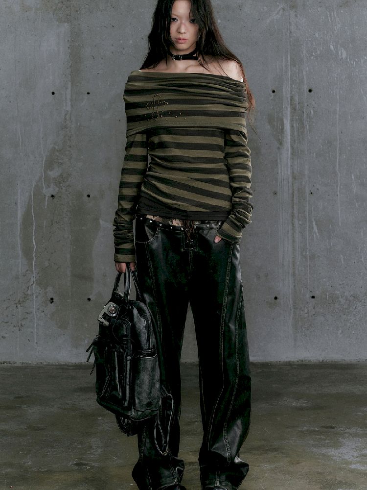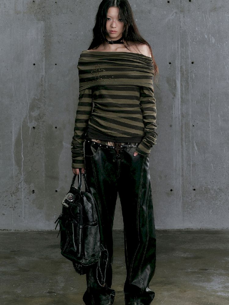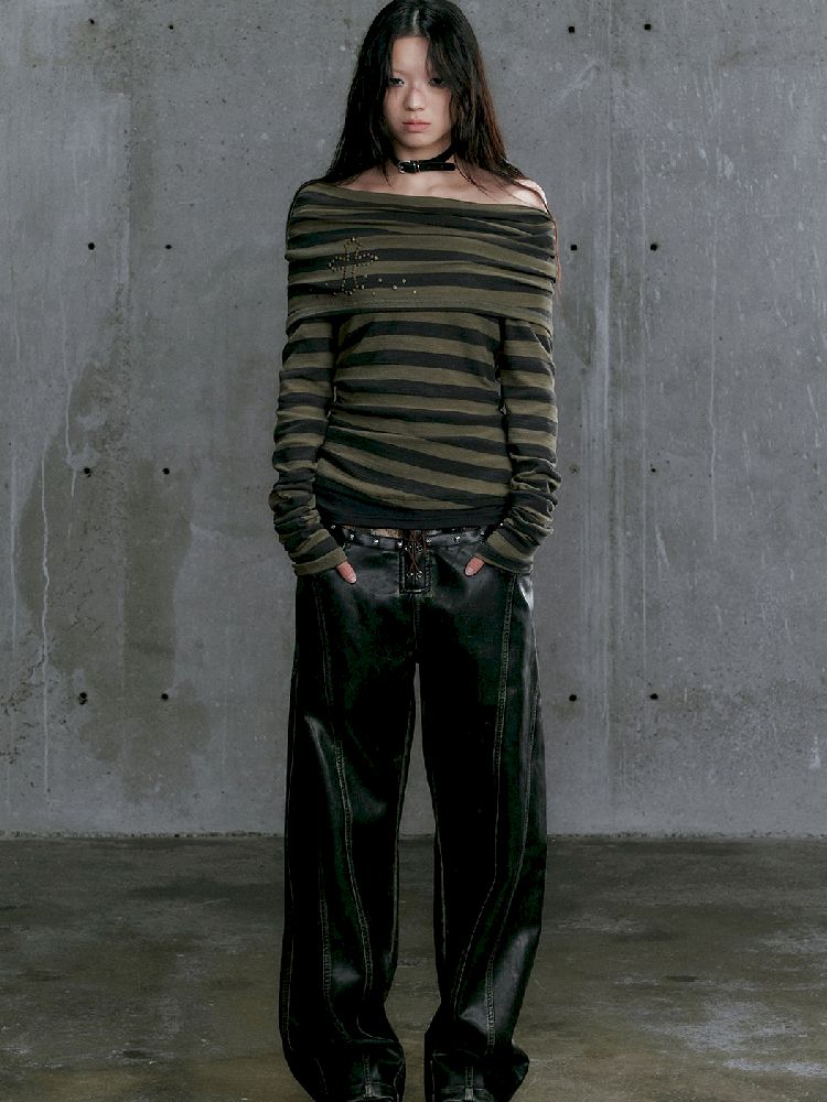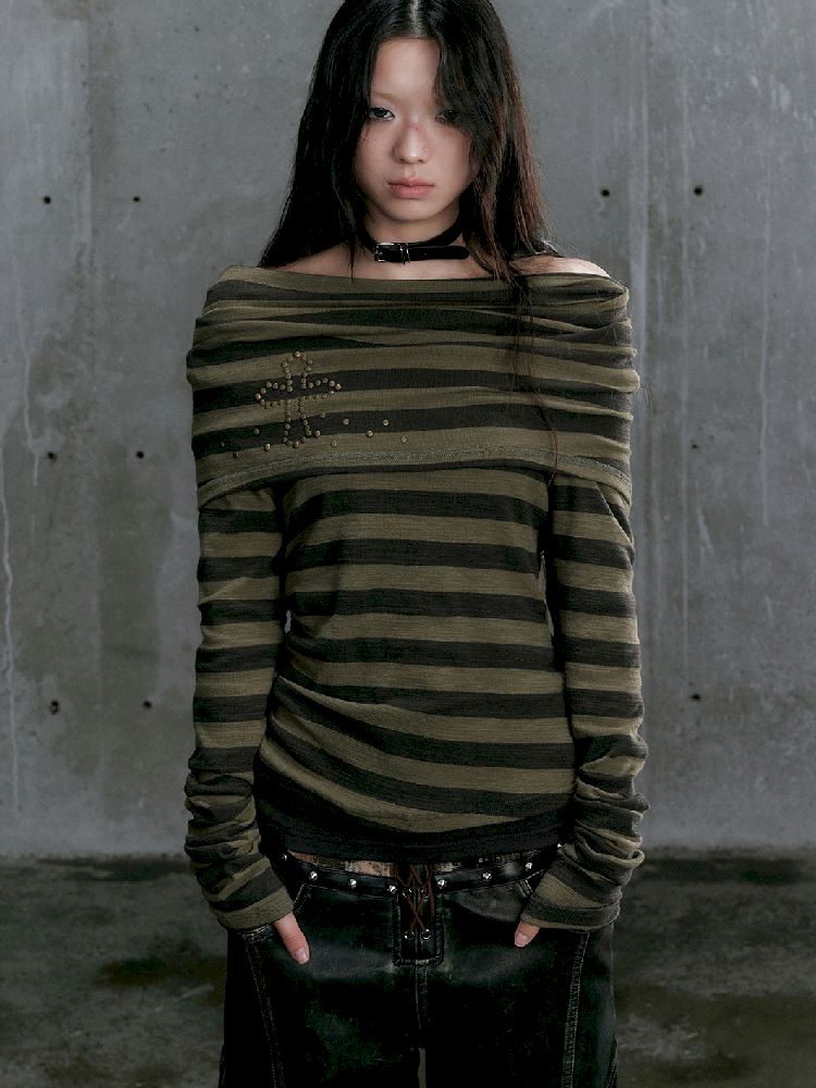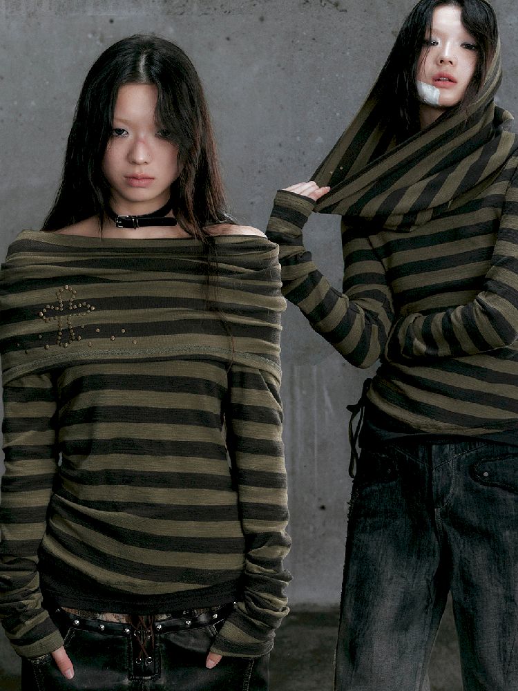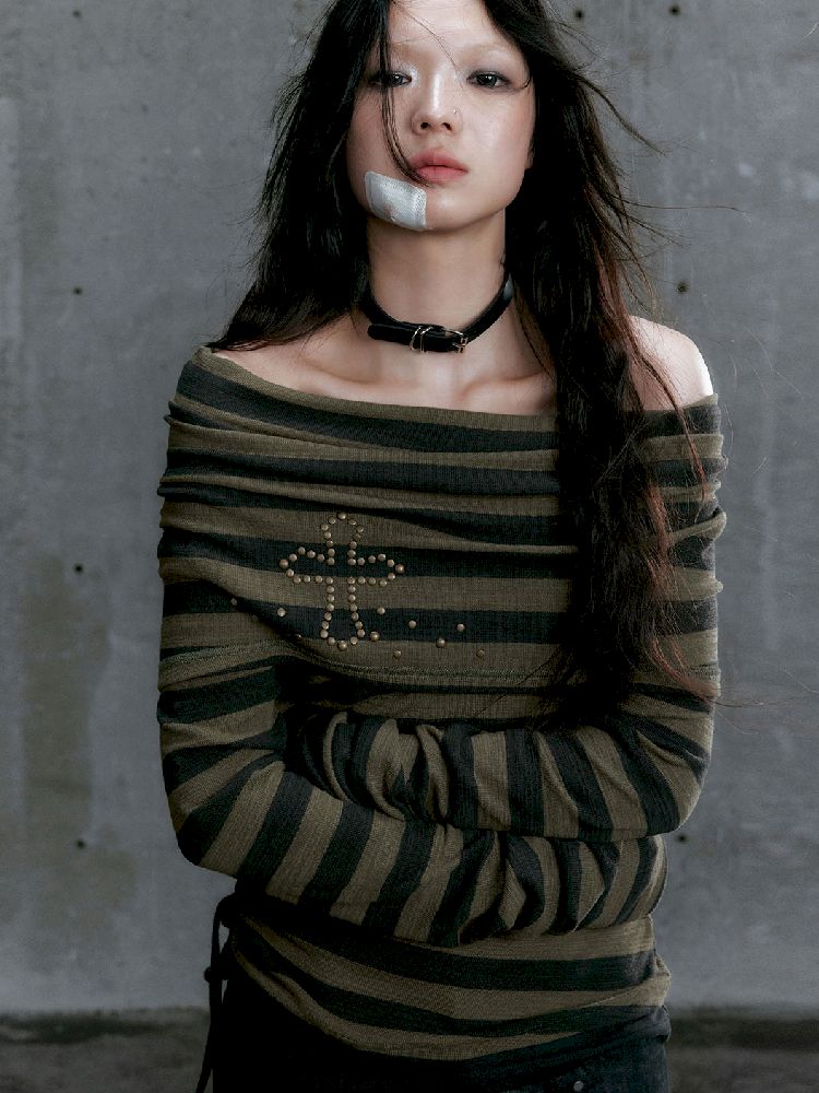 Stripe Knit Long Sleeve T-Shirt【s0000010395】