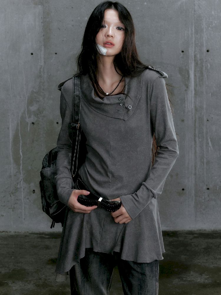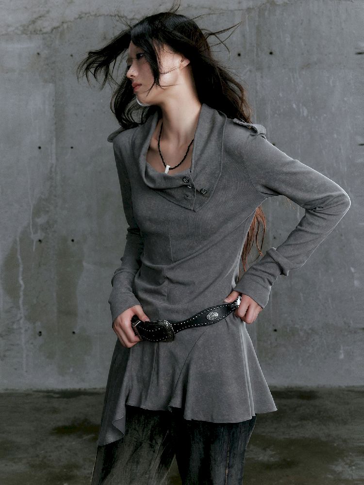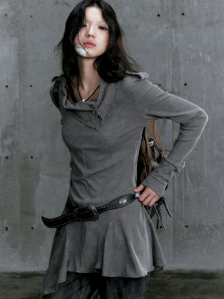 Stacked Neck Slim Long Sleeve Top【s0000010396】