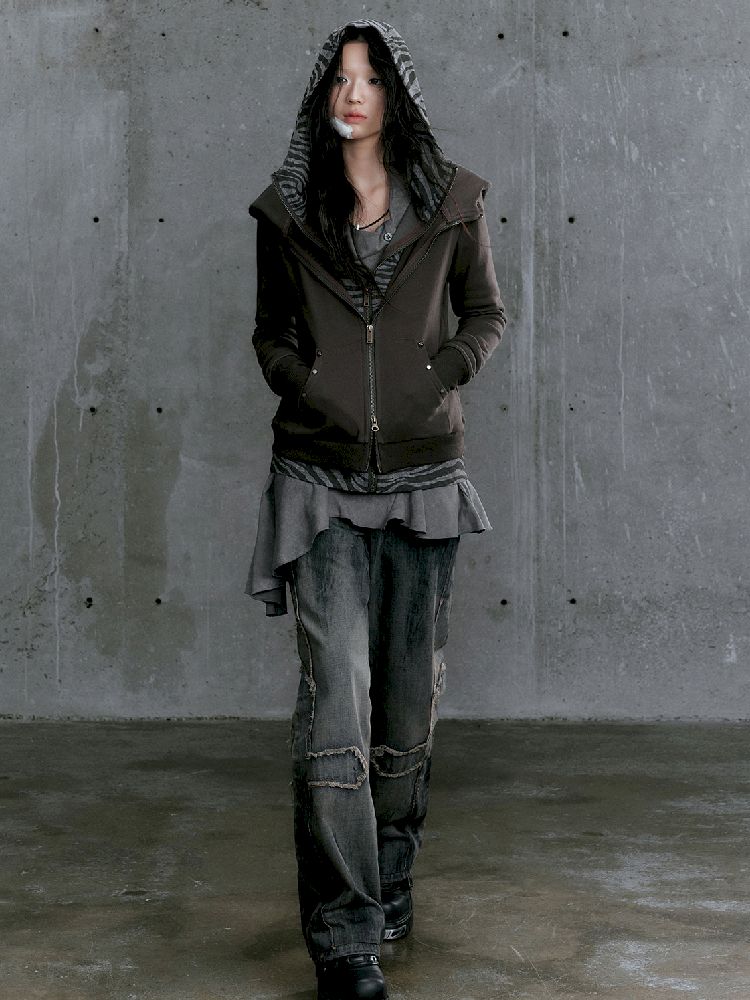 Striped Knit Sweatshirt Jacket【s0000010397】