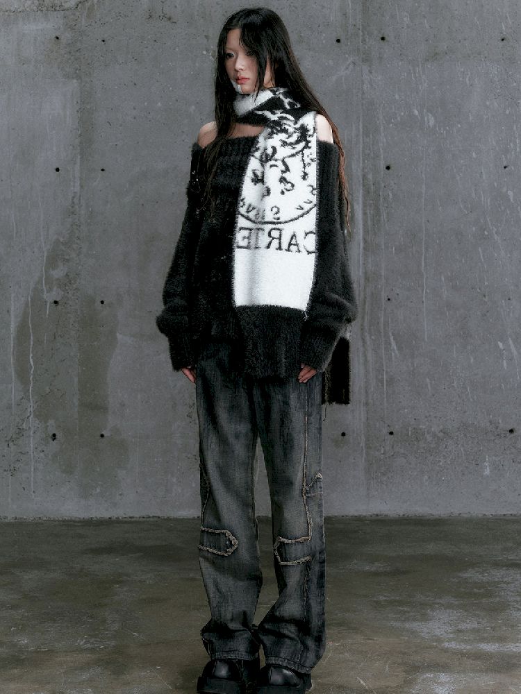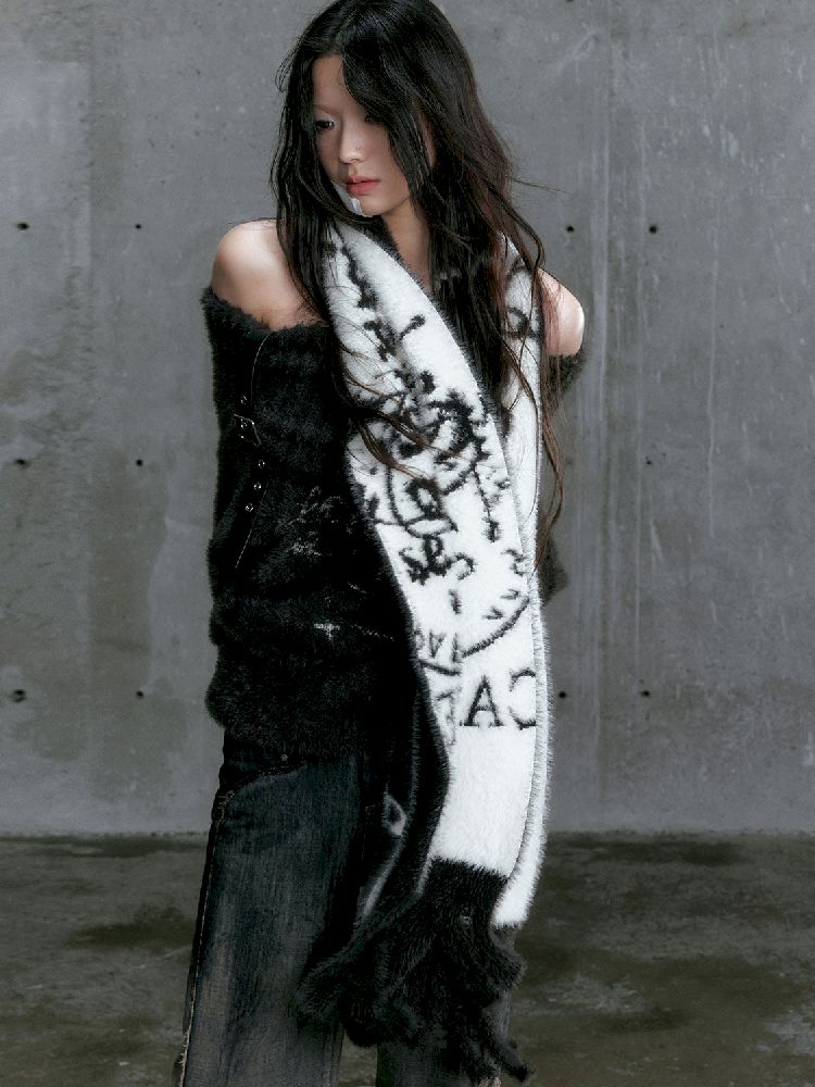Jacquard tassel fringe imitation mink scarf【s0000010398】