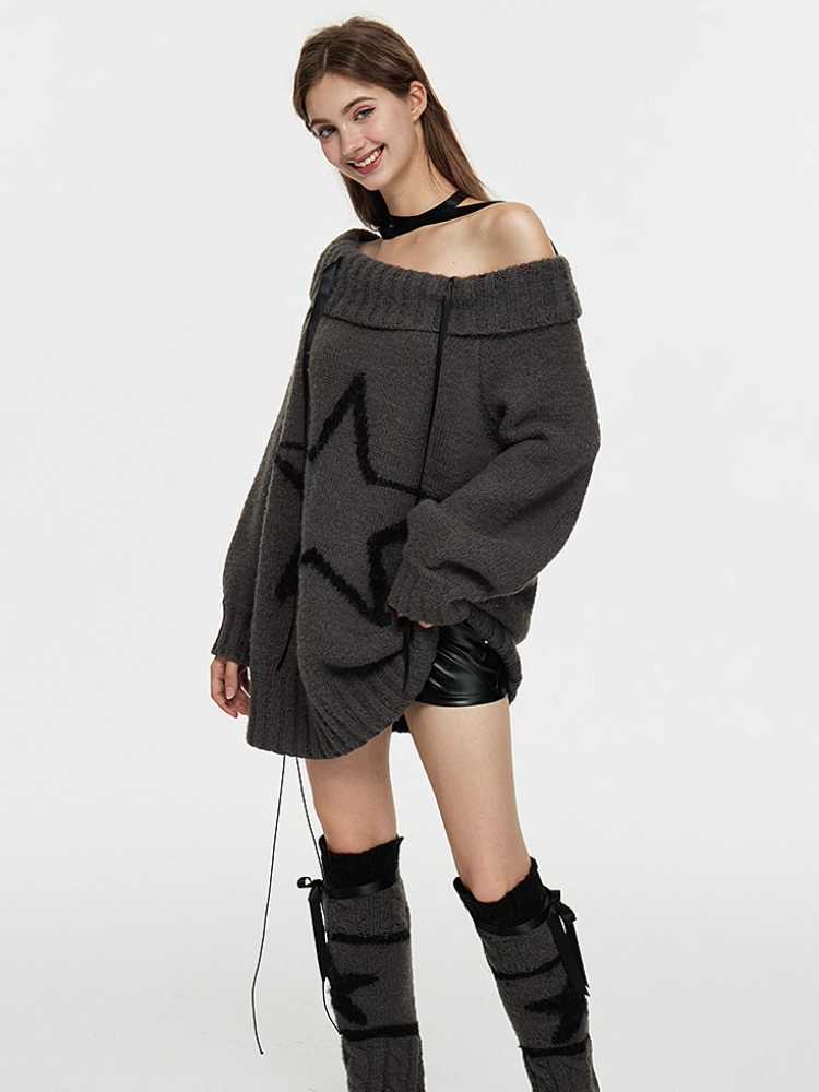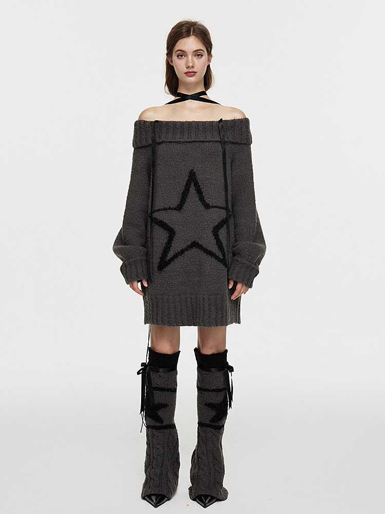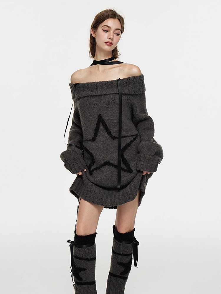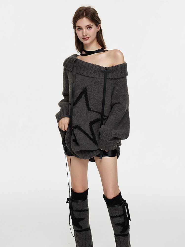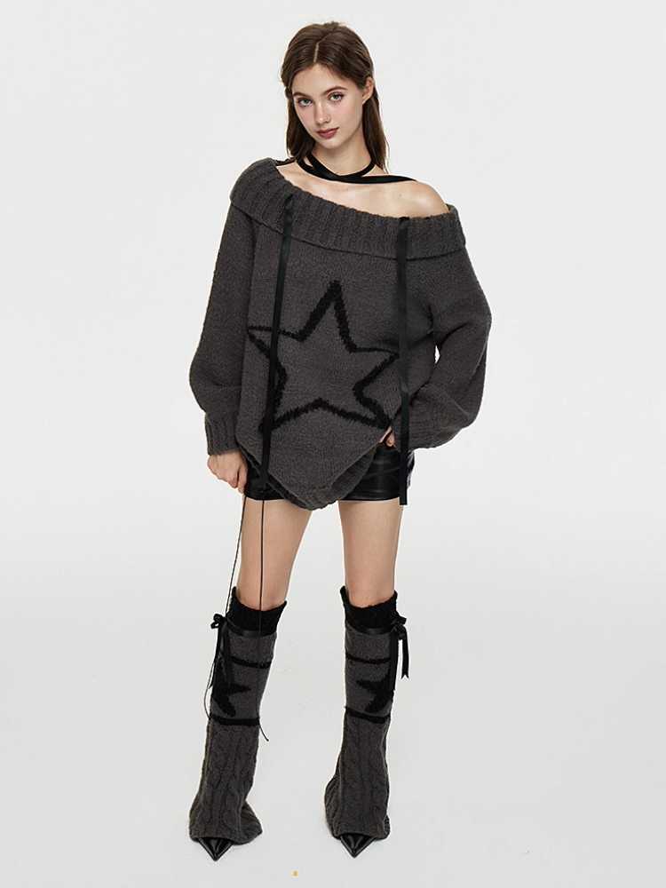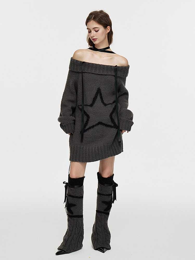 One-shoulder wool sweater and leg warmers【s0000010434】