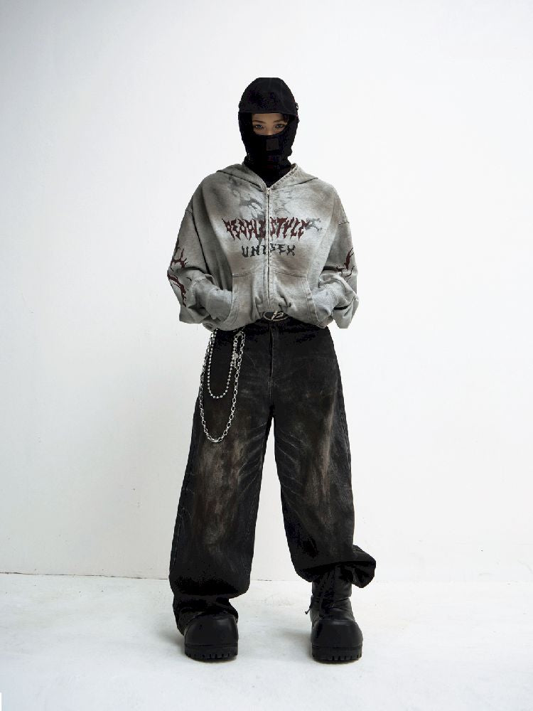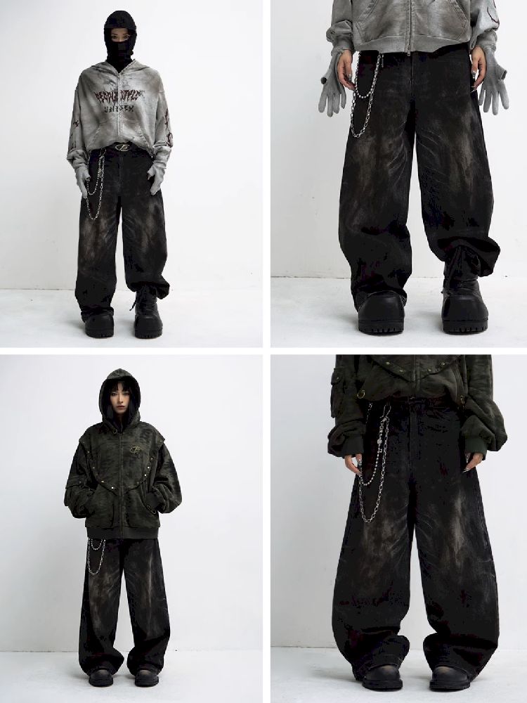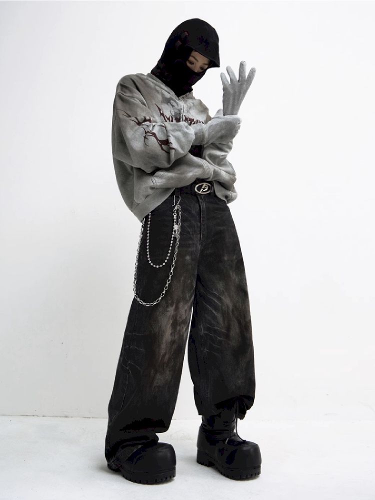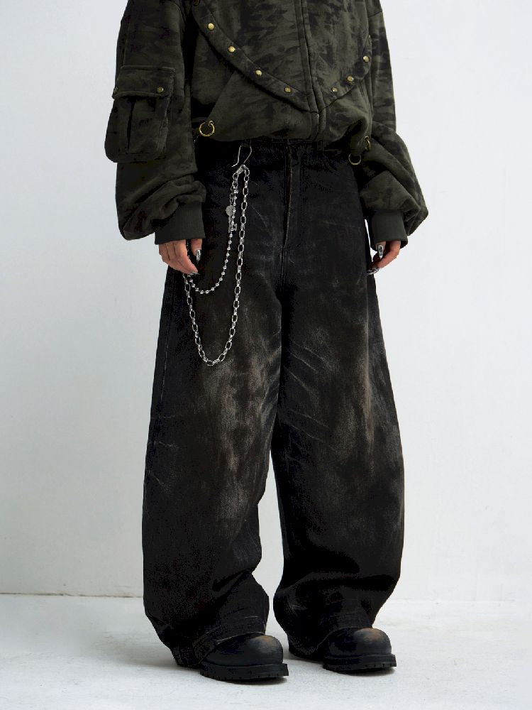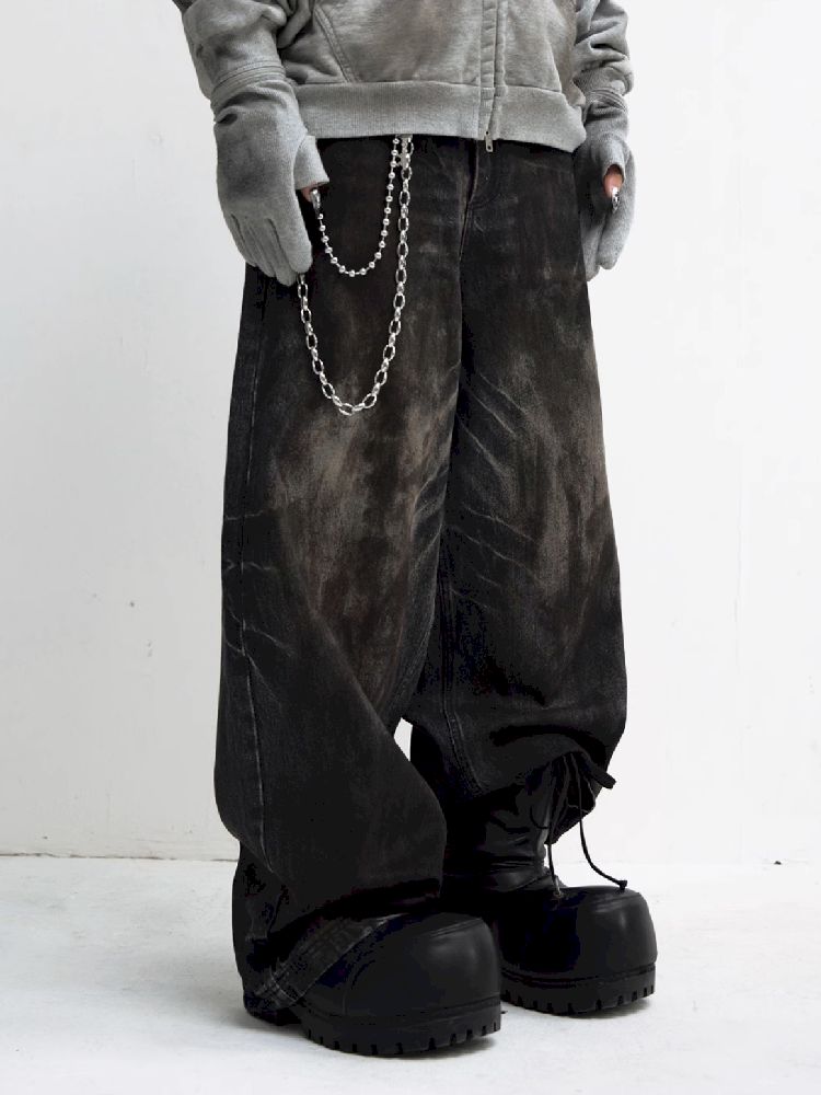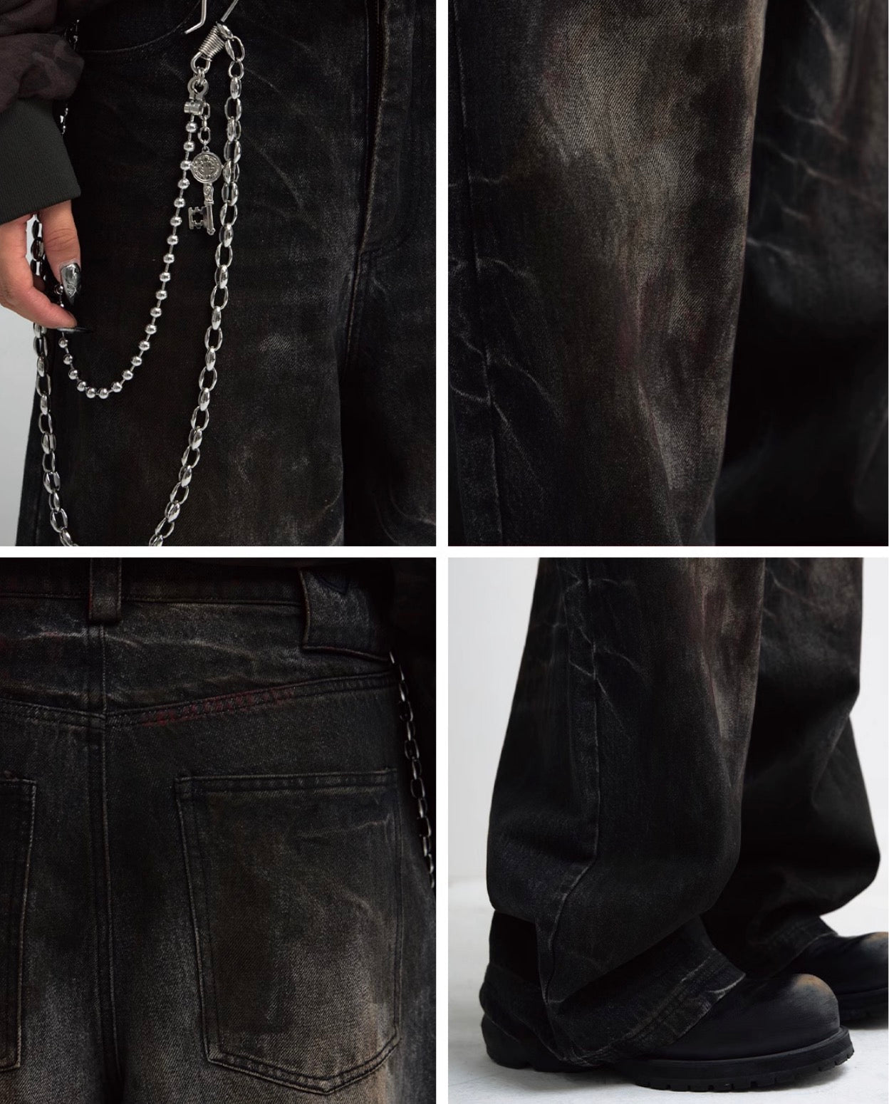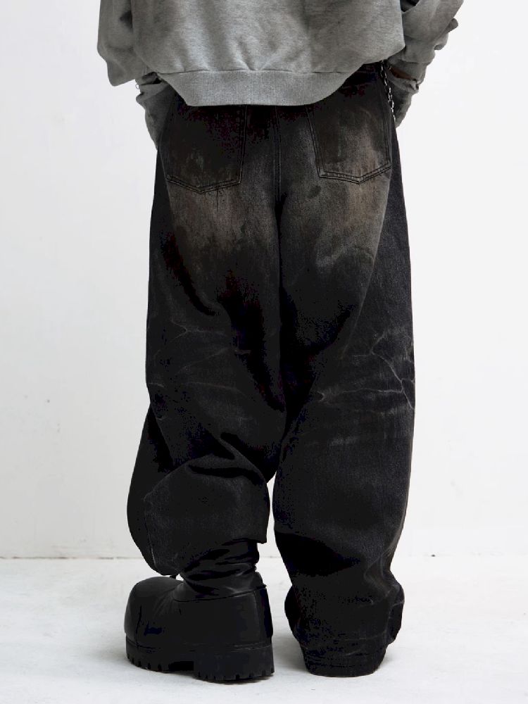 Cat Whiskers washed wide-leg jeans【s0000010443】
