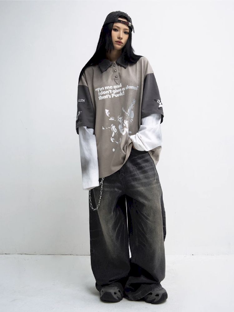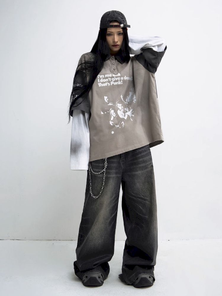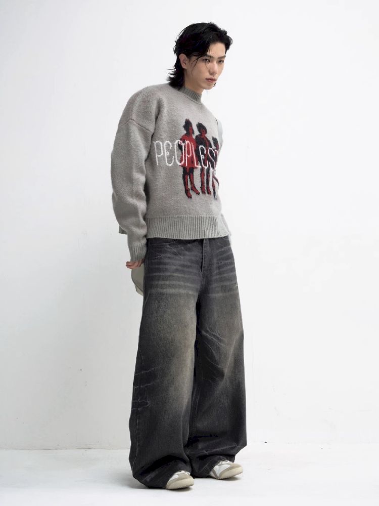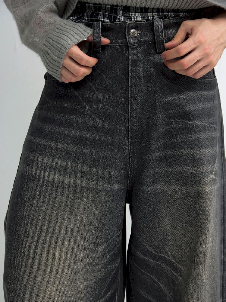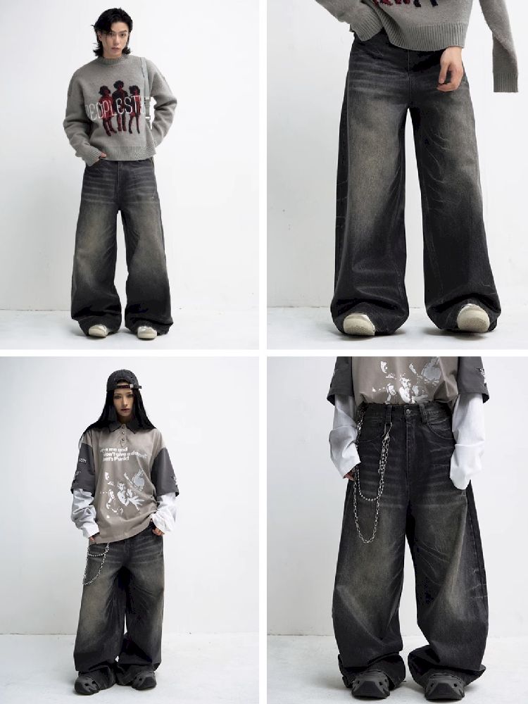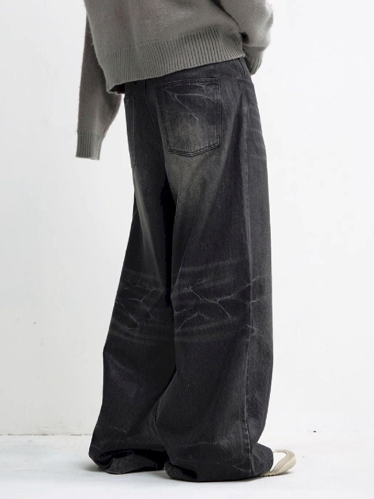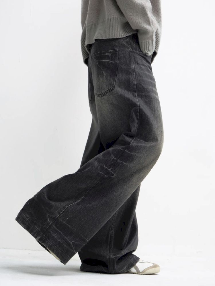 Washed Black Wide Leg Jeans【s0000010444】
