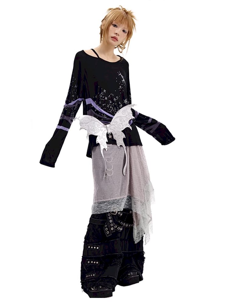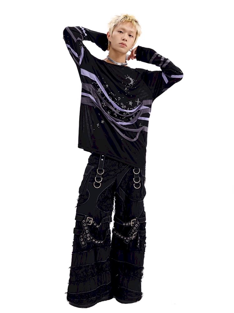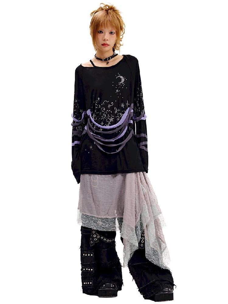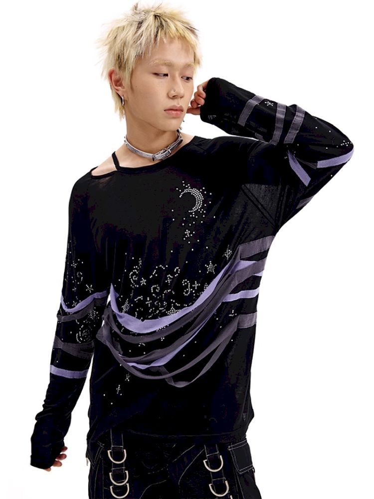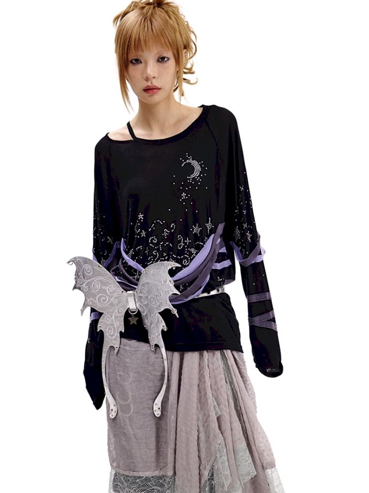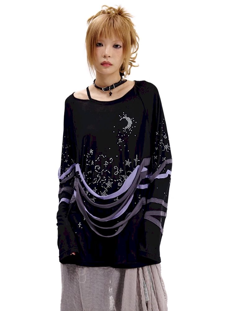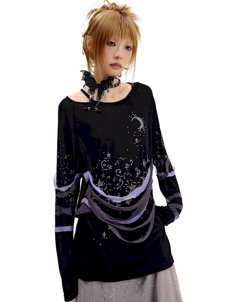 Starry Night Rhinestone Long Sleeve T-Shirt【s0000010505】