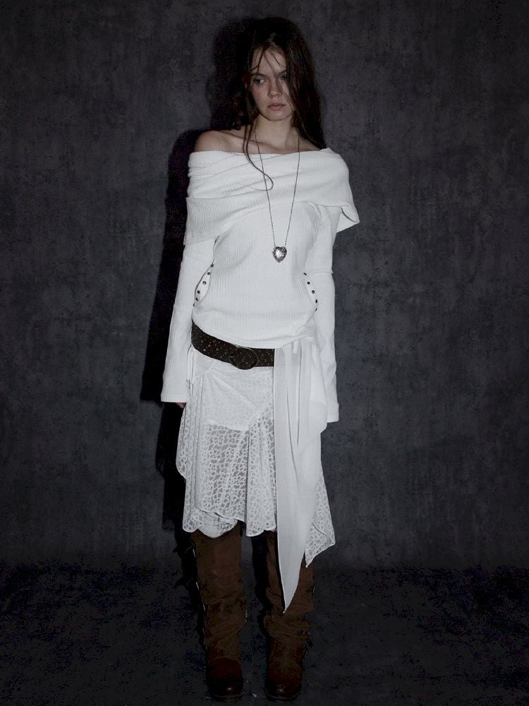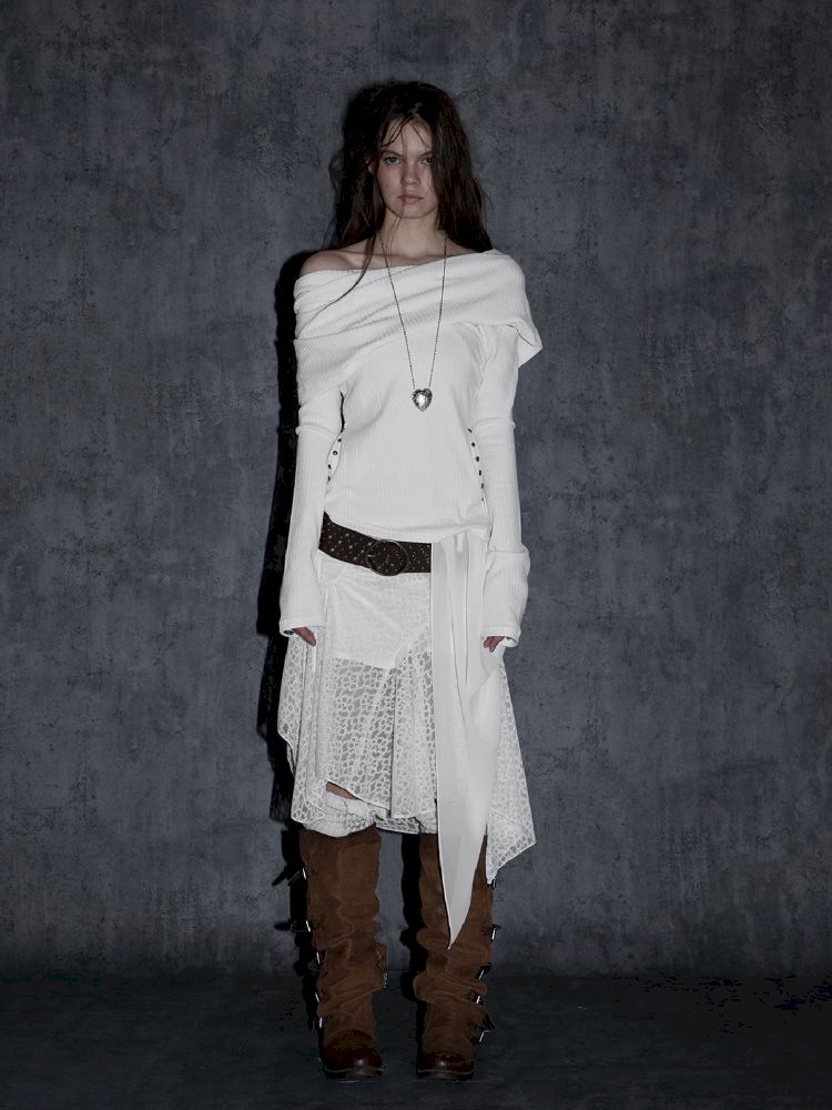 Swing Neck Knit Long Sleeve Top【s0000010530】