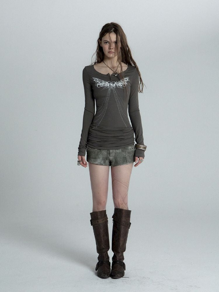 Hand Printed Bottom Top T-Shirt【s0000010533】